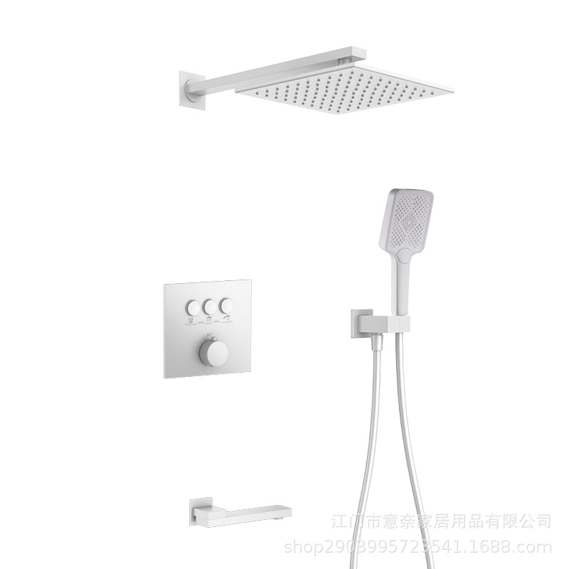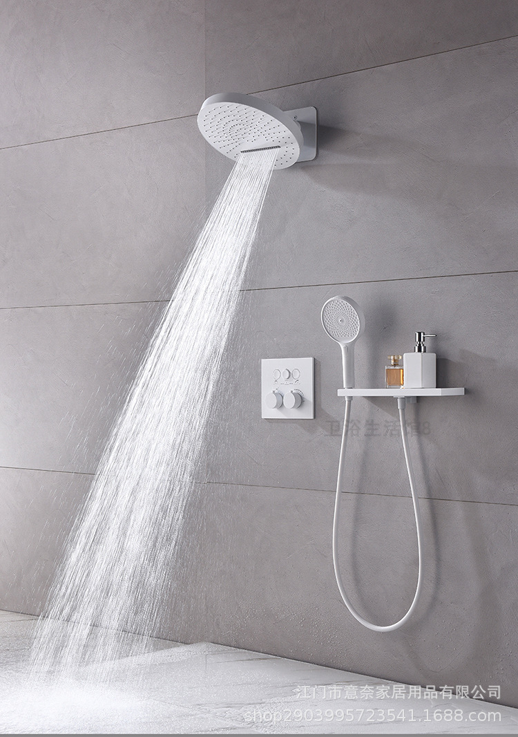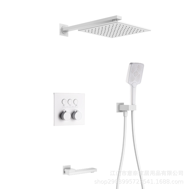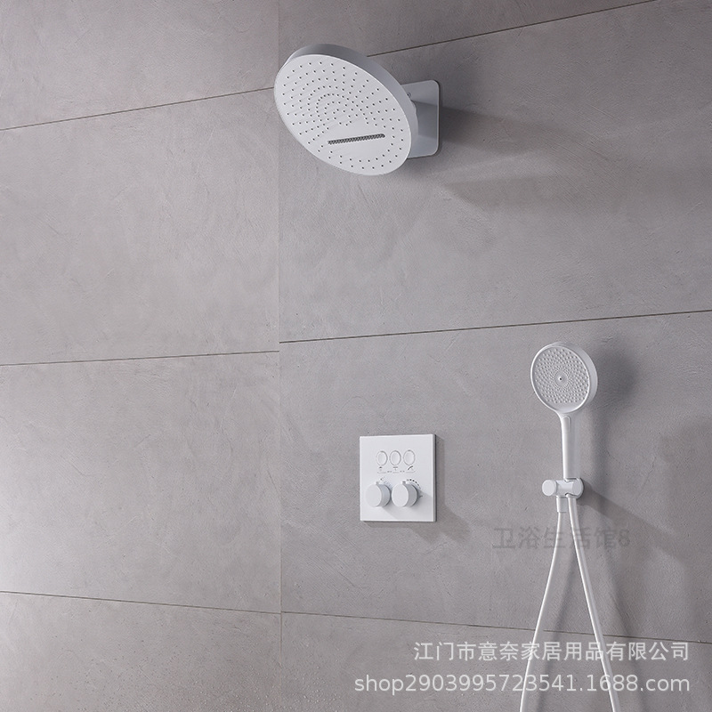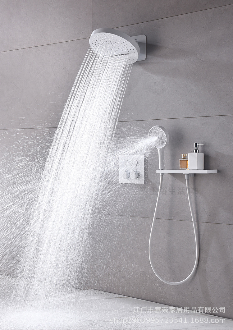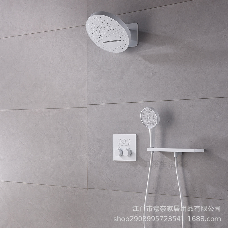 하이 엔드 흰 벽 형 일정한 온도 샤워 모든 구리 내장 숨겨진 내장 내장 비 폭포 샤워 세트