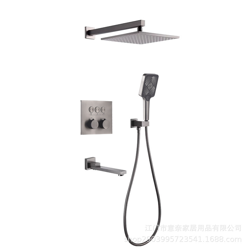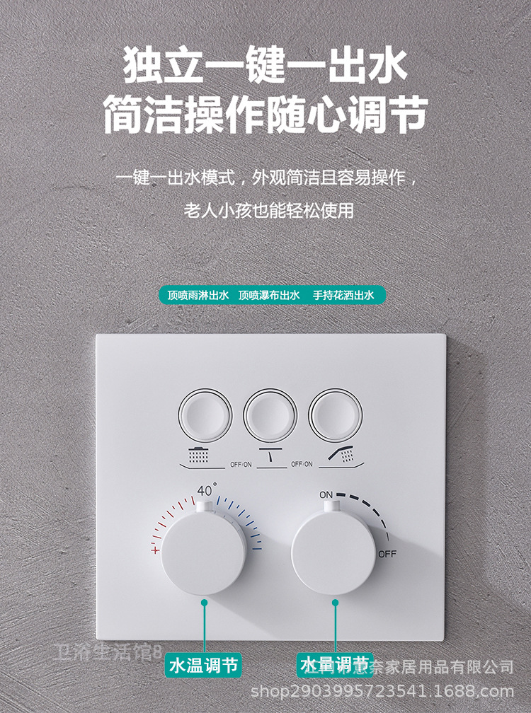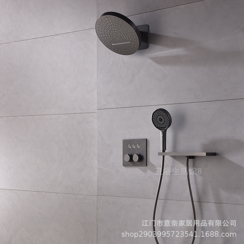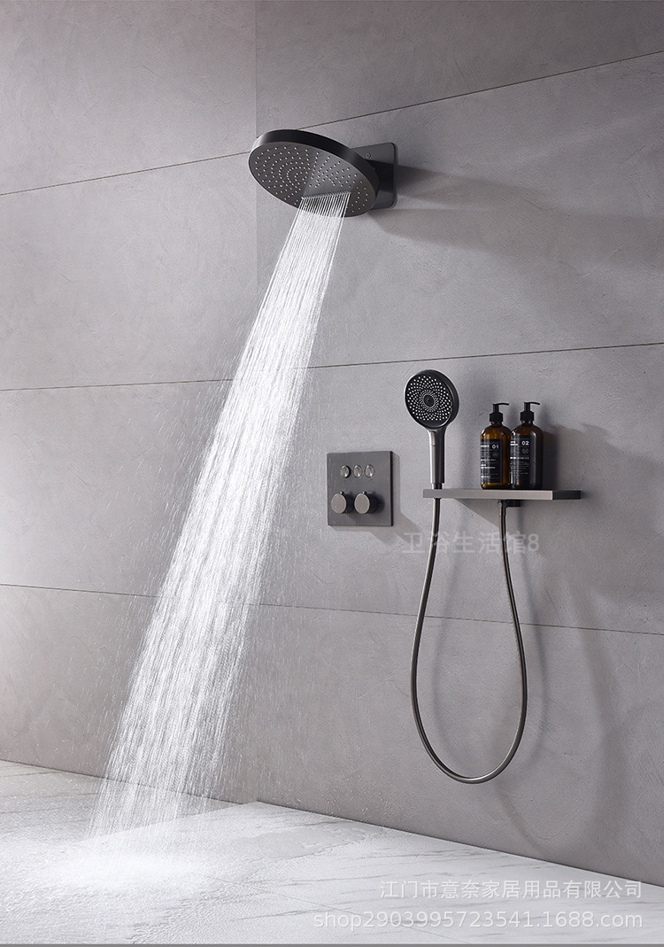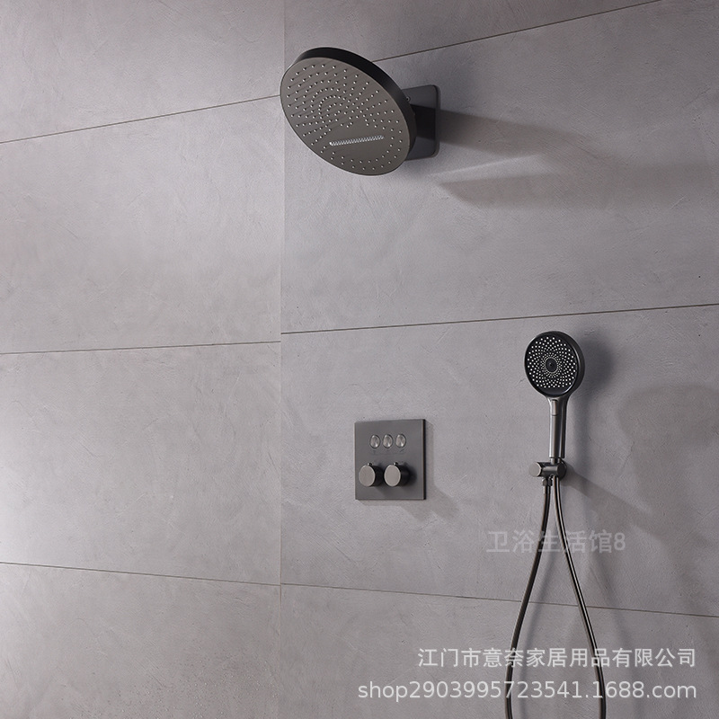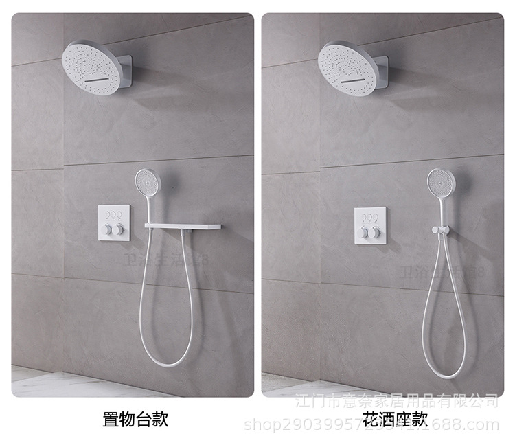 하이 엔드 흰 벽 형 일정한 온도 샤워 모든 구리 내장 숨겨진 내장 내장 비 폭포 샤워 세트