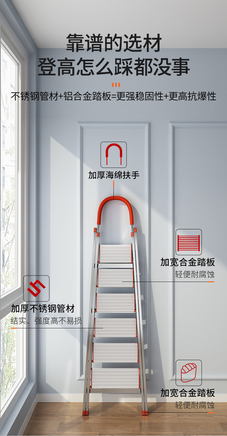 • [스테인리스] 두꺼워지고 넓어진 16cm 알루미늄 합금 페달 6단 사다리