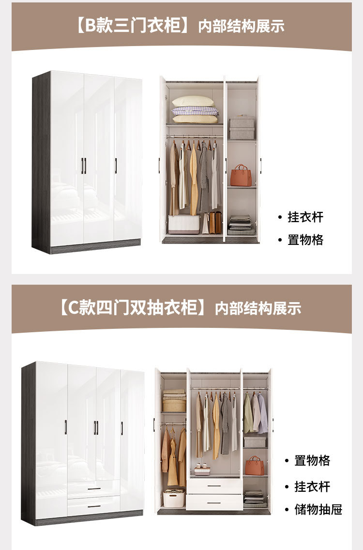 국경 간 도매 임대 주택용 옷 수납장 흰색 심플 옷장 가정용 침실 양문형 옷장스토어 가기