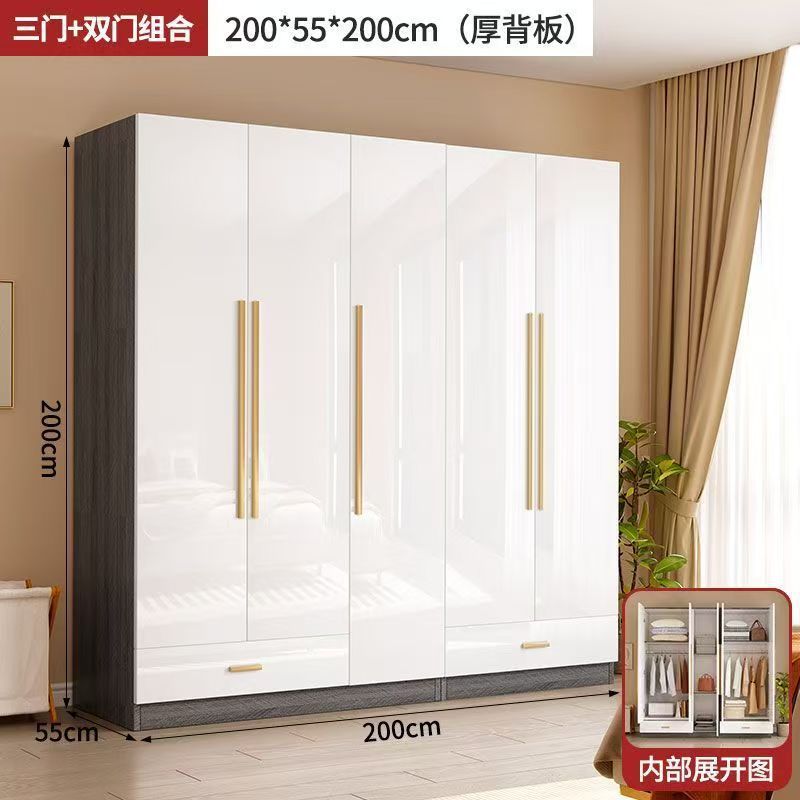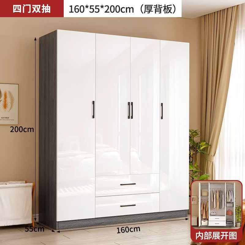 국경 간 도매 임대 주택용 옷 수납장 흰색 심플 옷장 가정용 침실 양문형 옷장