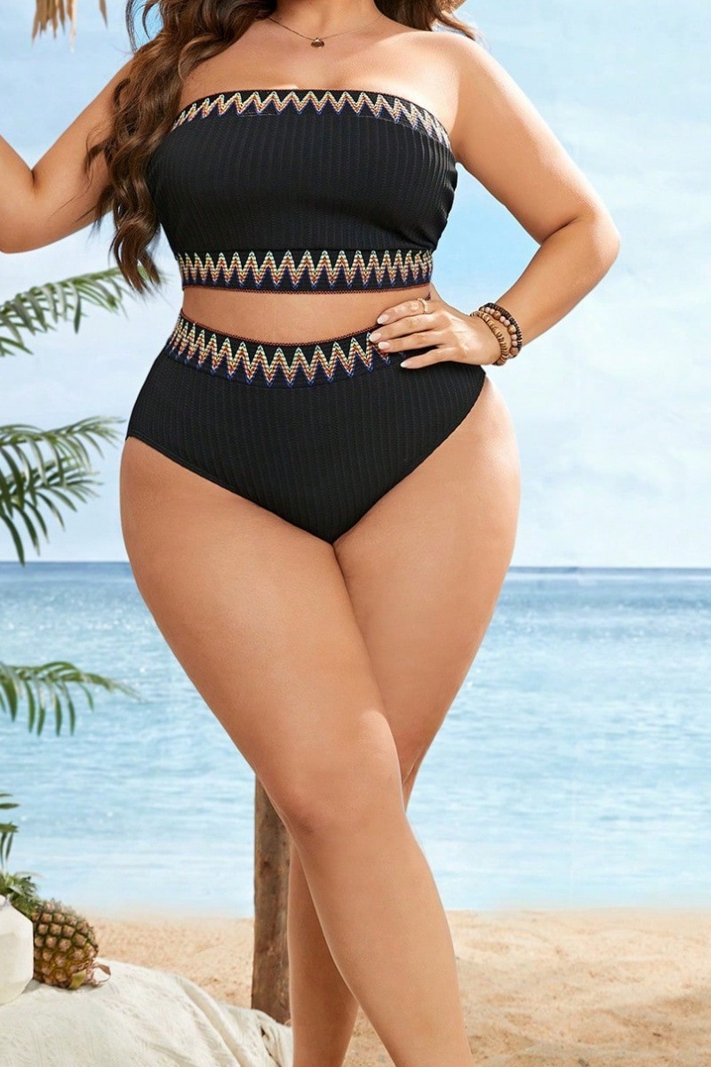 유럽과 미국의 뜨거운 판매 뜨거운 비키니 튜브 최고 유행 섹시한 리본 스티칭 높은 허리 삼각형 수영복 플러스 사이즈 수영복 여성