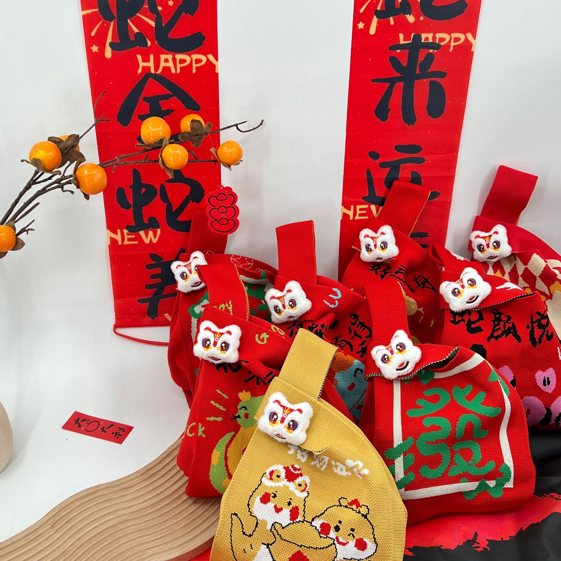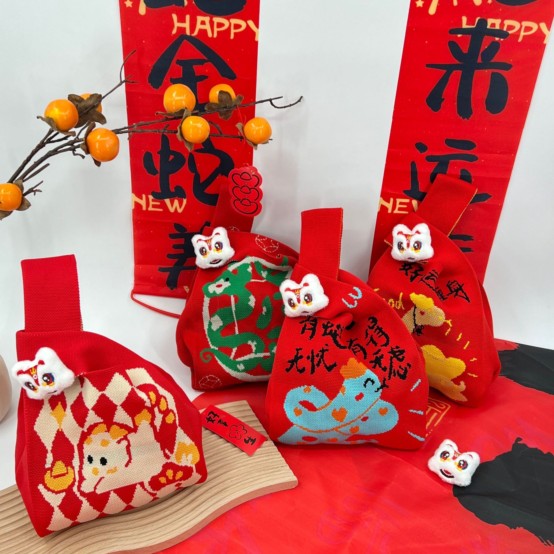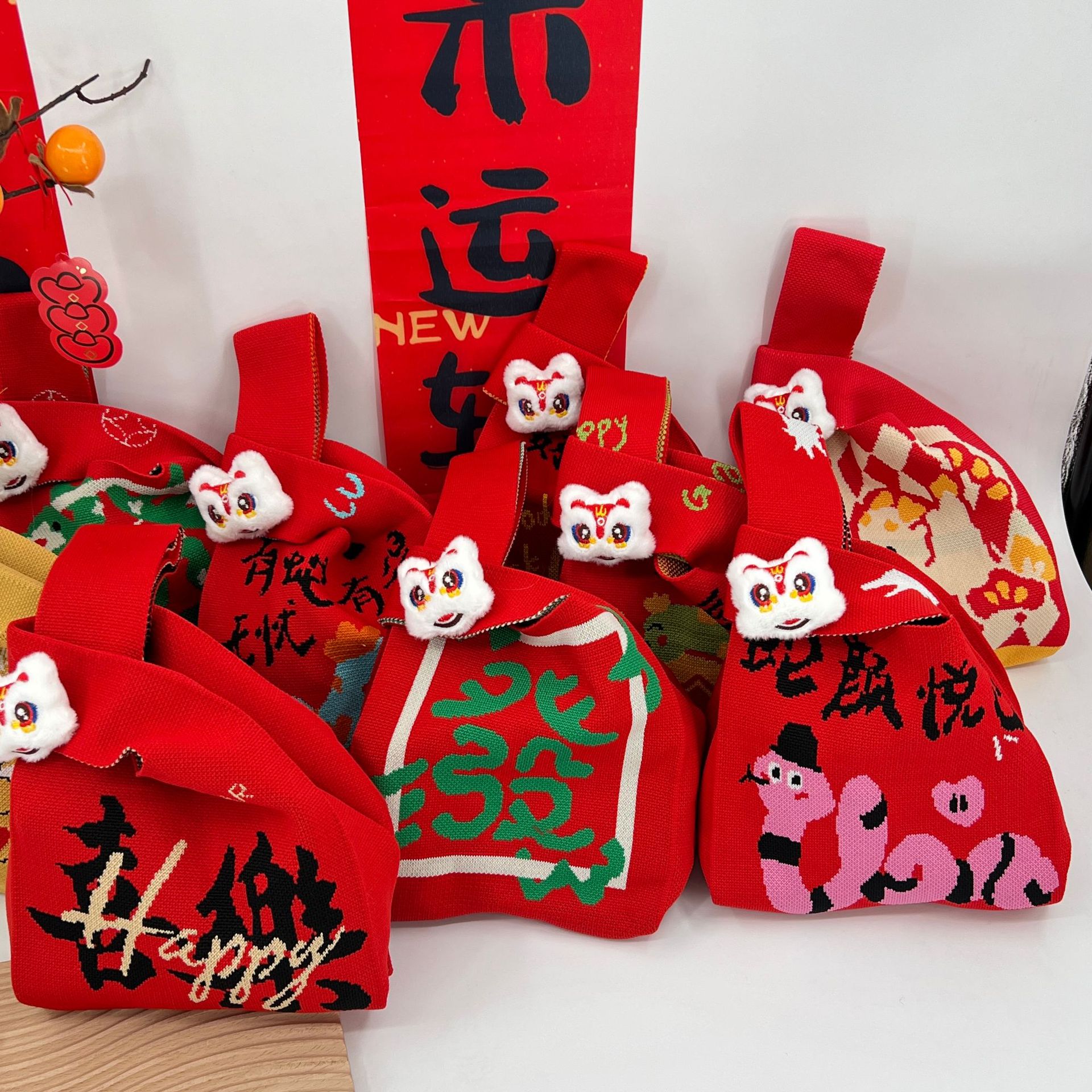 2025 년 뱀 새해 선물 가방 창조적 인 휴대용 귀여운 니트 가방 작은 선물 가방 회사 로고 동반 손