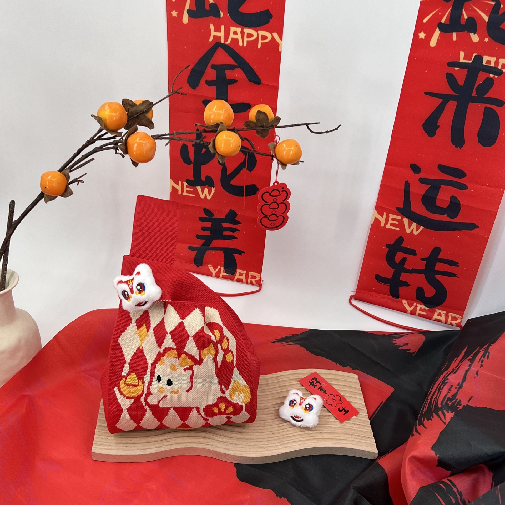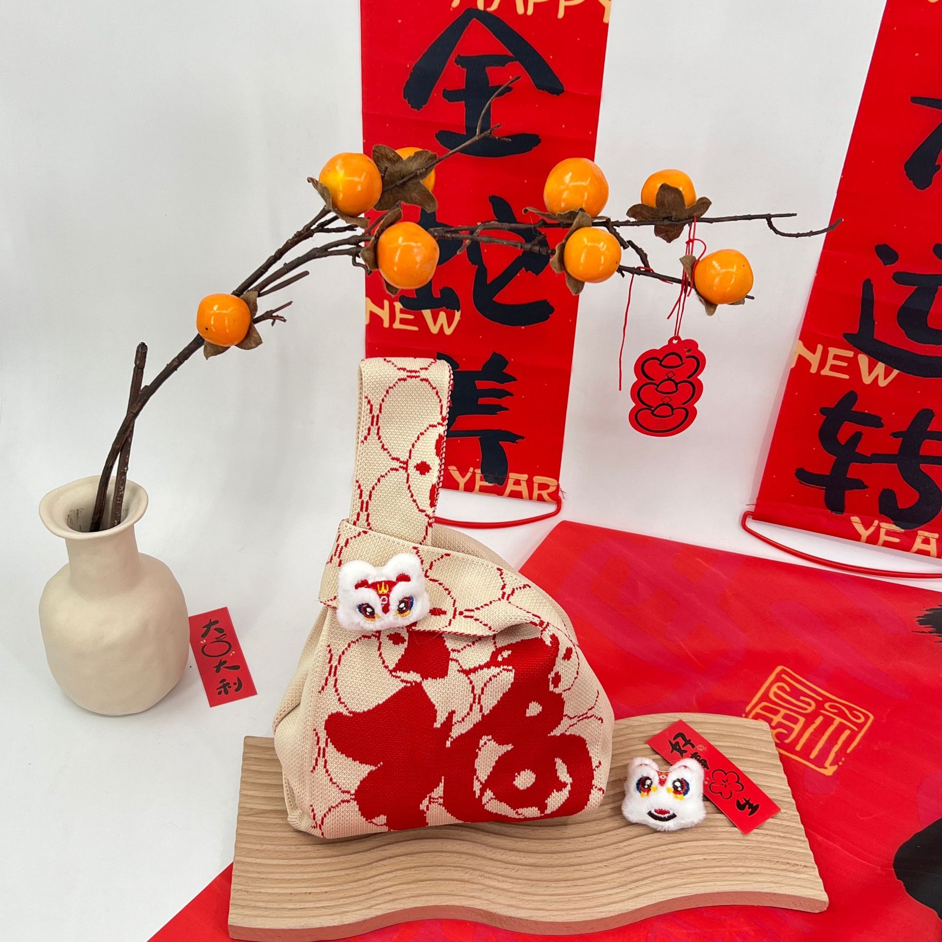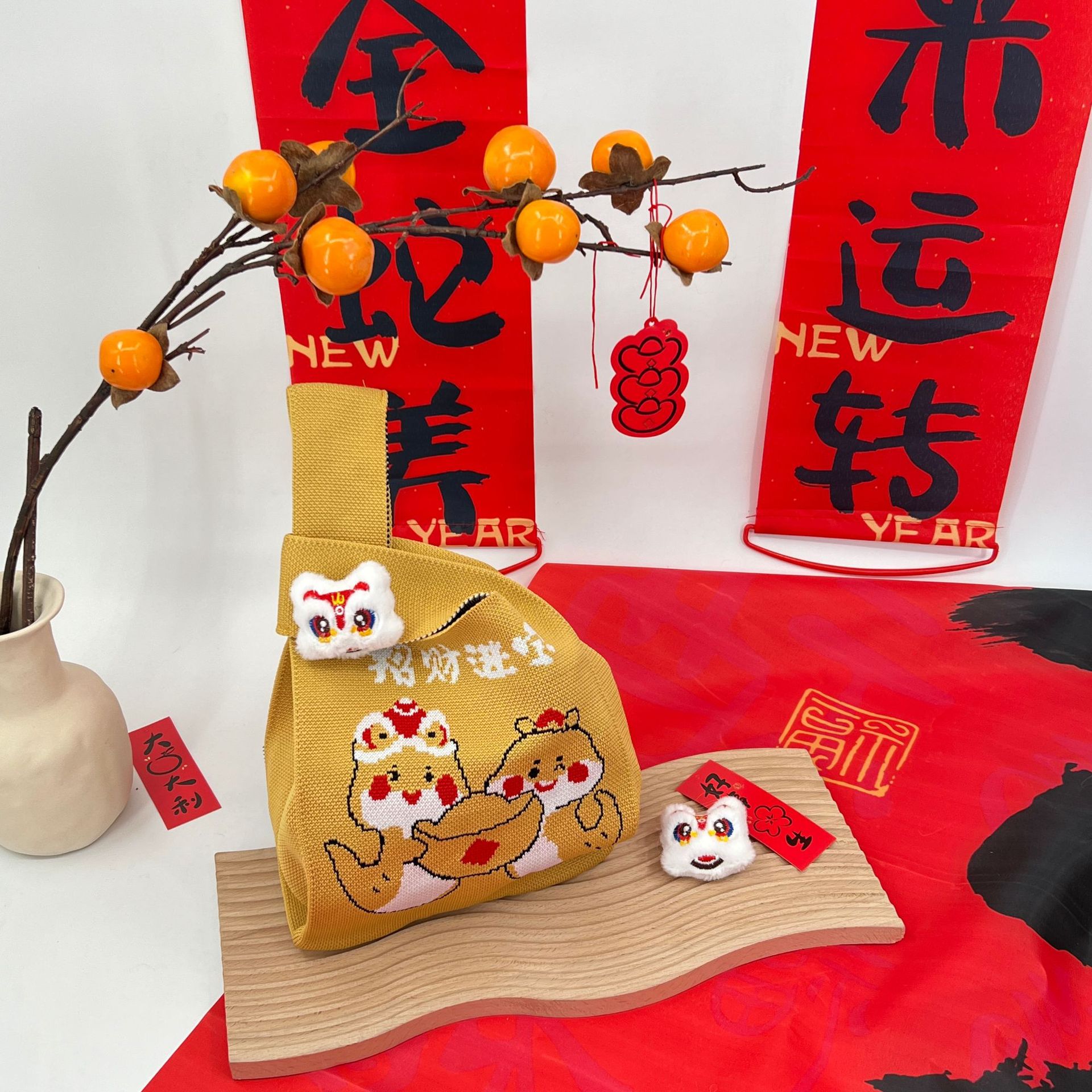 2025 년 뱀 새해 선물 가방 창조적 인 휴대용 귀여운 니트 가방 작은 선물 가방 회사 로고 동반 손