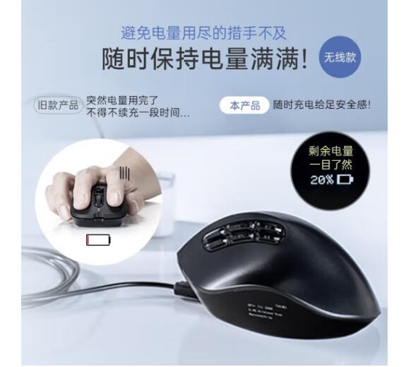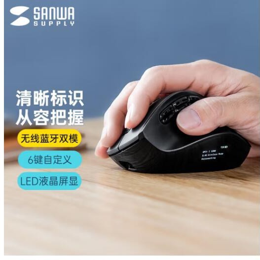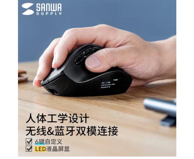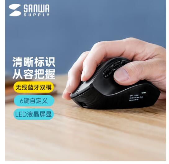 SANWA SUPPLY 山业人体工学2.4GHz无线蓝牙双模鼠标 6侧键自定义 轻音 充电式 GMAWBT171 黑色无线蓝牙双模