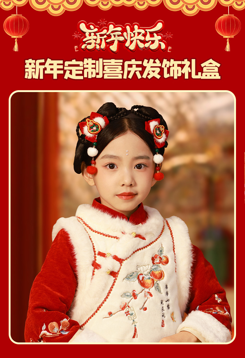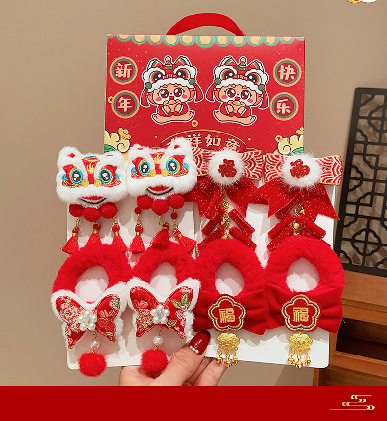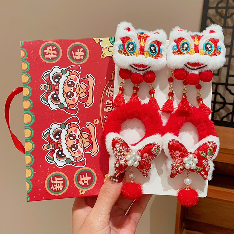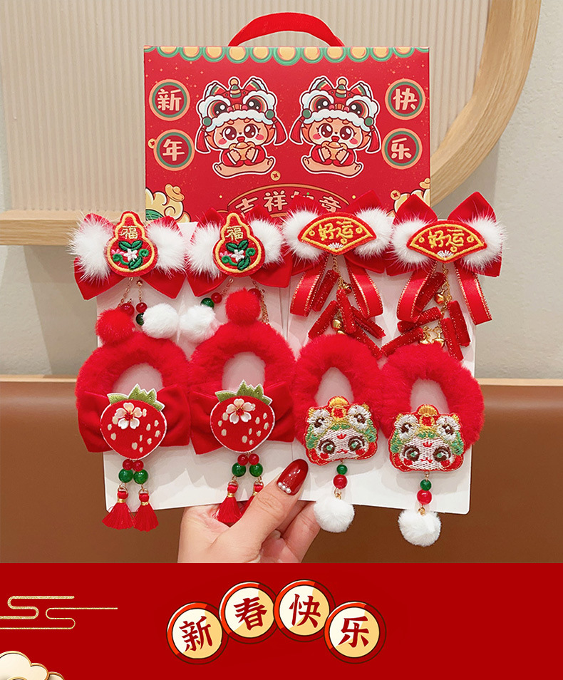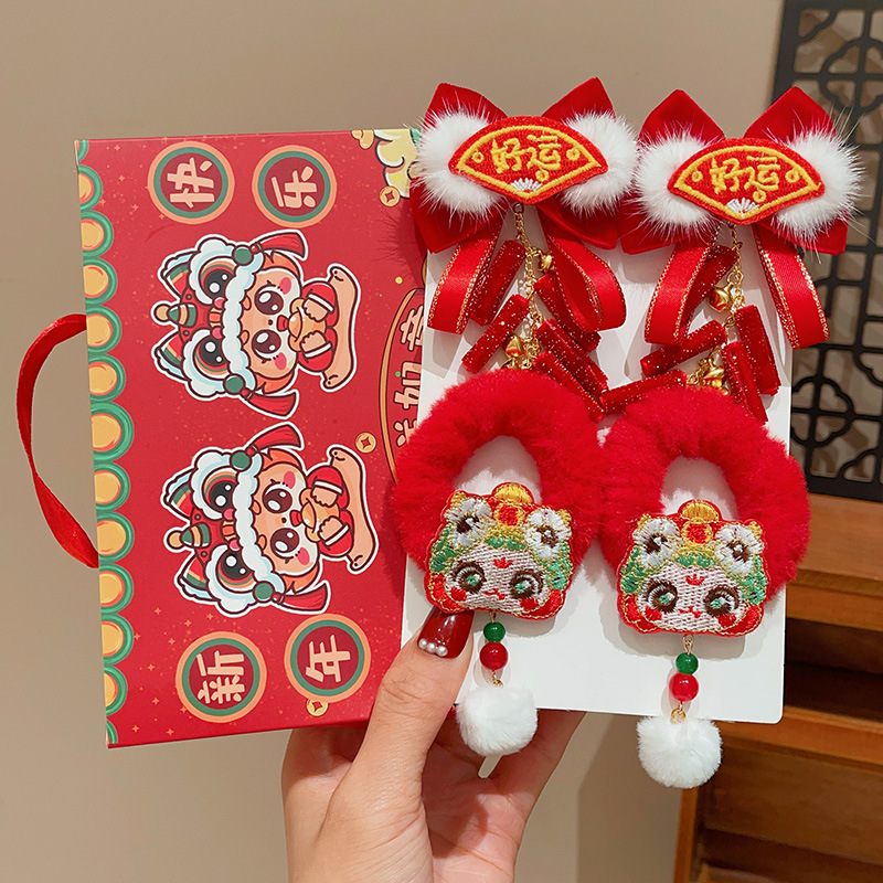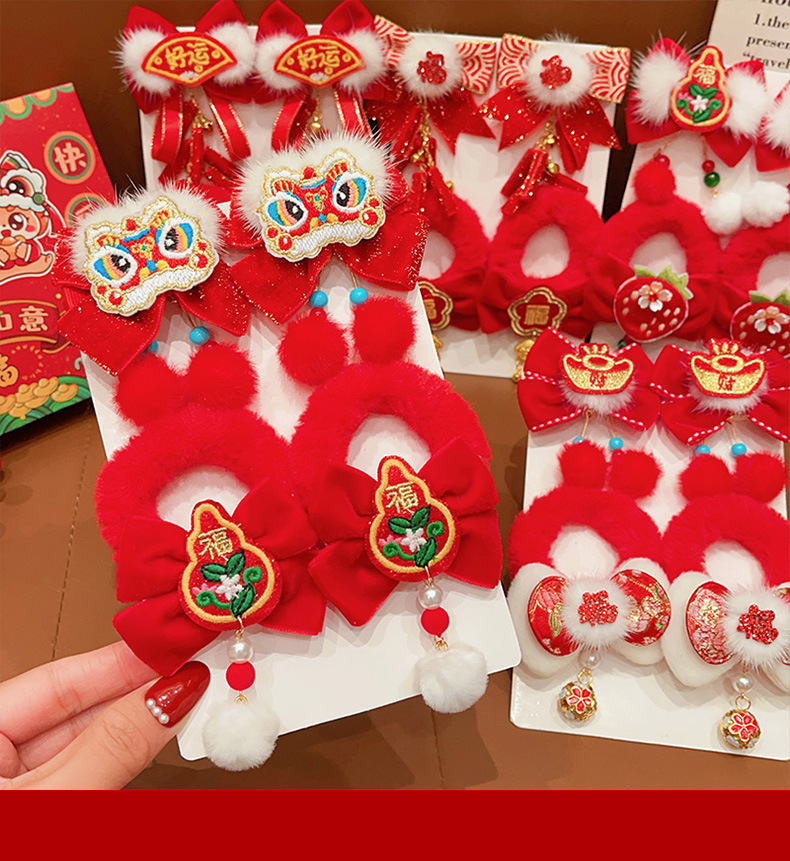 새해 어린이 봉제 헤어 밴드 헤어핀 헤드웨어 선물 세트 봄 축제 빨간 머리핀 헤드 로프 소녀 헤어 액세서리 클립