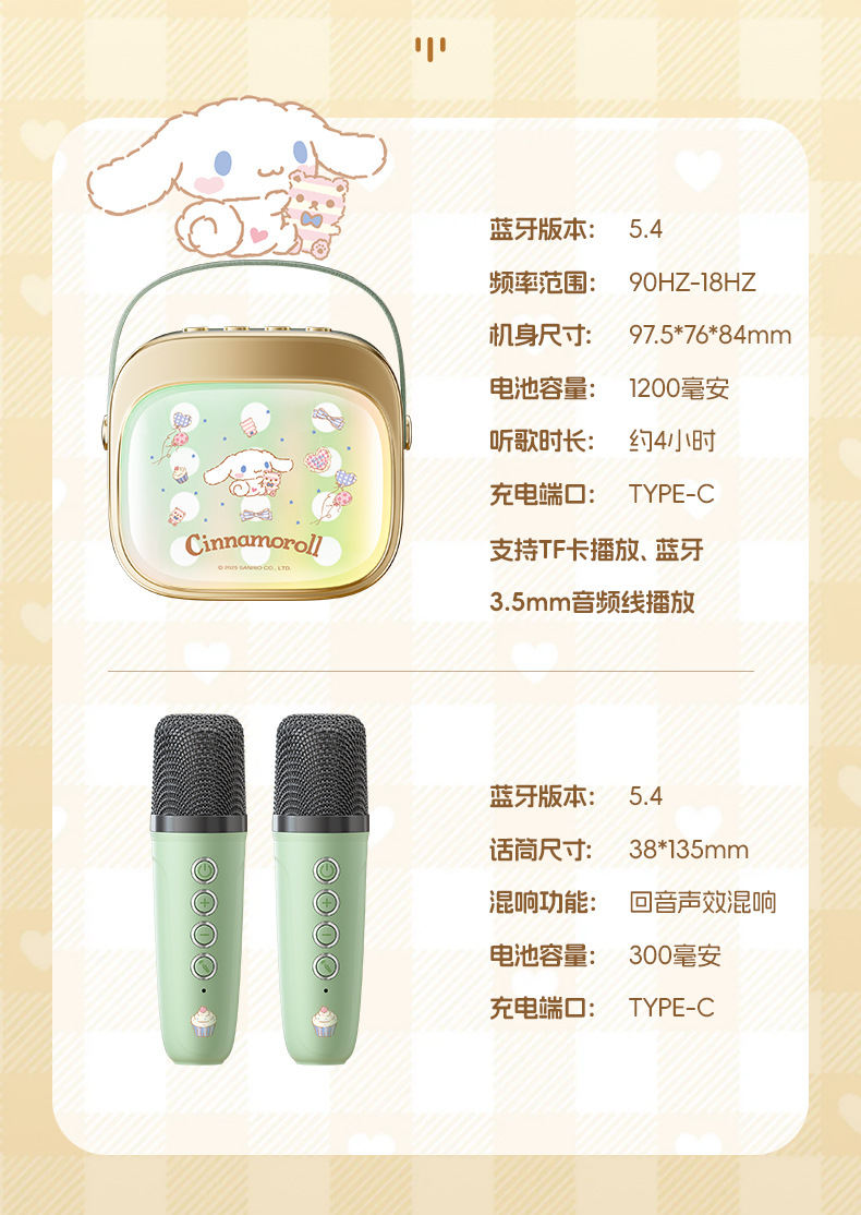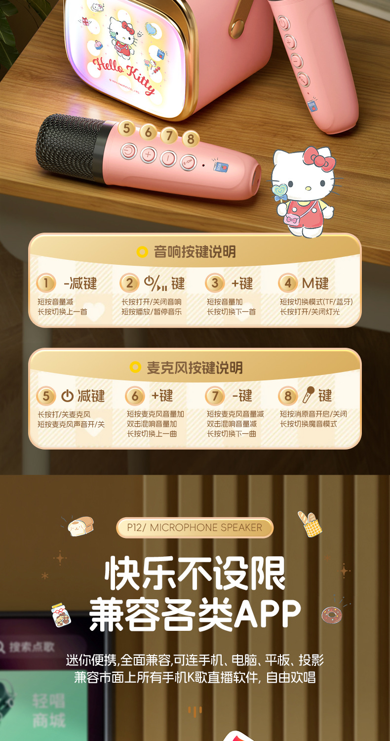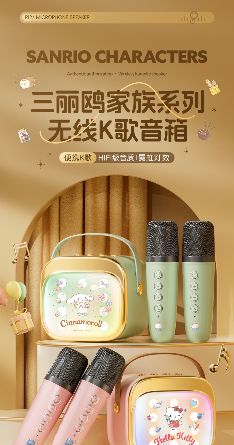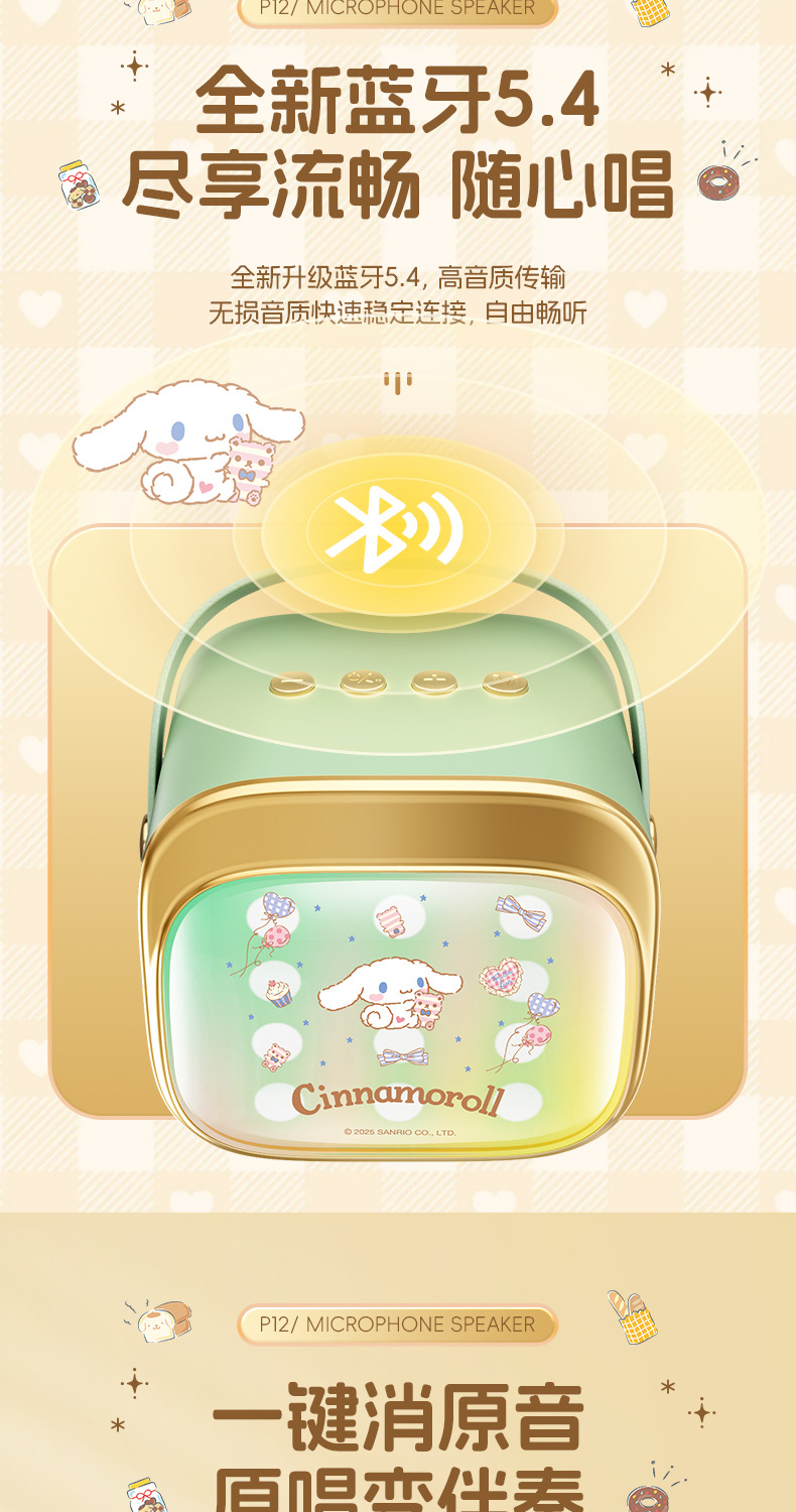 산리오 P12 무선 블루투스 오디오 통합 마이크 휴대 전화 블루투스 노래 어린이 국가 K-노래 작은 스피커