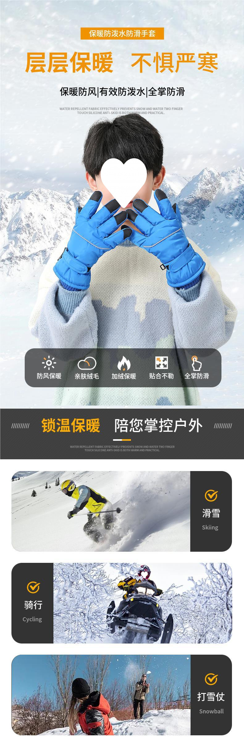 눈과 함께 노는 어린이와 남성을위한 스키 장갑 방화 따뜻한 방수 겨울 승마 기모 두꺼운 어린이의 미끄럼 방지 겨울
