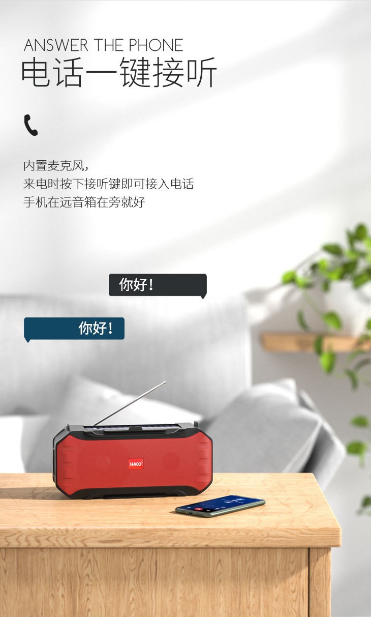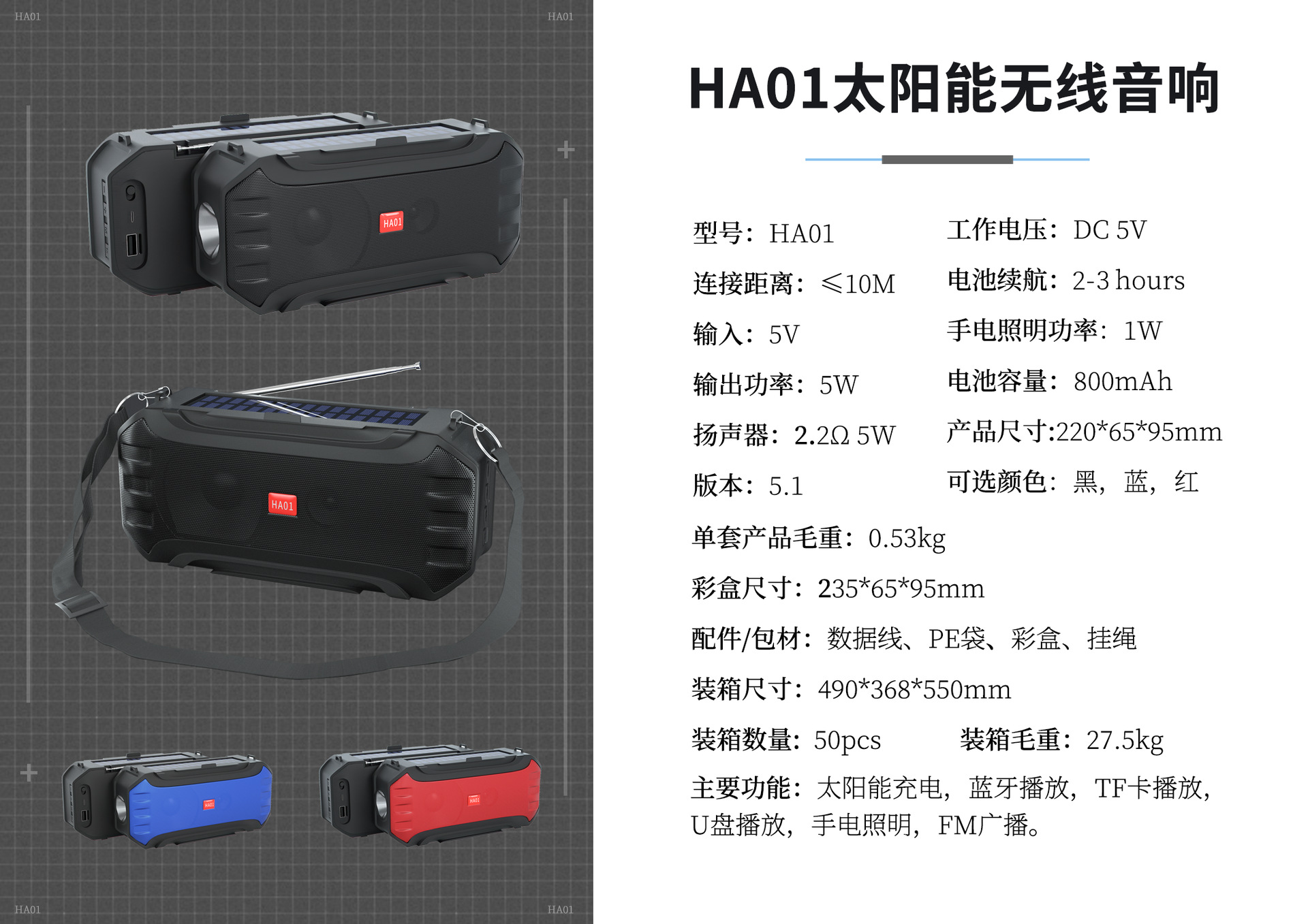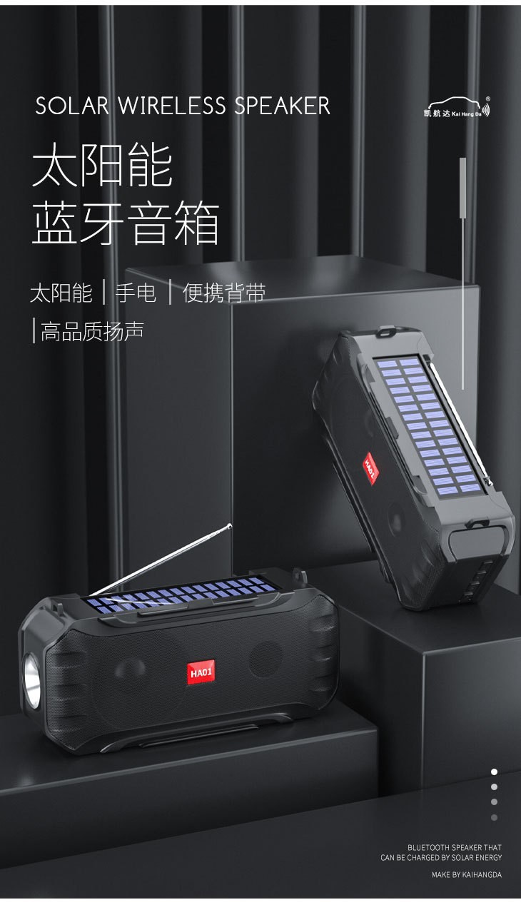 원래 HA01 태양열 무선 블루투스 스피커 FM 라디오 손전등 휴대용 야외 스피커