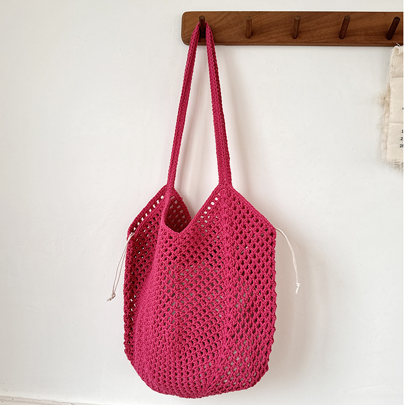 대용량 할로우 코튼 로프 가방 캐주얼 패션 게으른 스타일 휴가 어깨 가방 모든 경기 여성 통근 가방