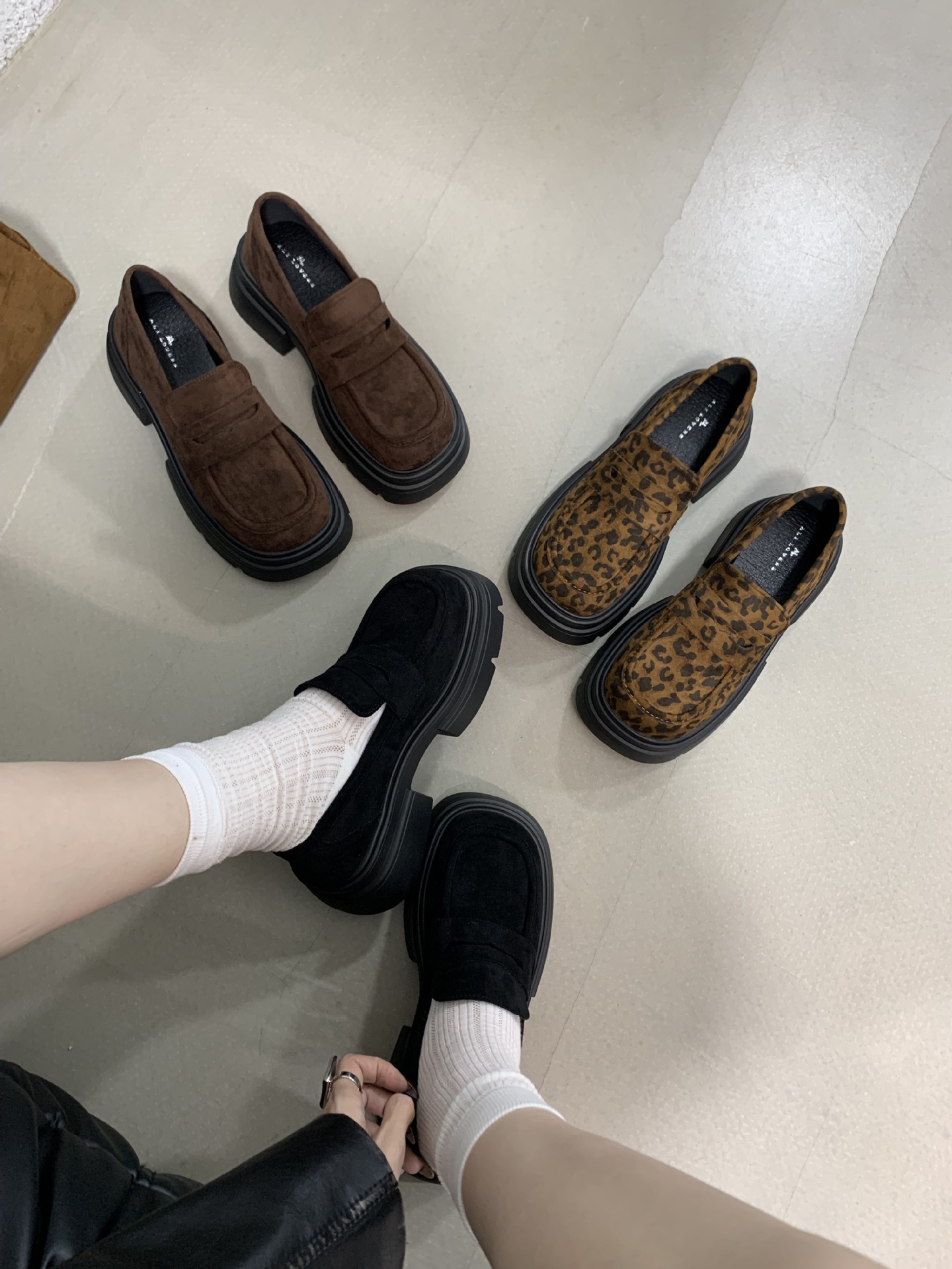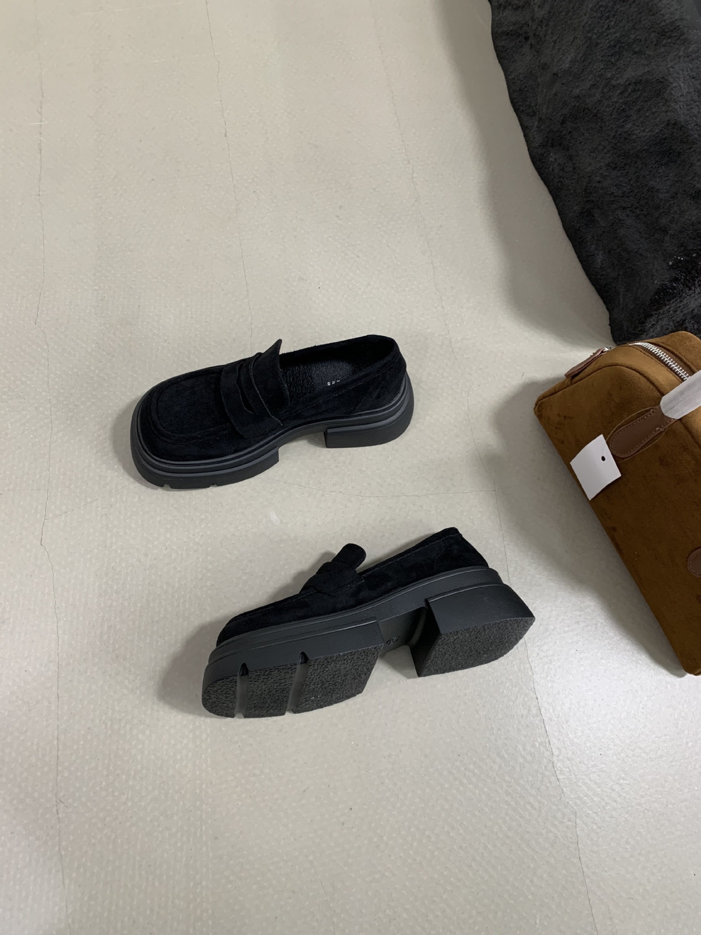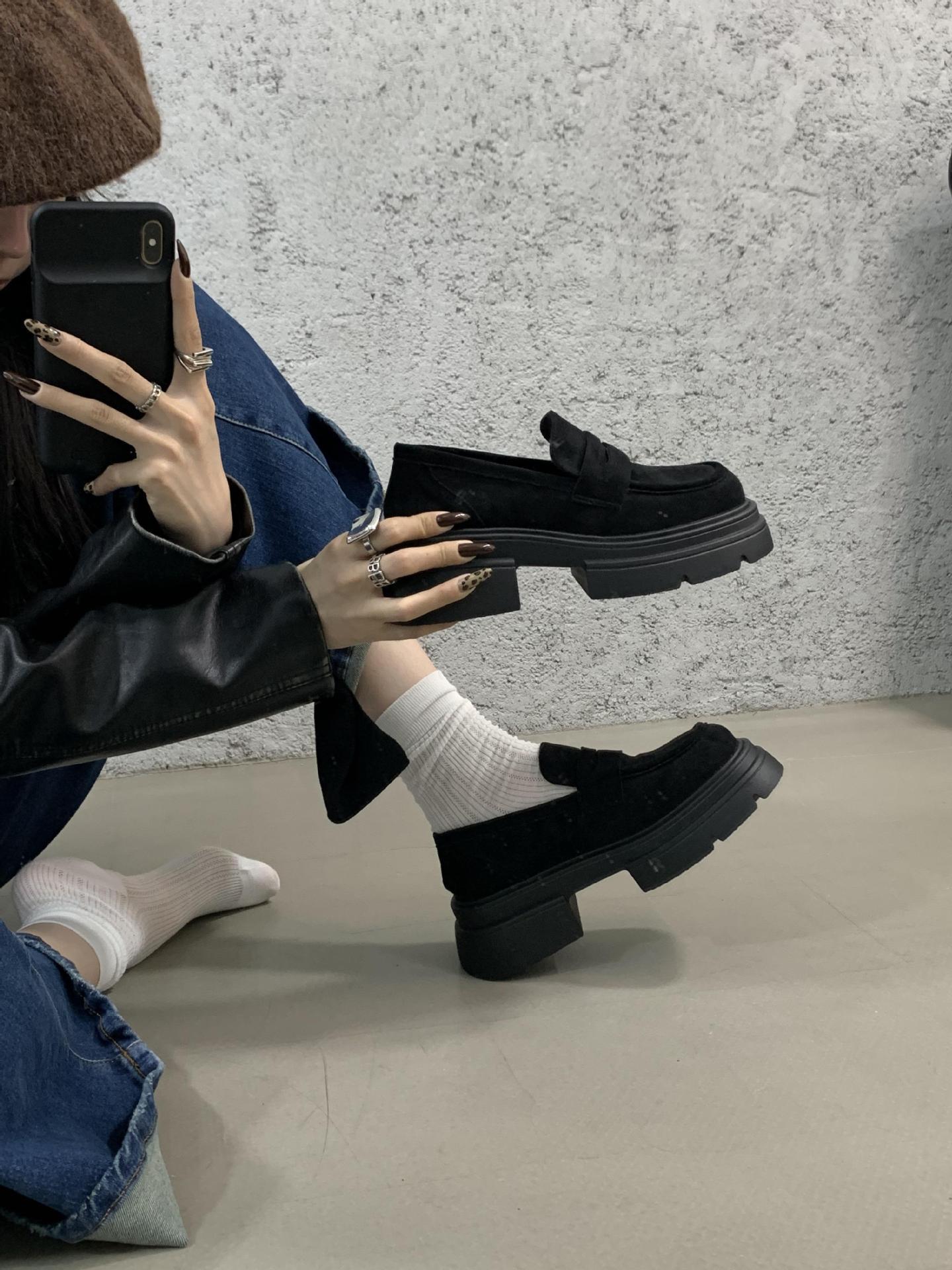 2024 년 가을과 겨울 새로운 두꺼운 밑창 로퍼 여성 영국 스타일 슬립 온 두꺼운 굽 작은 높이 올리기 신발스토어 가기