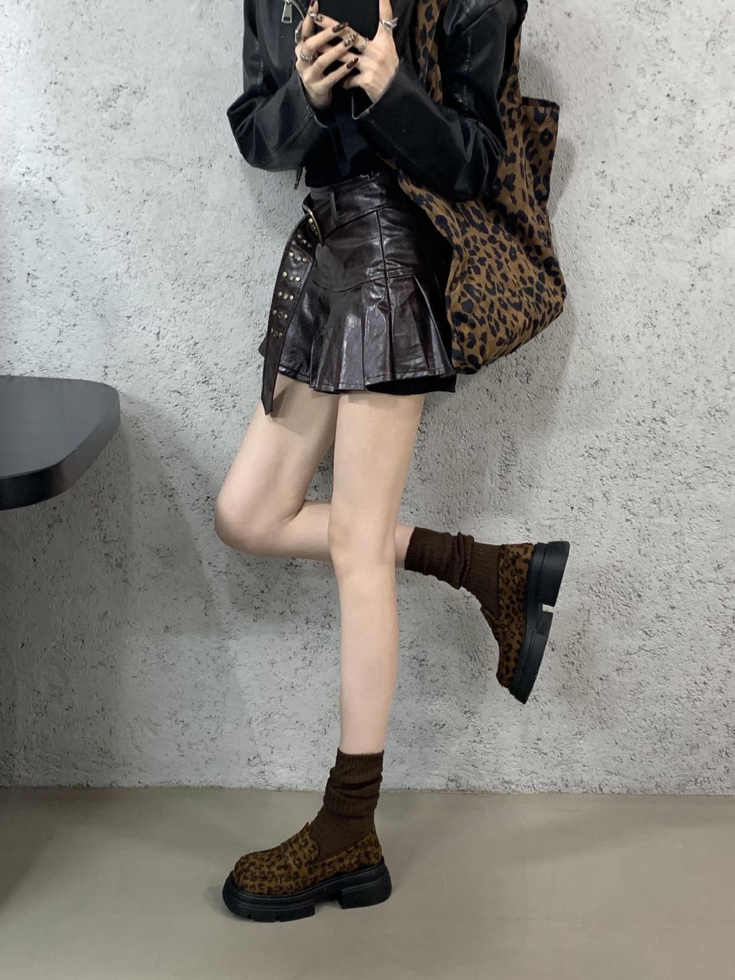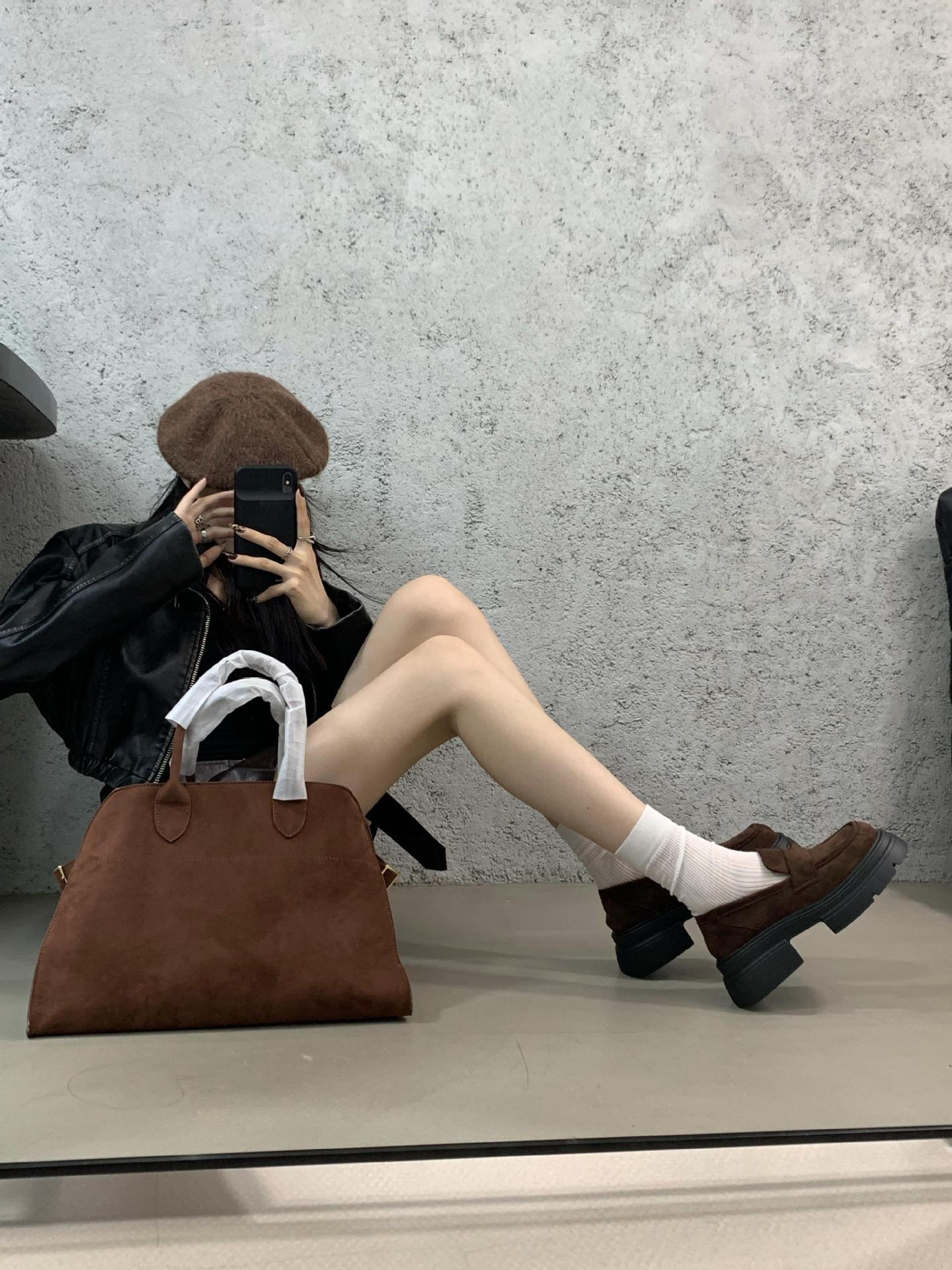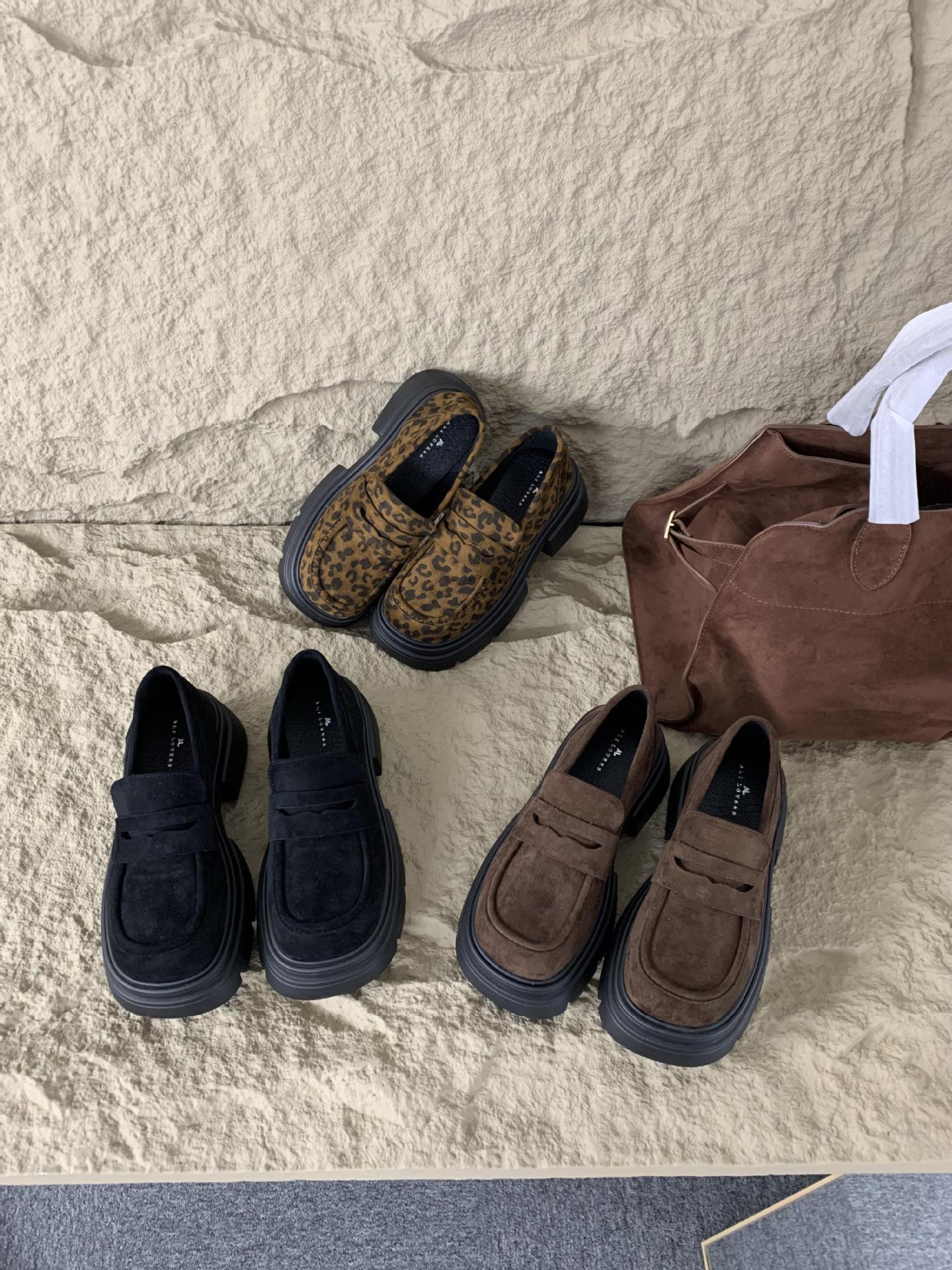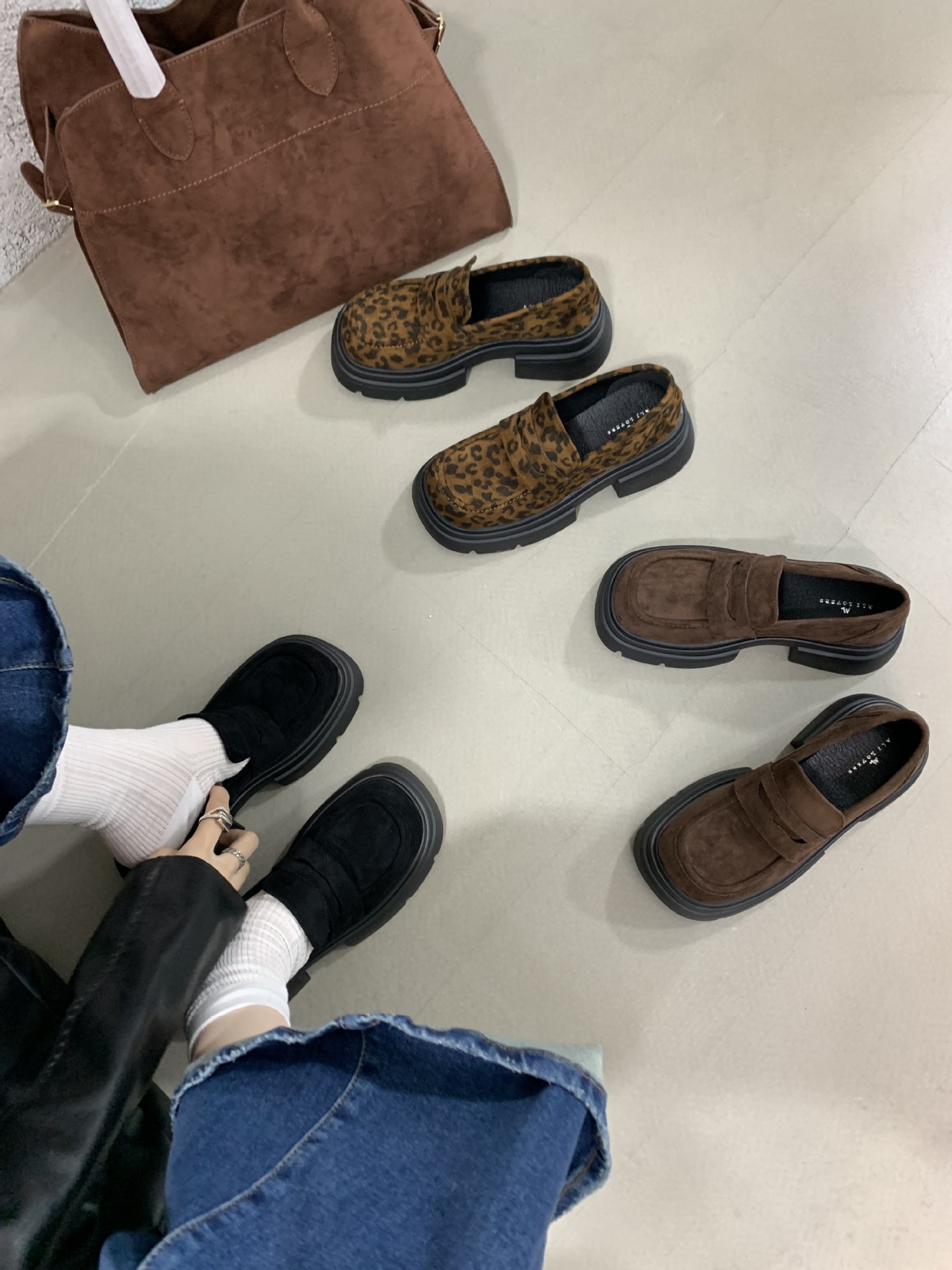 2024 년 가을과 겨울 새로운 두꺼운 밑창 로퍼 여성 영국 스타일 슬립 온 두꺼운 굽 작은 높이 올리기 신발스토어 가기