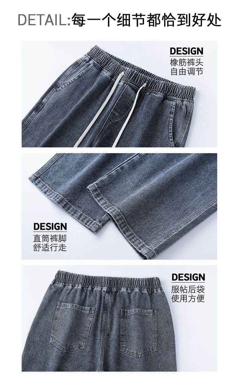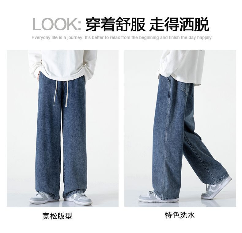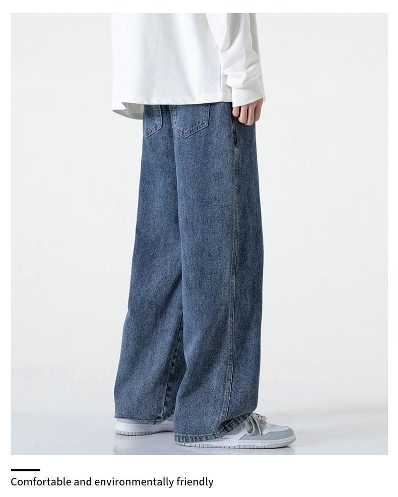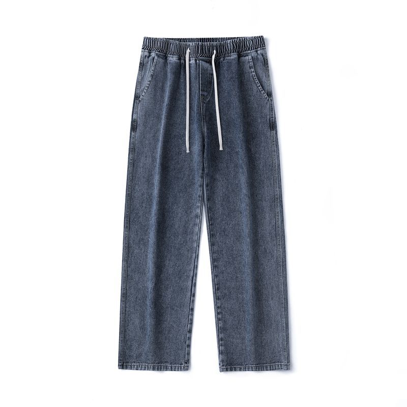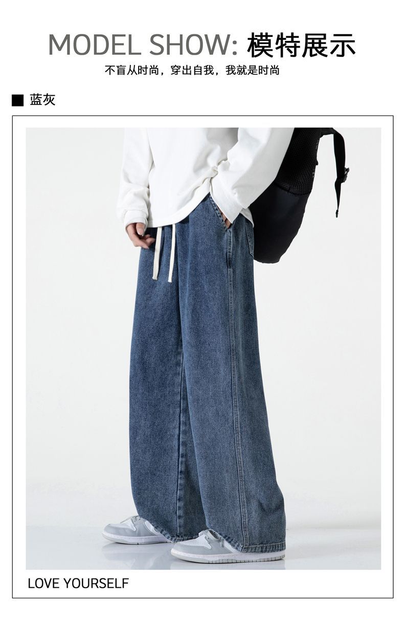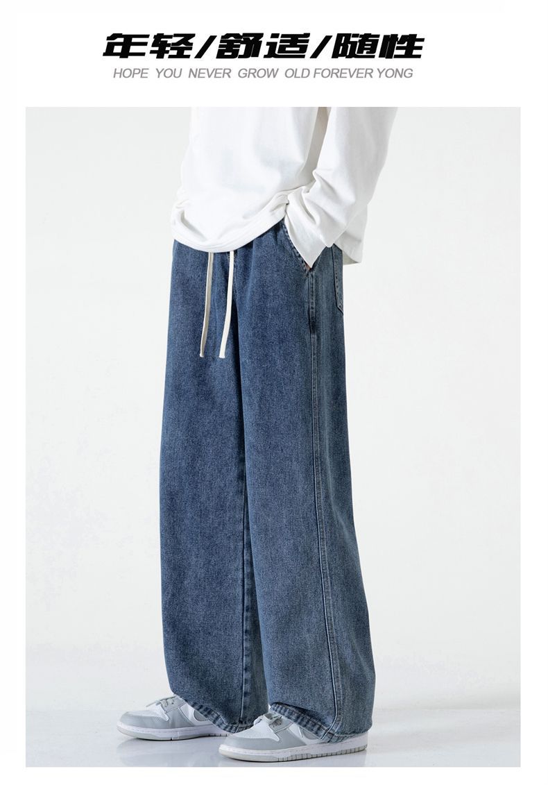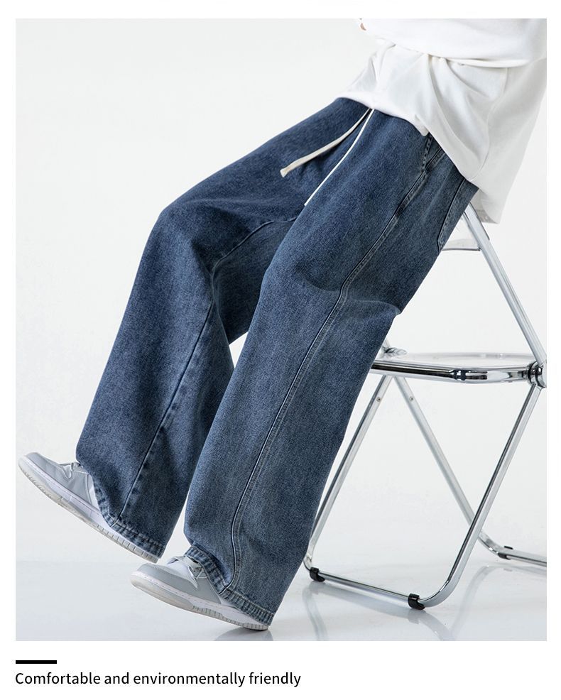 밍게 | 2026 봄 여름 신상 남성용 신축성 허리밴드 청바지, 홍콩 스타일 트렌디 루즈핏 와이드 스트레이트 롱 팬츠스토어 가기