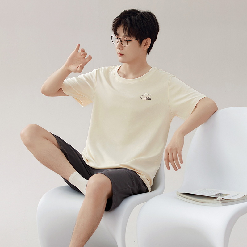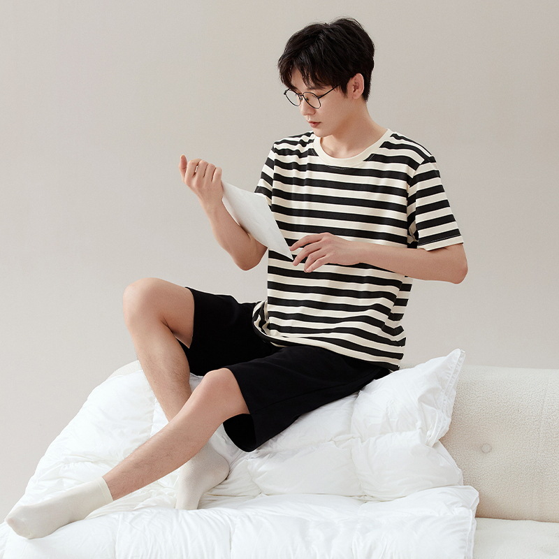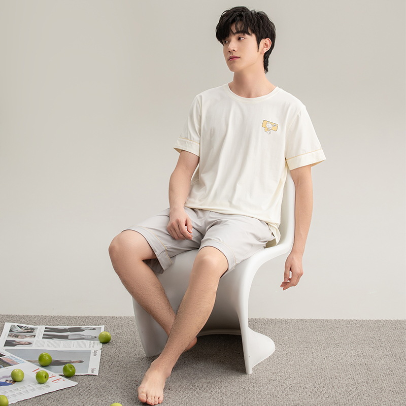 [7A 항균] 코튼 파자마 남자 여름 반팔 2025 뉴 보이즈 캐주얼 홈 의류 투피스 세트