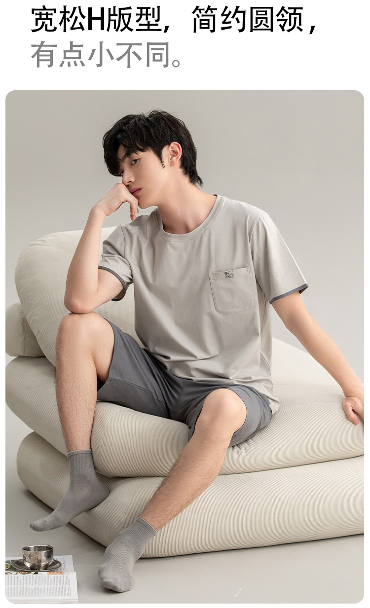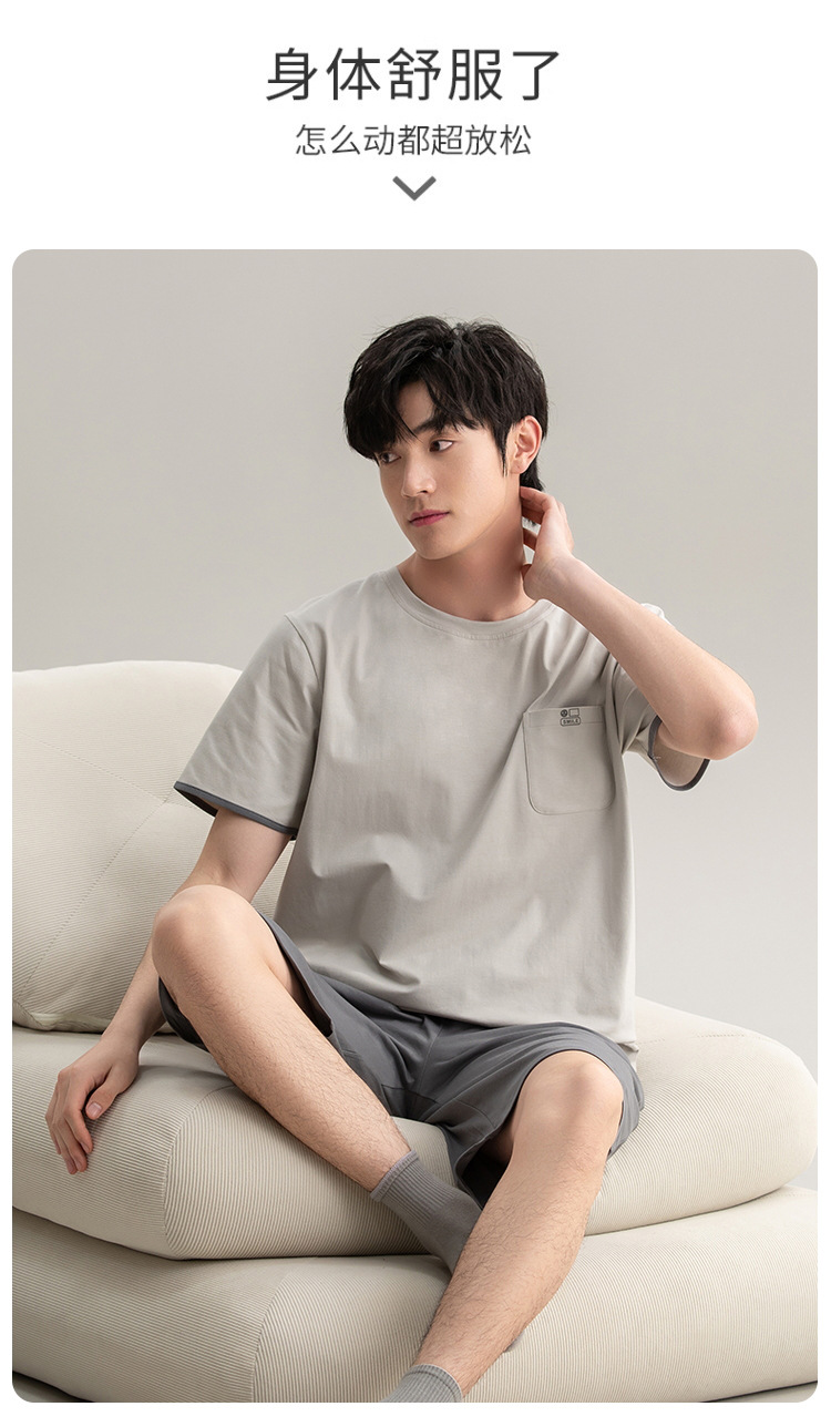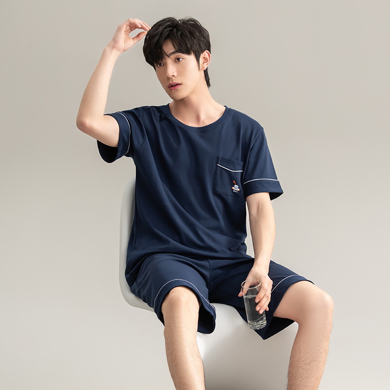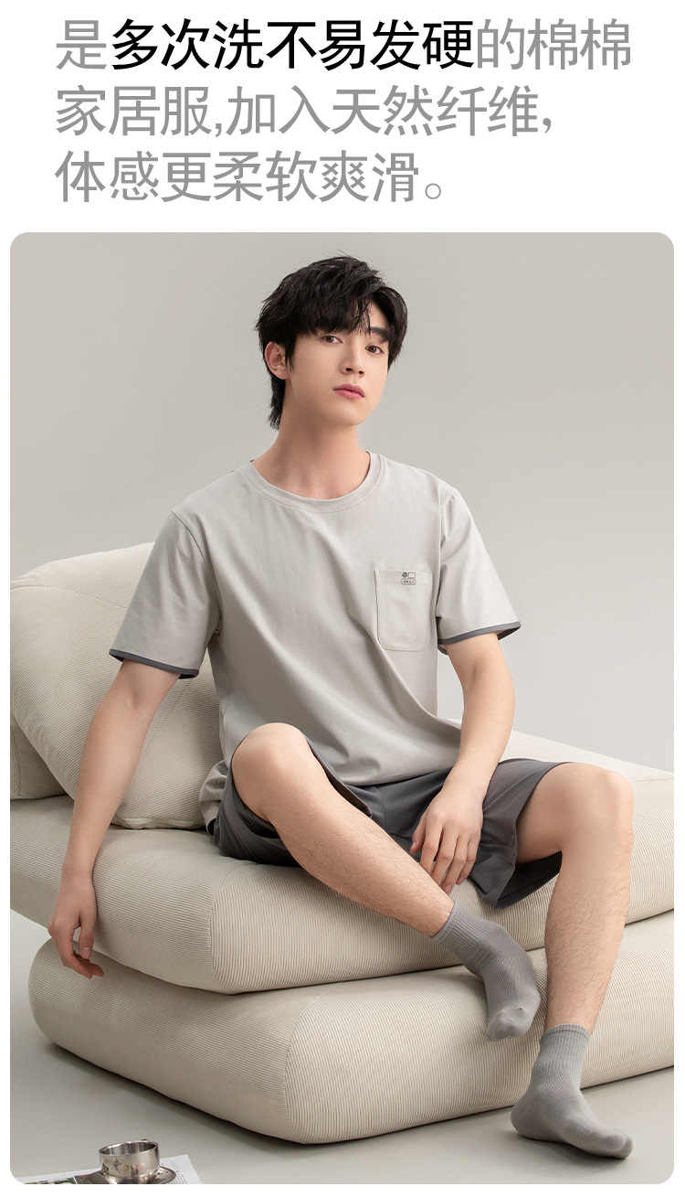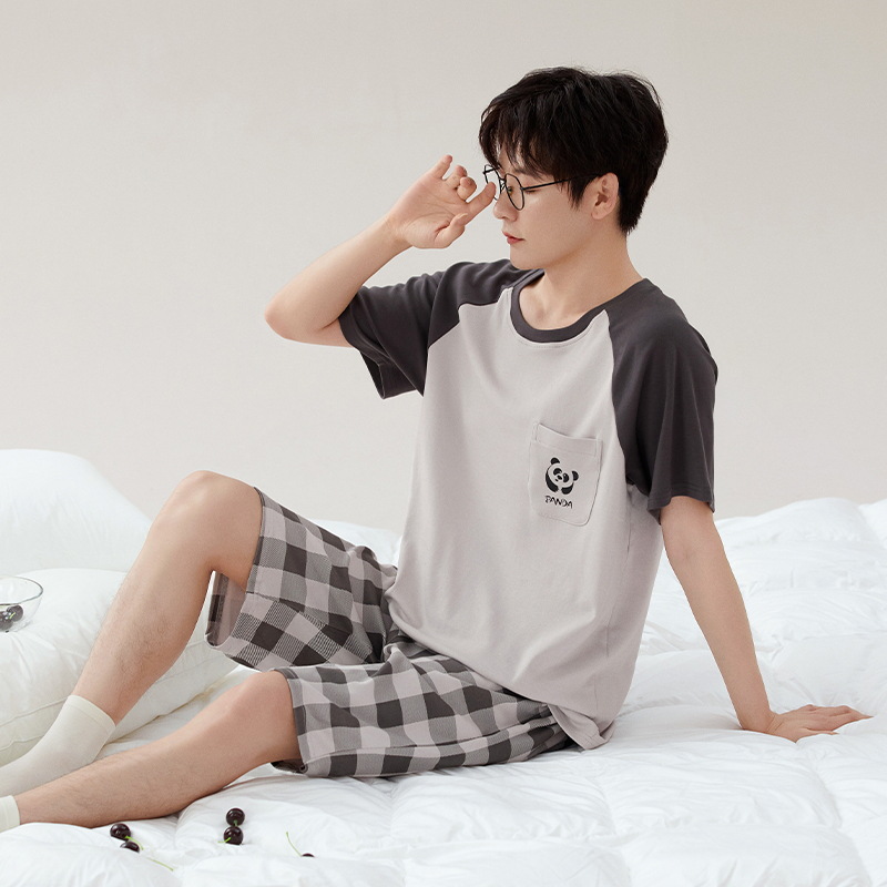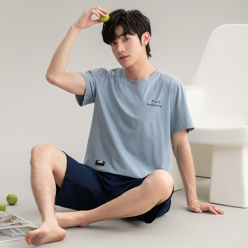 [7A 항균] 코튼 파자마 남자 여름 반팔 2025 뉴 보이즈 캐주얼 홈 의류 투피스 세트스토어 가기