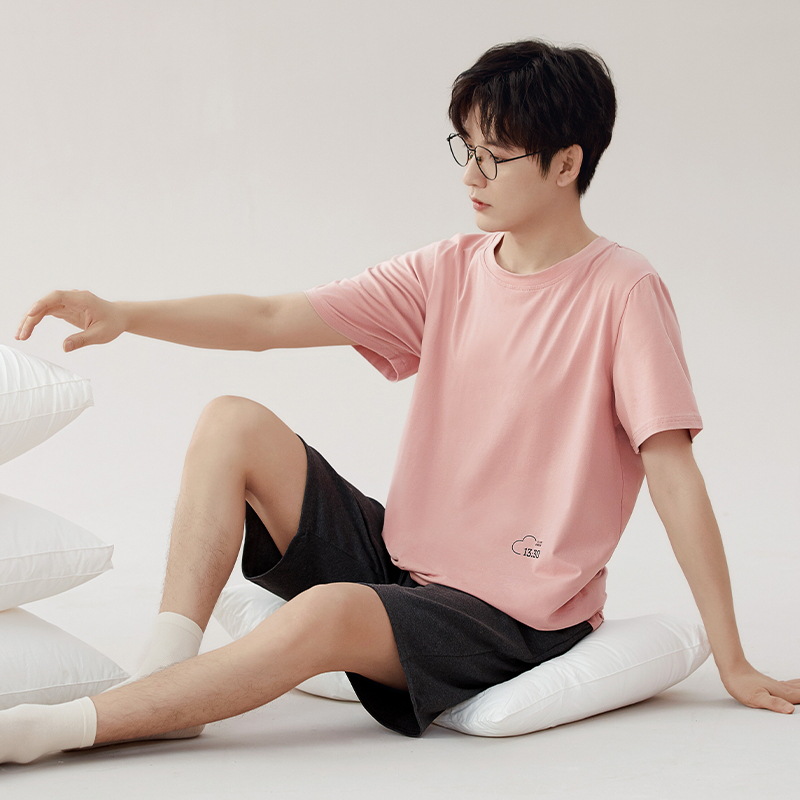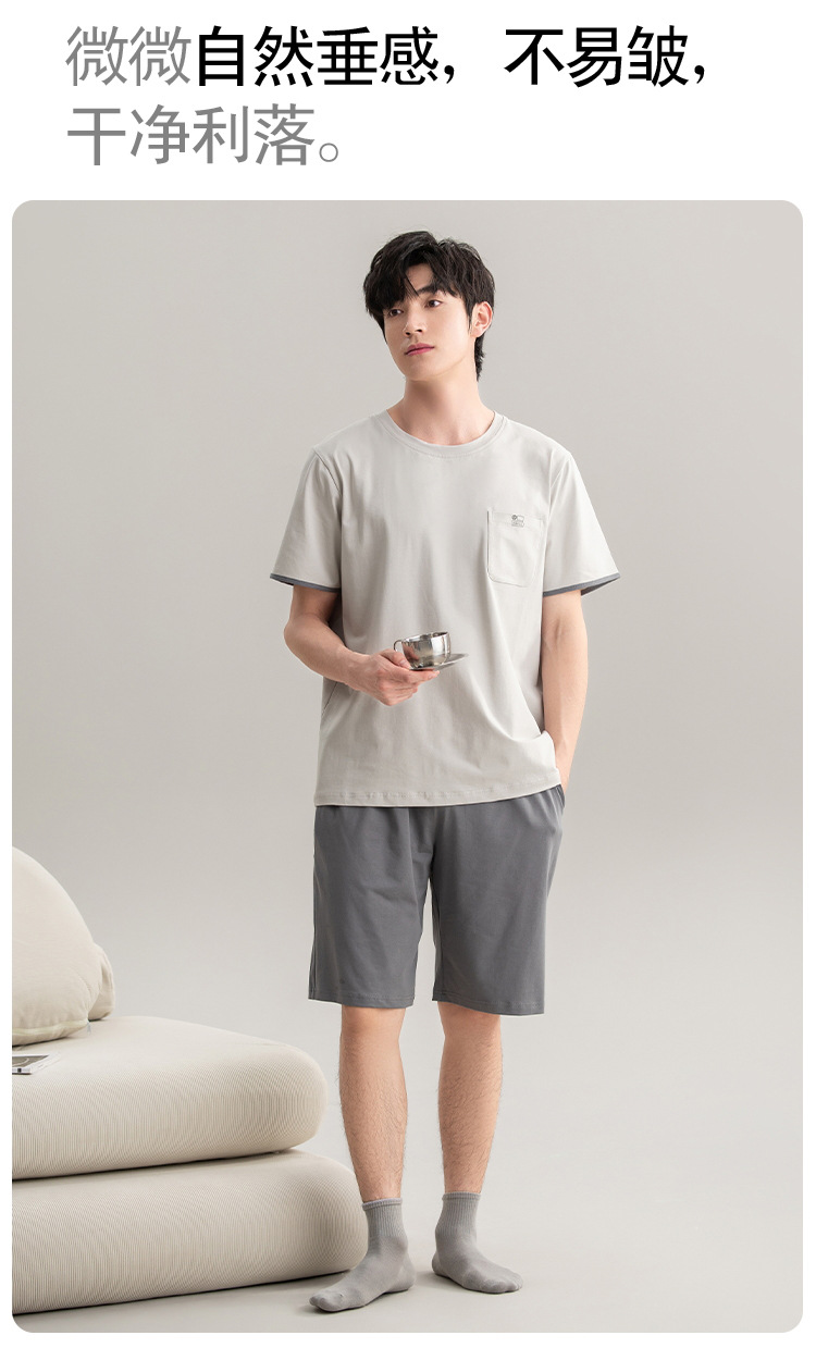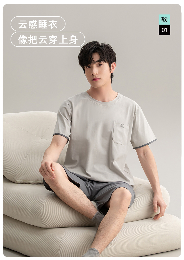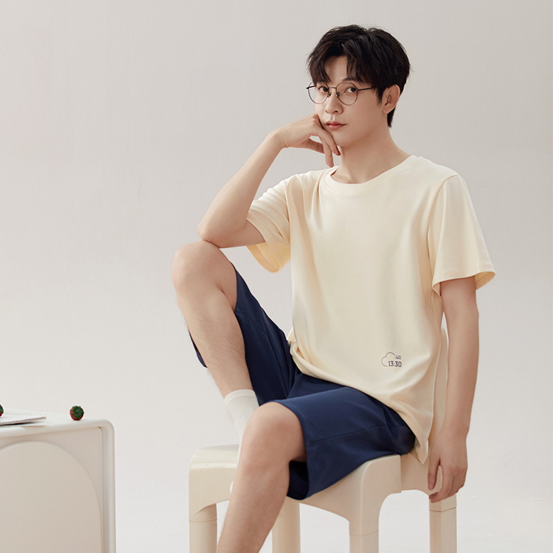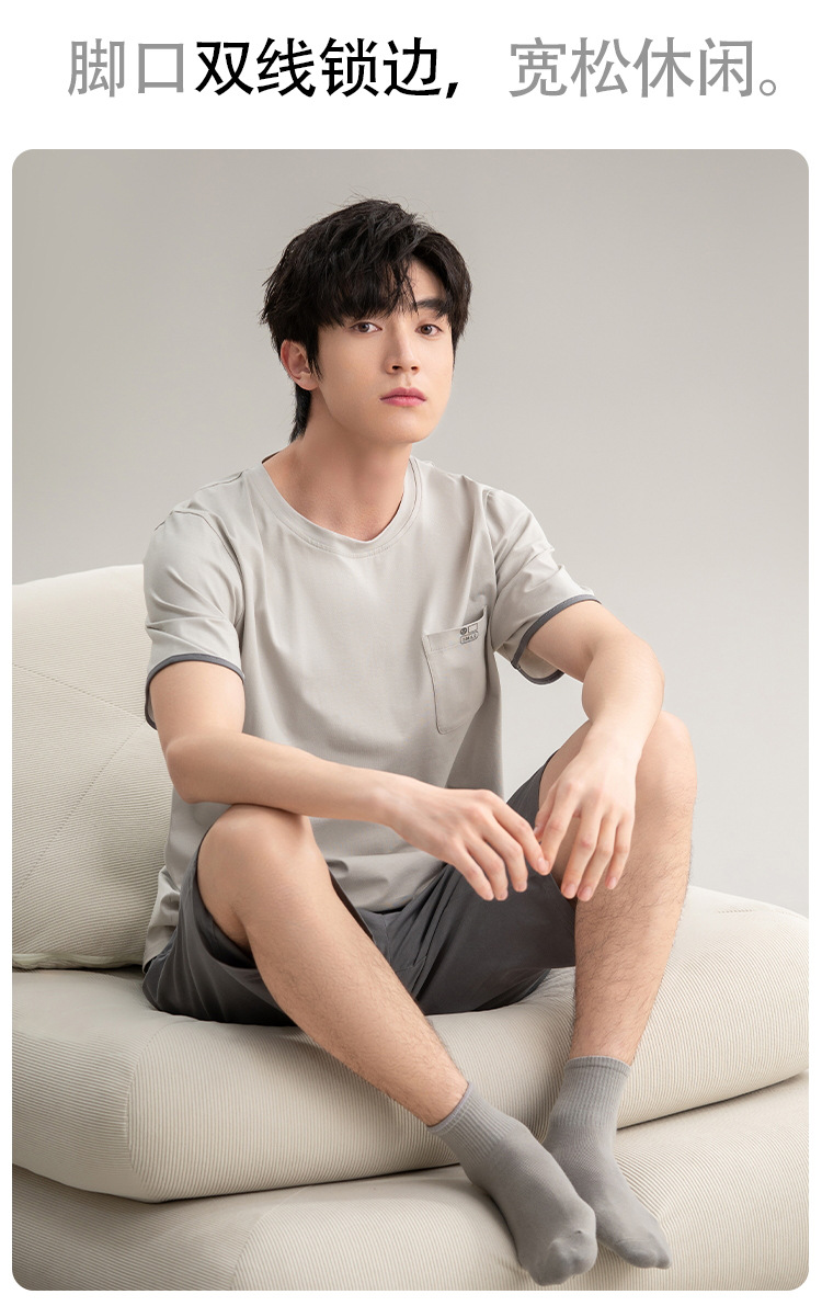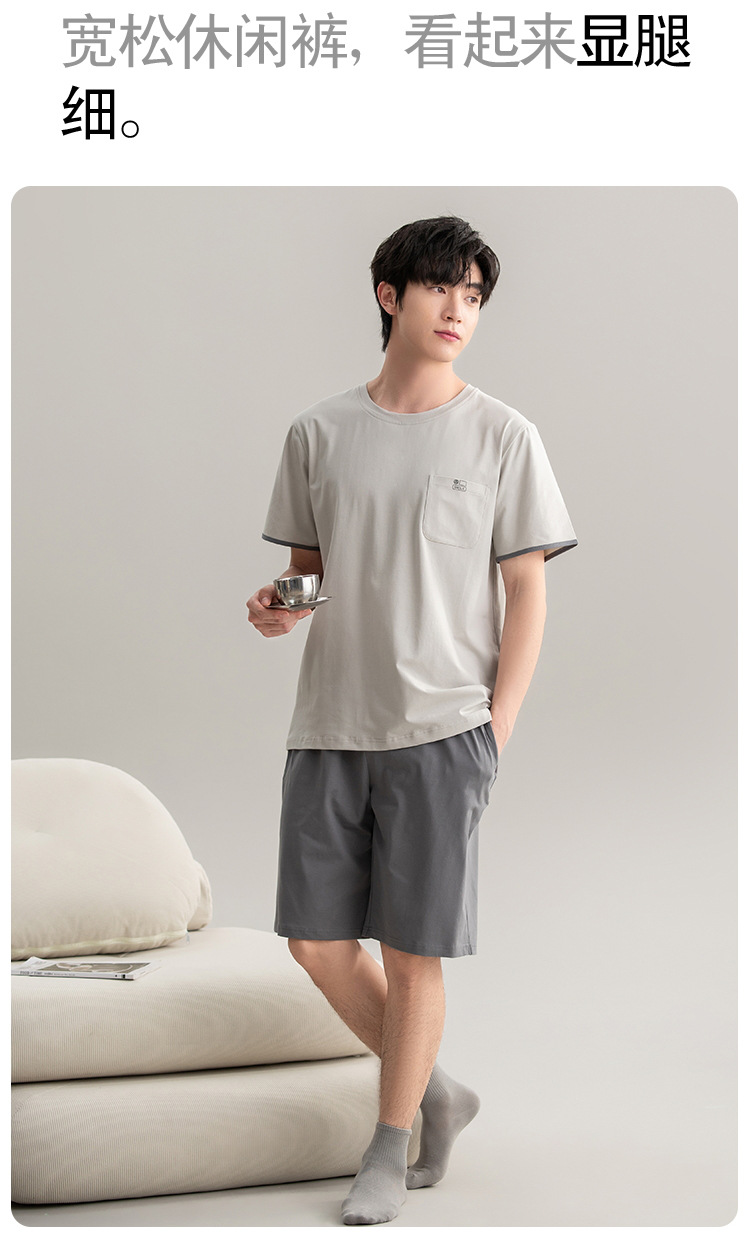 [7A 항균] 코튼 파자마 남자 여름 반팔 2025 뉴 보이즈 캐주얼 홈 의류 투피스 세트스토어 가기