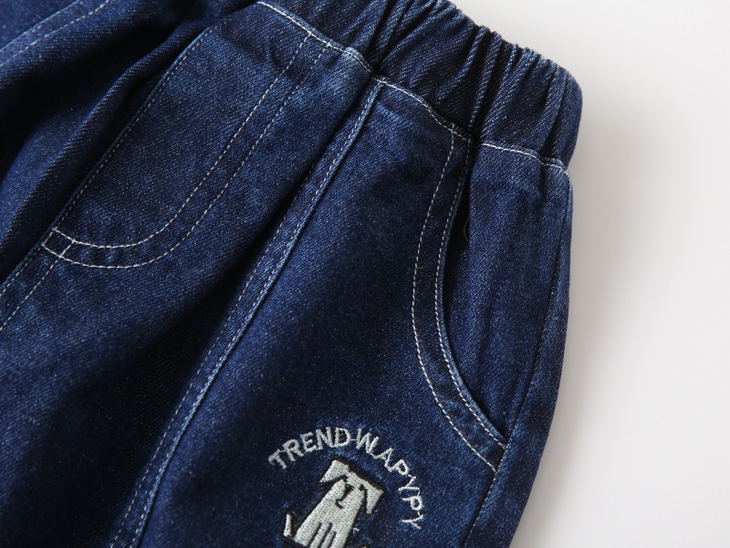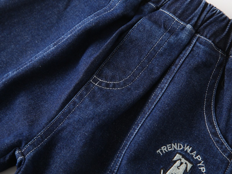 어린이 여름 청바지 2025 새 소년 바지 한국 아기 다크 블루 데님 바지 머리카락 세대