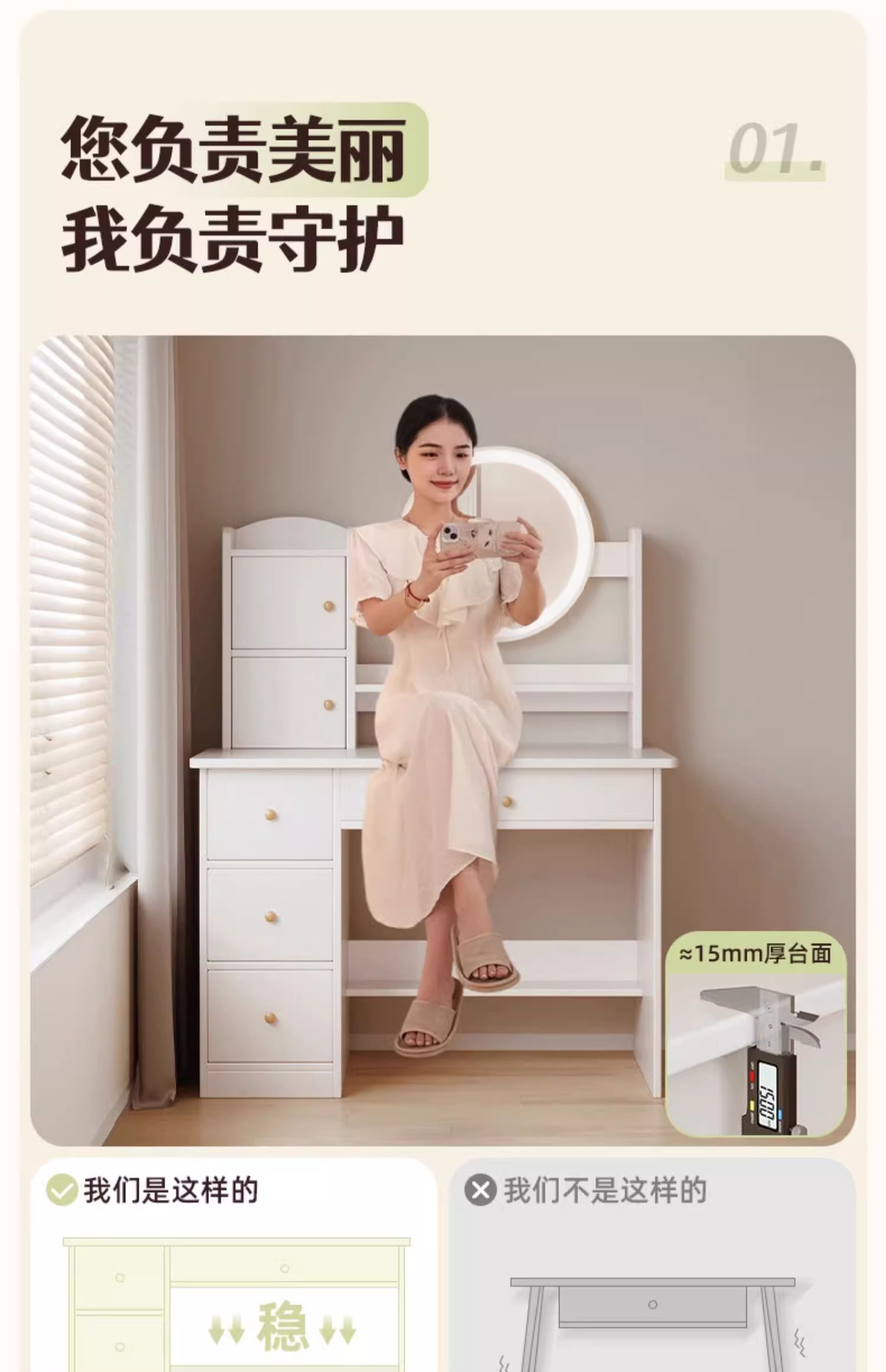 梳妆台卧室简约现代2024新款轻奢主卧小户型化妆桌镜子收纳柜一体