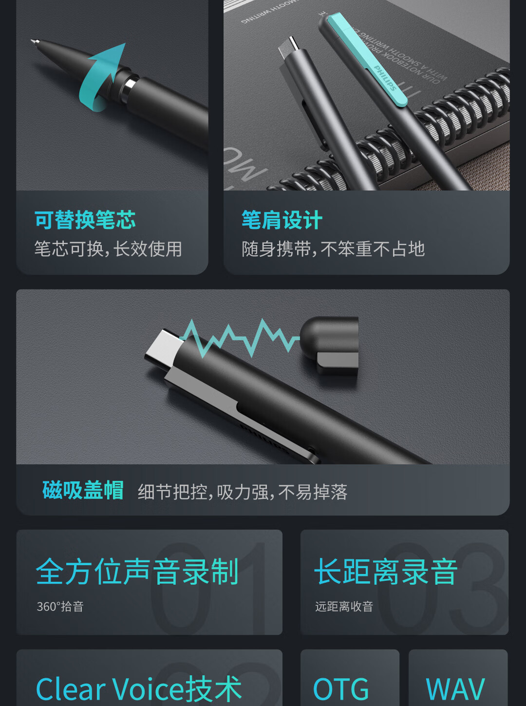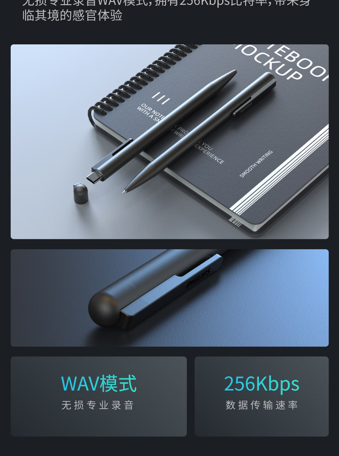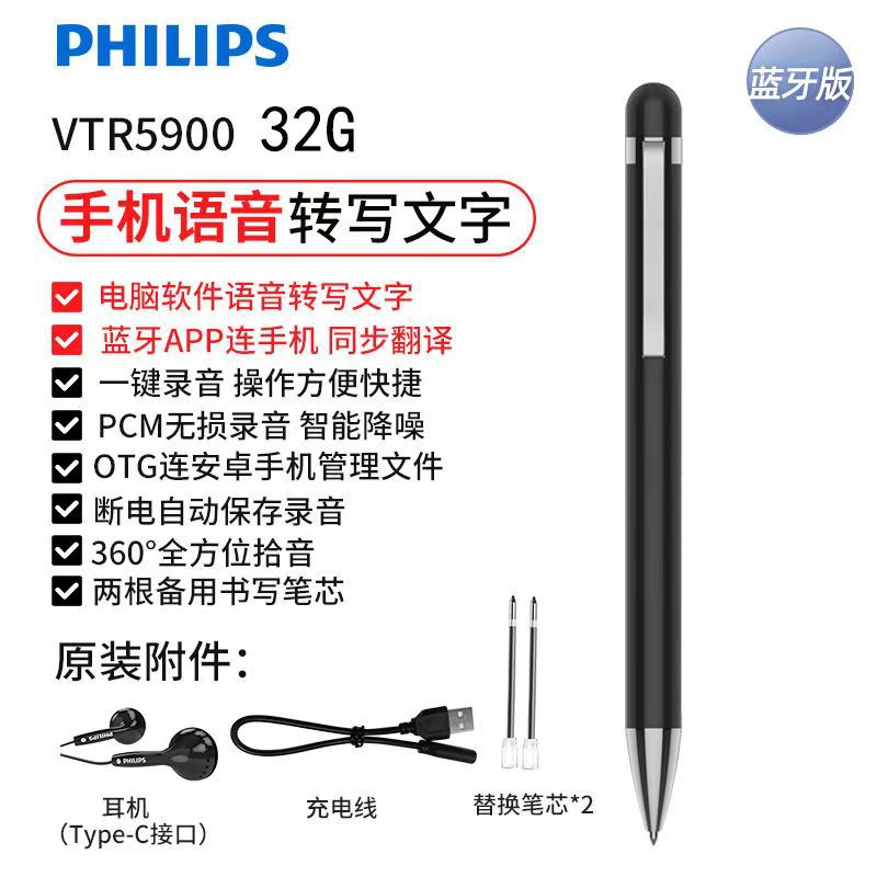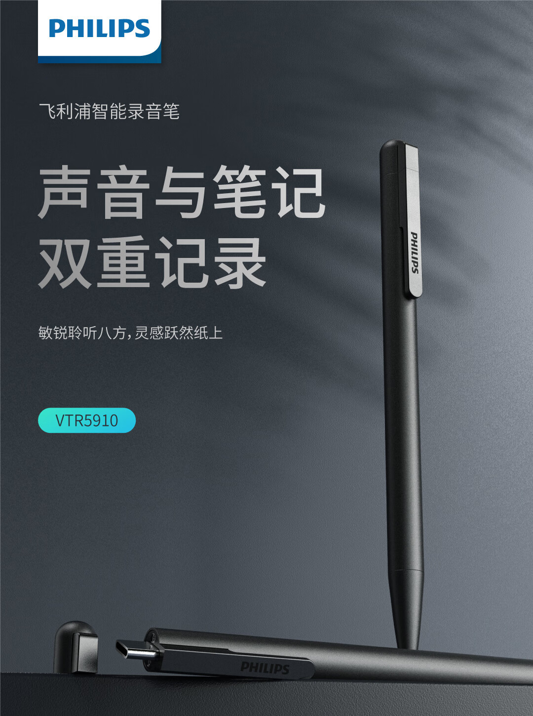 필립스 VTR5910 레코딩 펜 전문 HD 노이즈 감소 한 버튼 녹음 휴대용 음성 텍스트 레코더스토어 가기