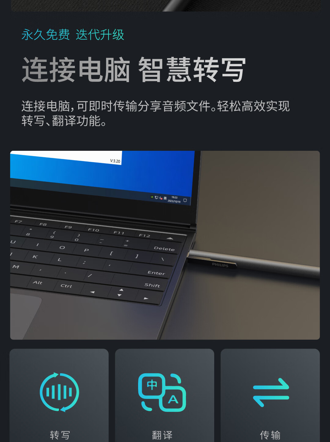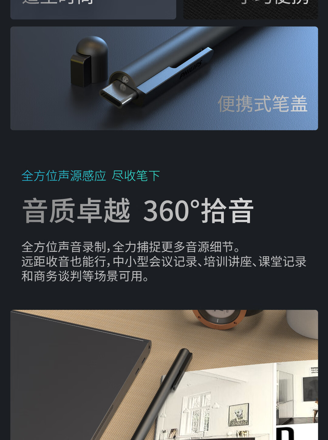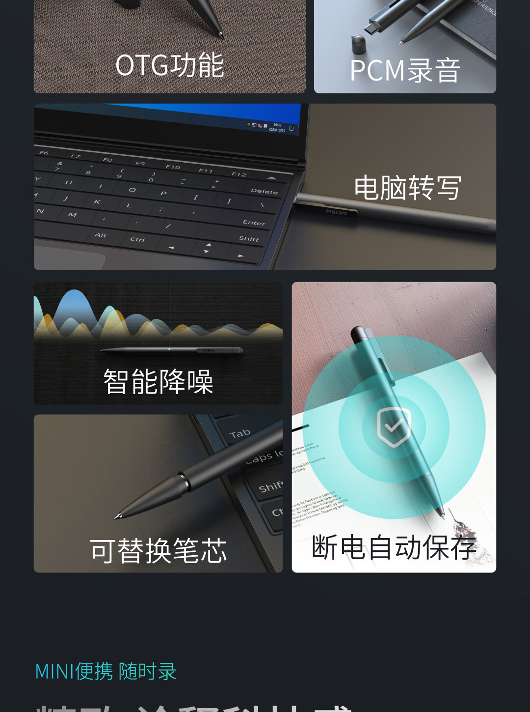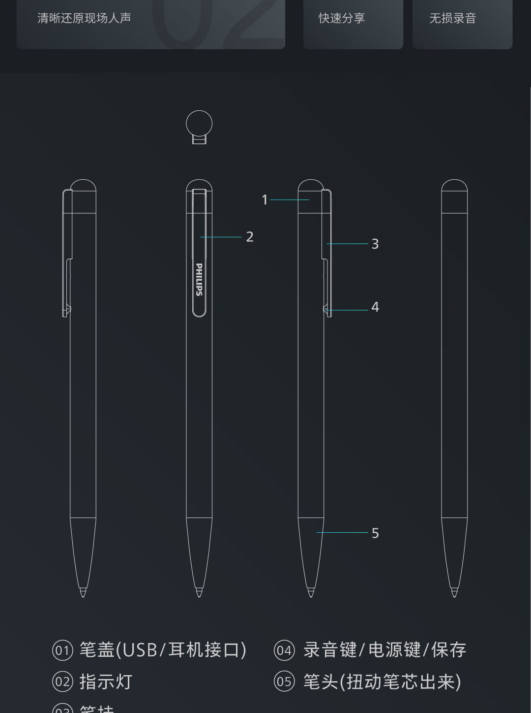 필립스 VTR5910 레코딩 펜 전문 HD 노이즈 감소 한 버튼 녹음 휴대용 음성 텍스트 레코더스토어 가기