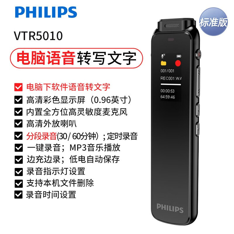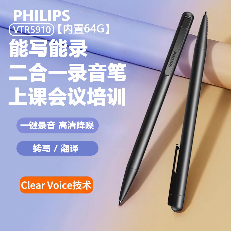필립스 VTR5910 레코딩 펜 전문 HD 노이즈 감소 한 버튼 녹음 휴대용 음성 텍스트 레코더