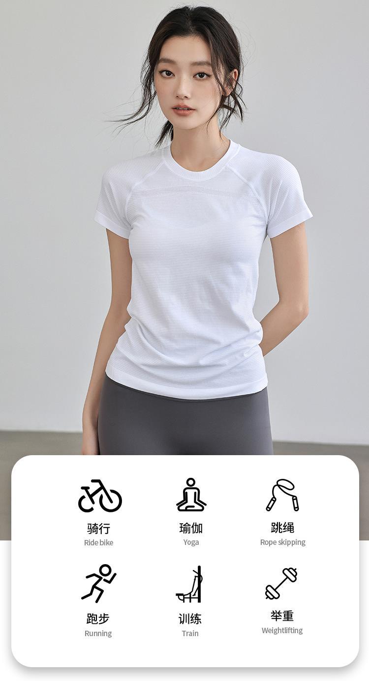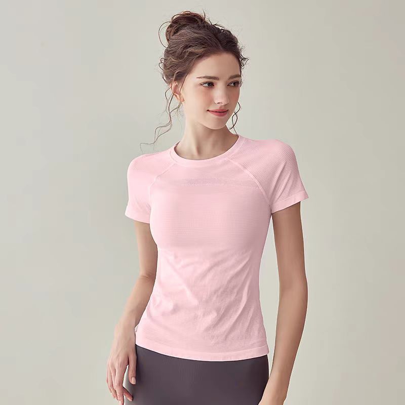 봄과 여름 새로운 스포츠 피트니스 반팔 빠른 건조 요가 세트 러닝 트레이닝 탑 타이트 아우터 슬림 티셔츠
