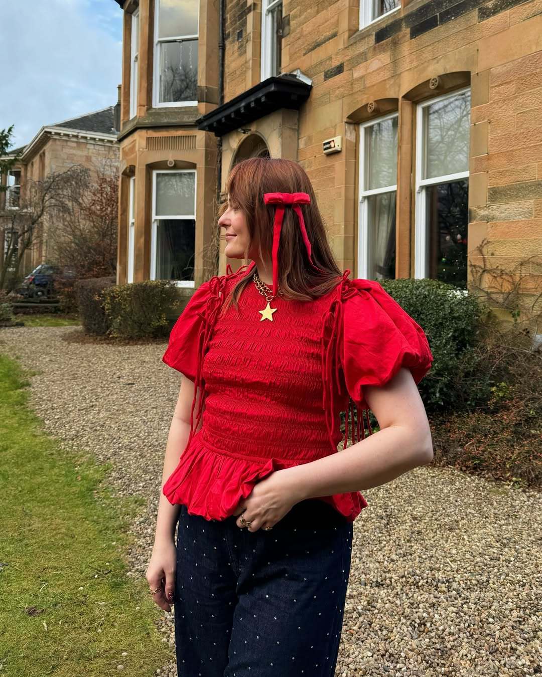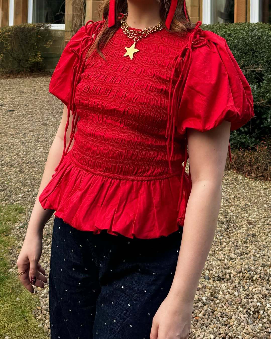 레드 탈착식 레이스 업 버블 슬리브 스웨트 슬림 핏 셔츠 크로스 보더 패션 새로운 반팔 라운드 넥 탑스토어 가기
