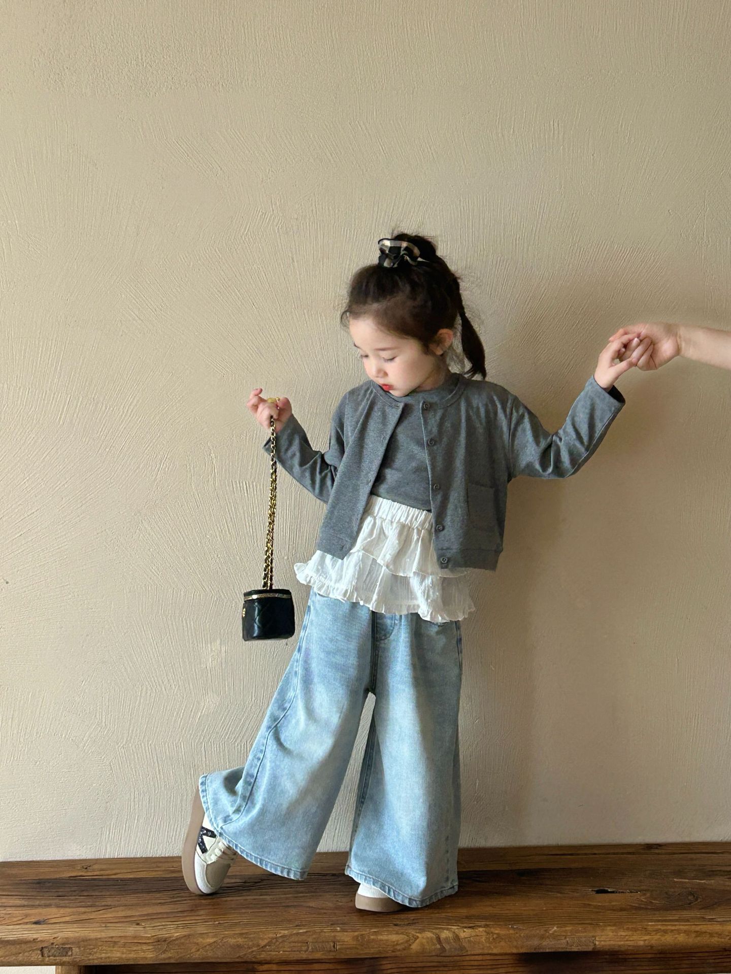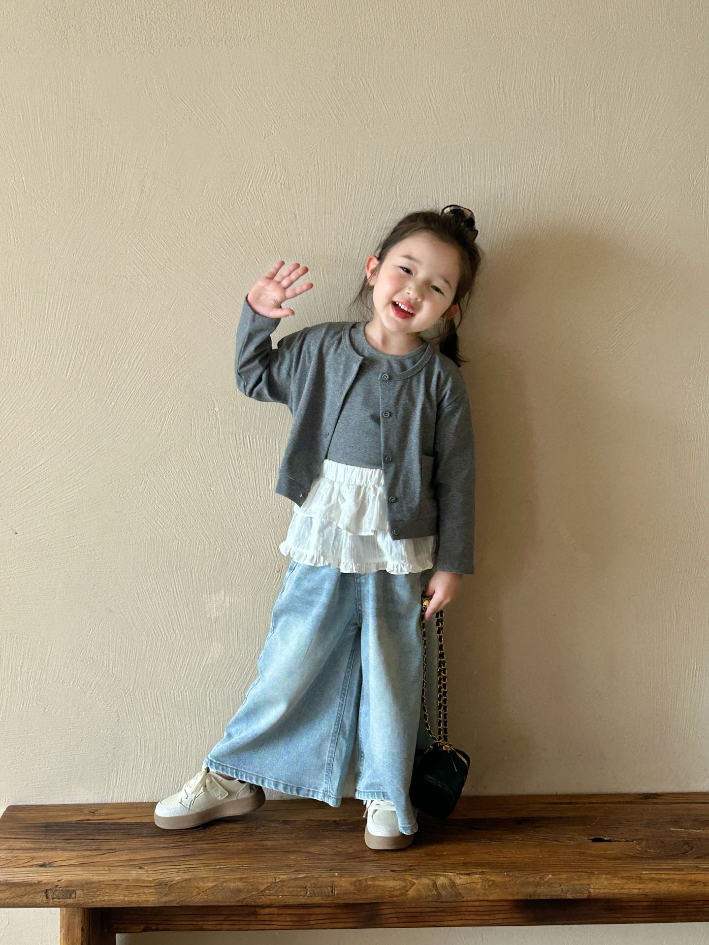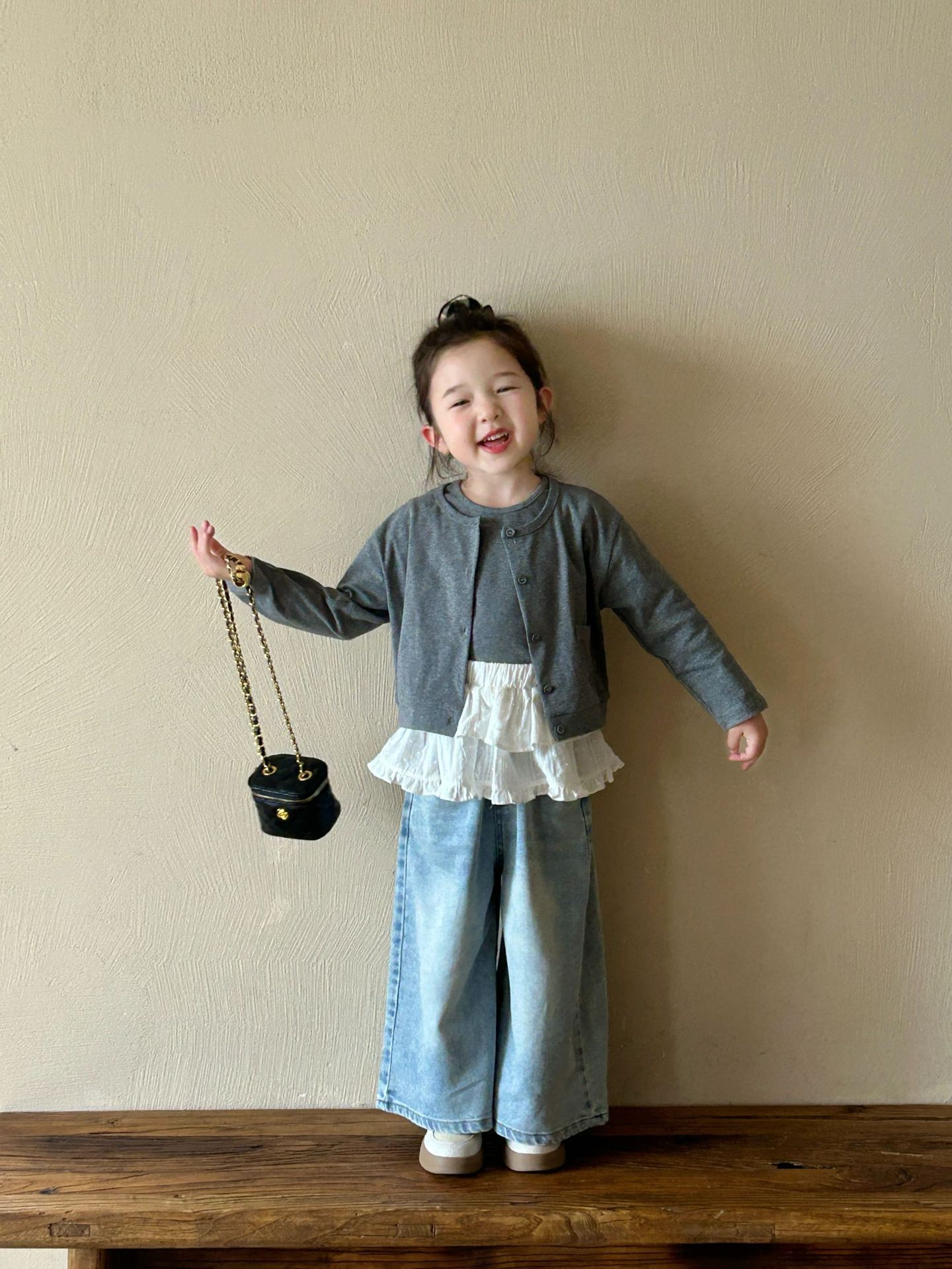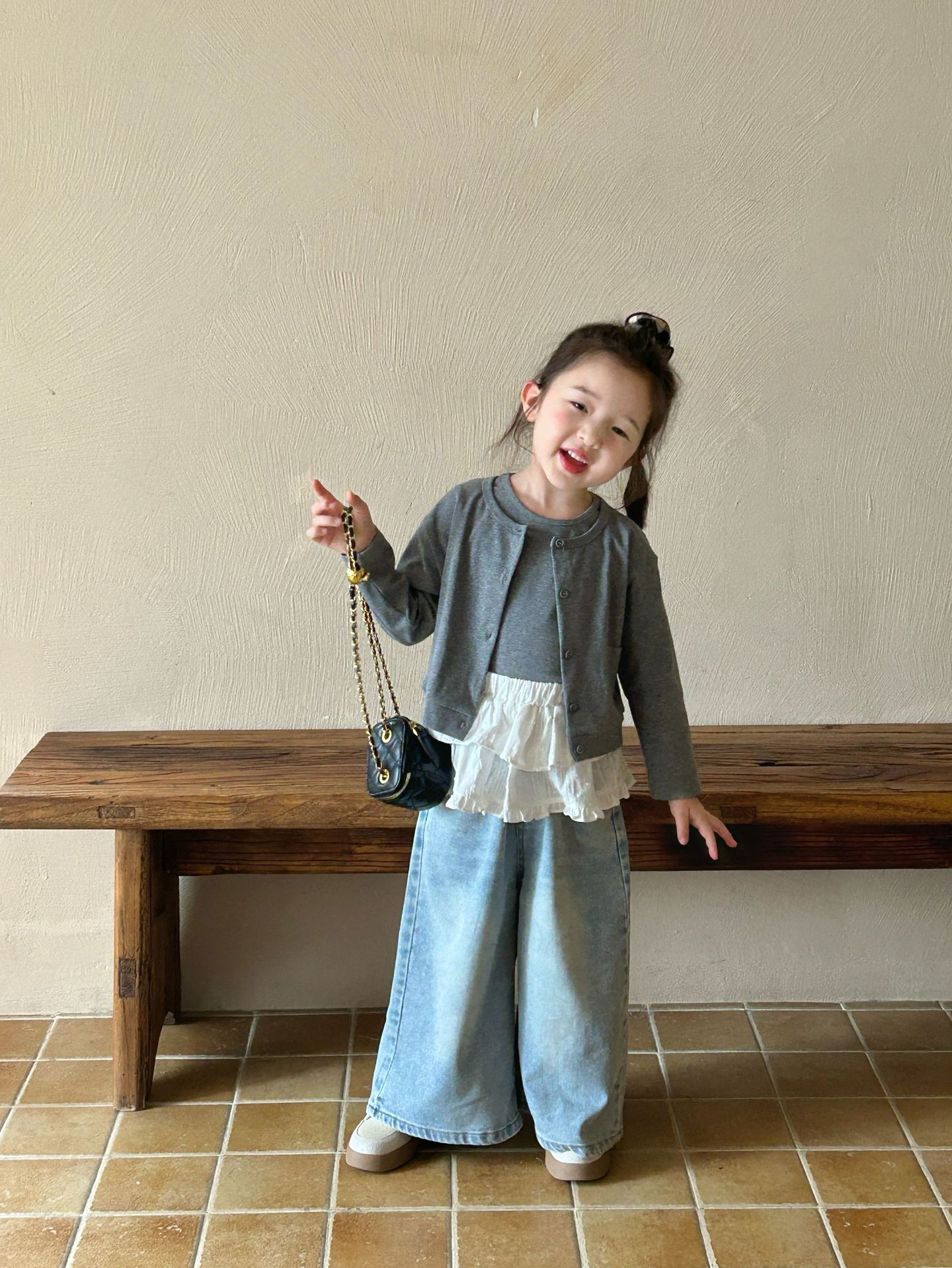 2025 봄 새 아동복 한국 아동복 소녀 단색 카디건 코트 짧은 소매 2 피스 아동복스토어 가기