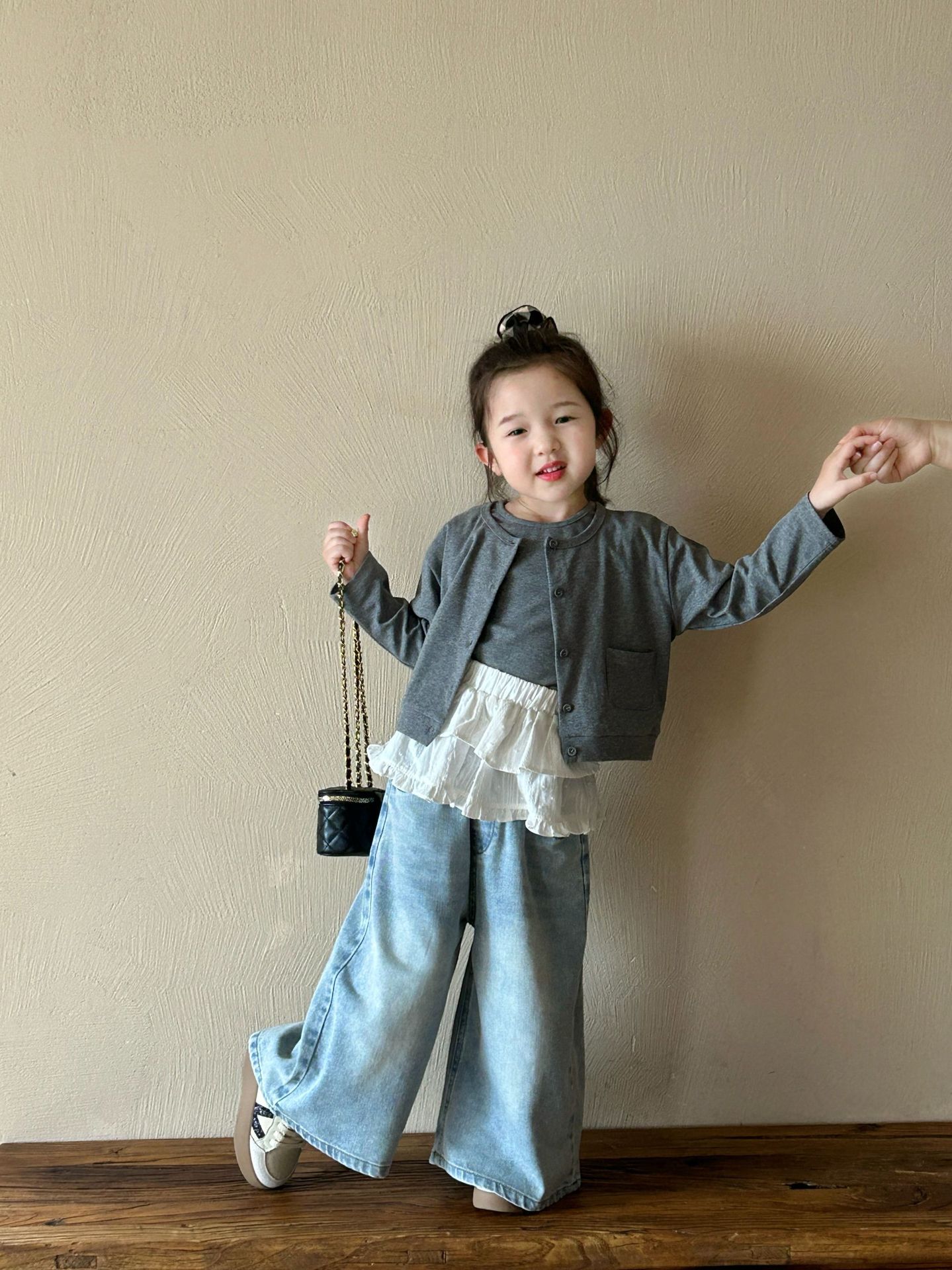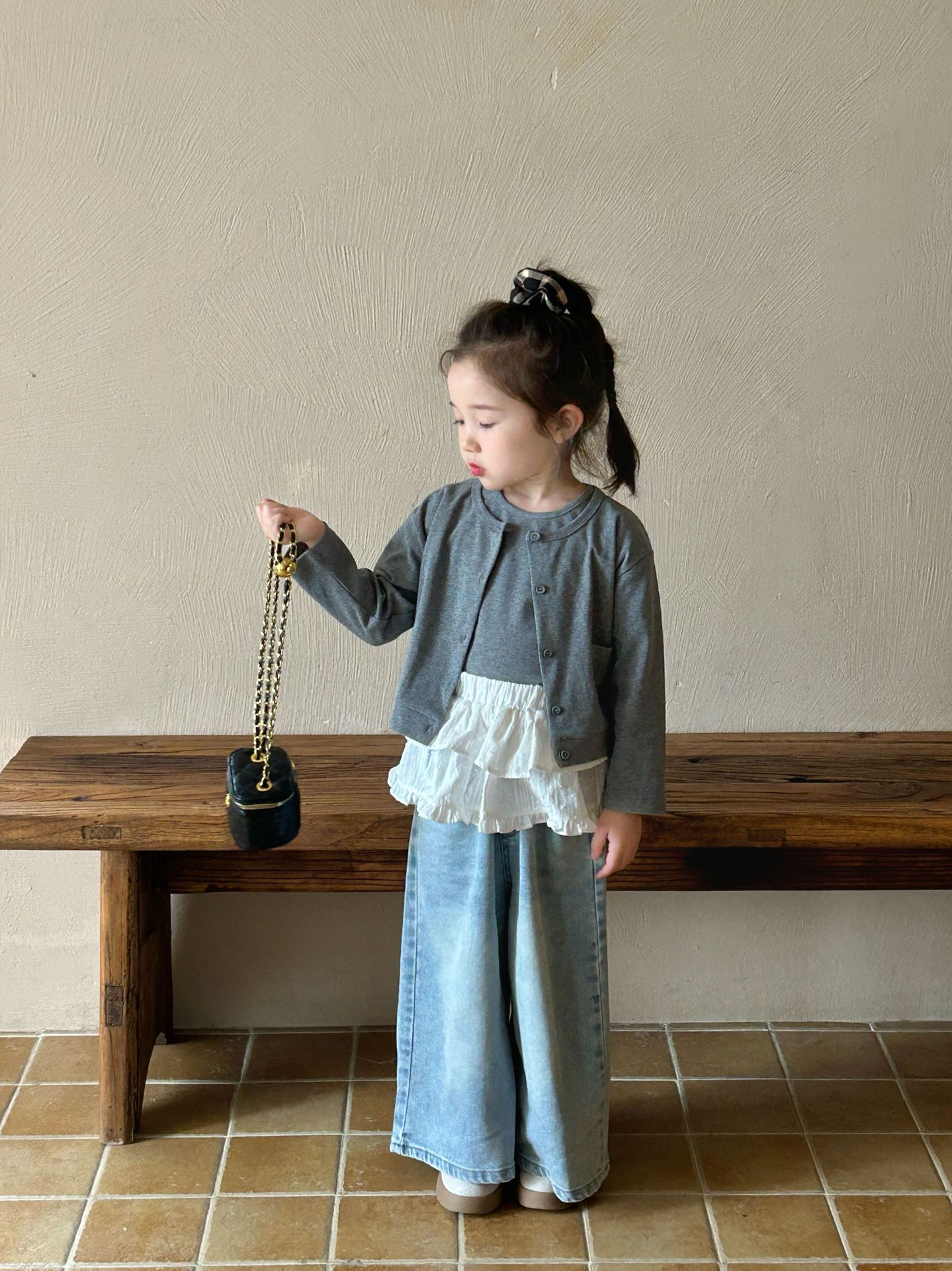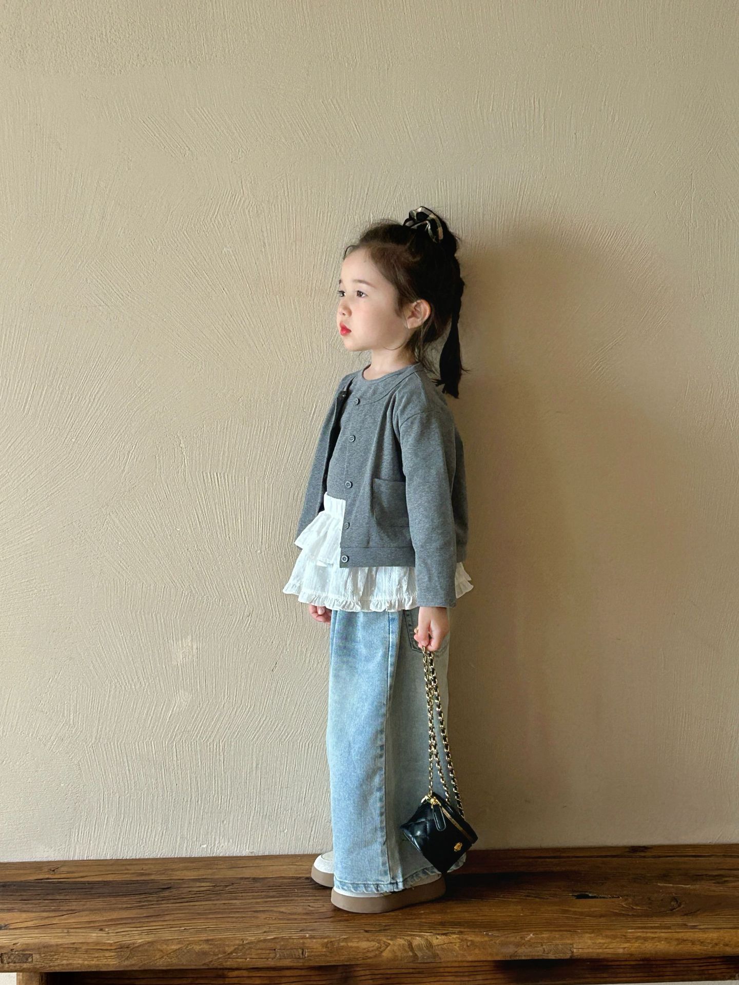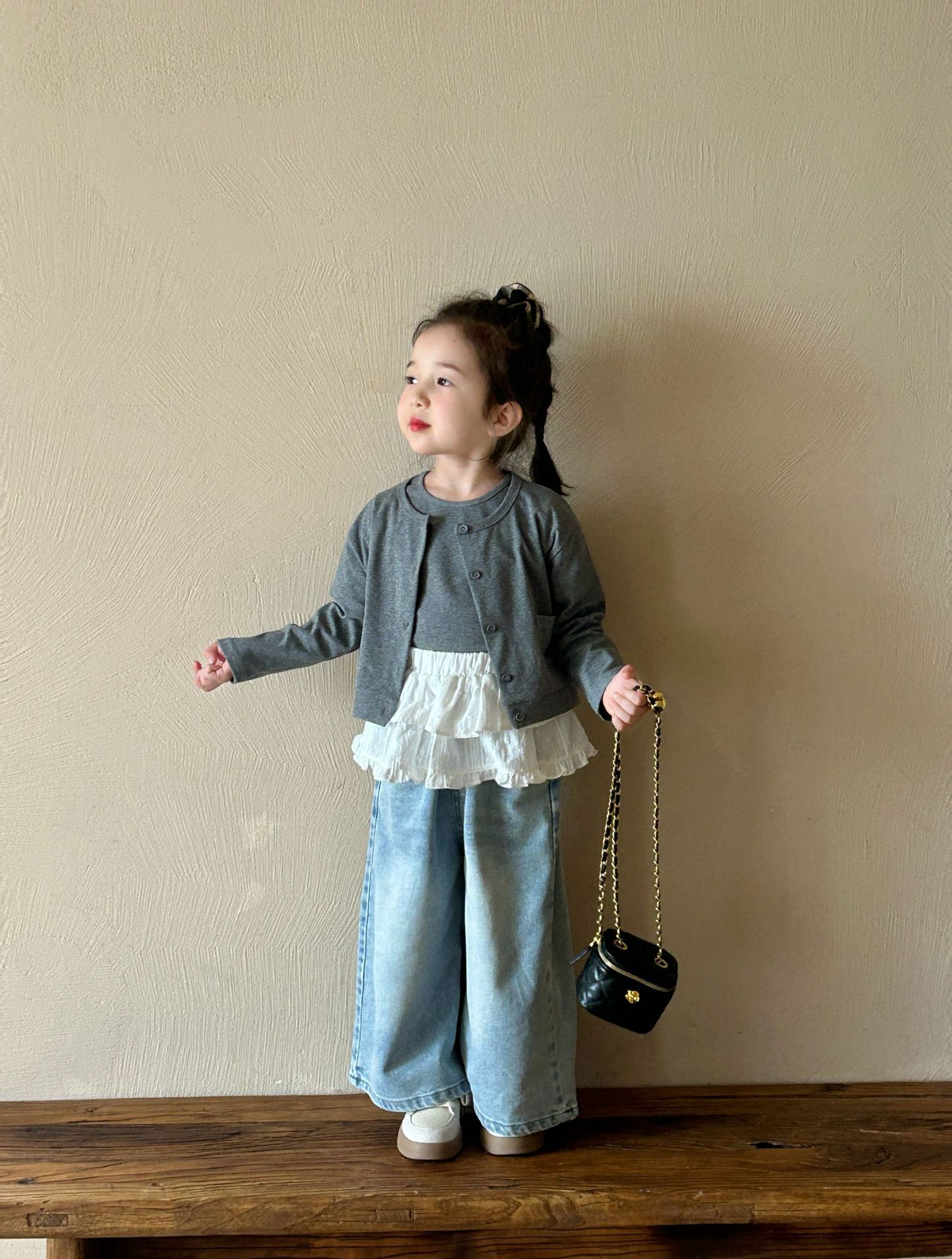 2025 봄 새 아동복 한국 아동복 소녀 단색 카디건 코트 짧은 소매 2 피스 아동복스토어 가기