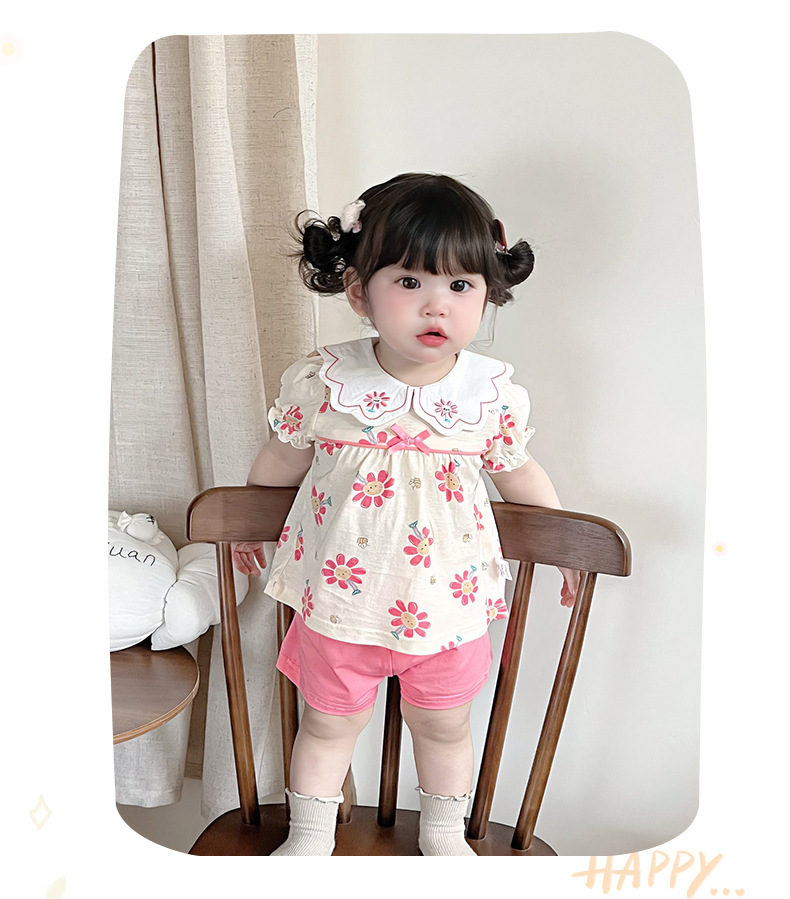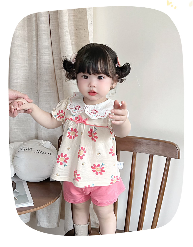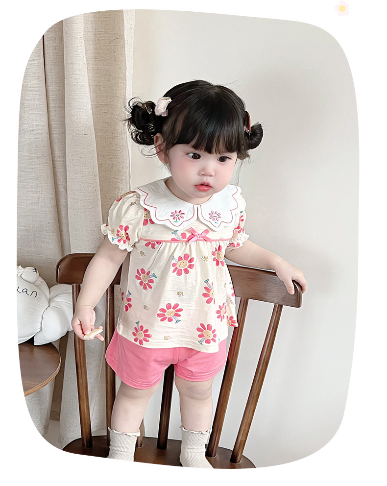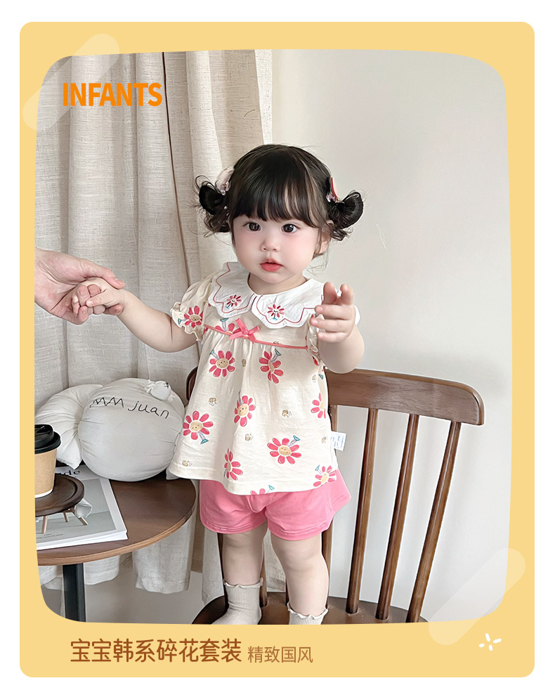 2025 아기 여름 한국식 얇은 여성 반바지 세트 3682 어린이 신선한 꽃 투피스 세트스토어 가기