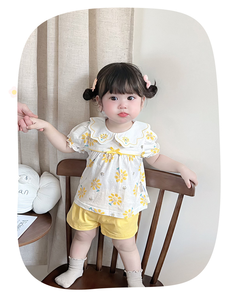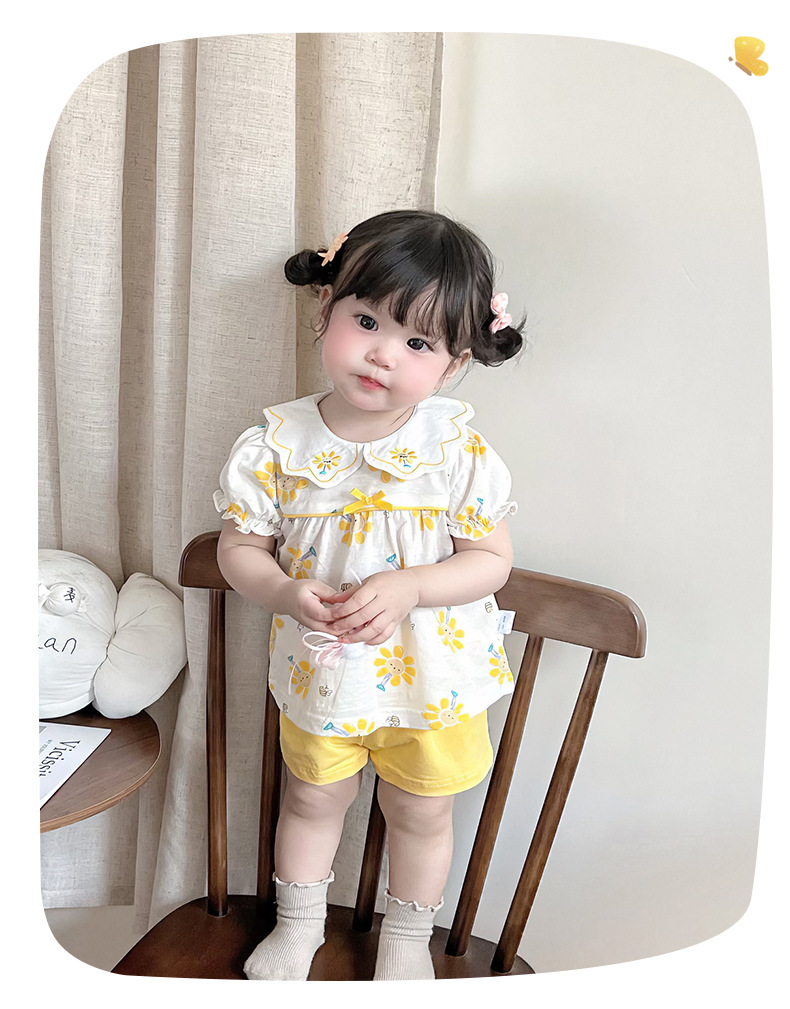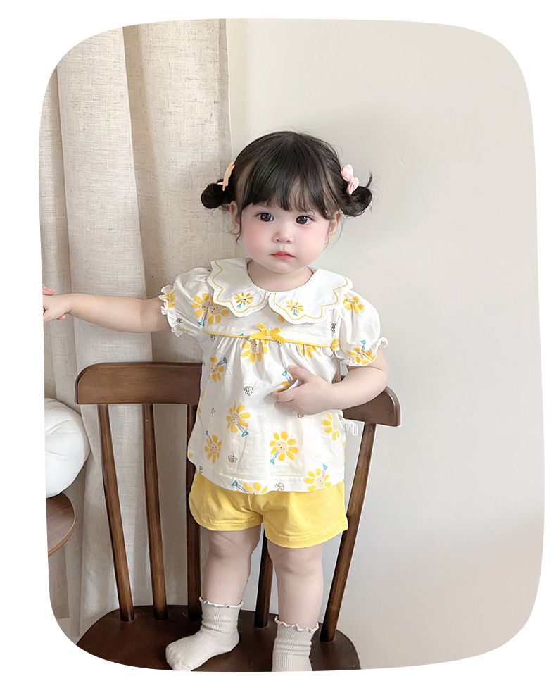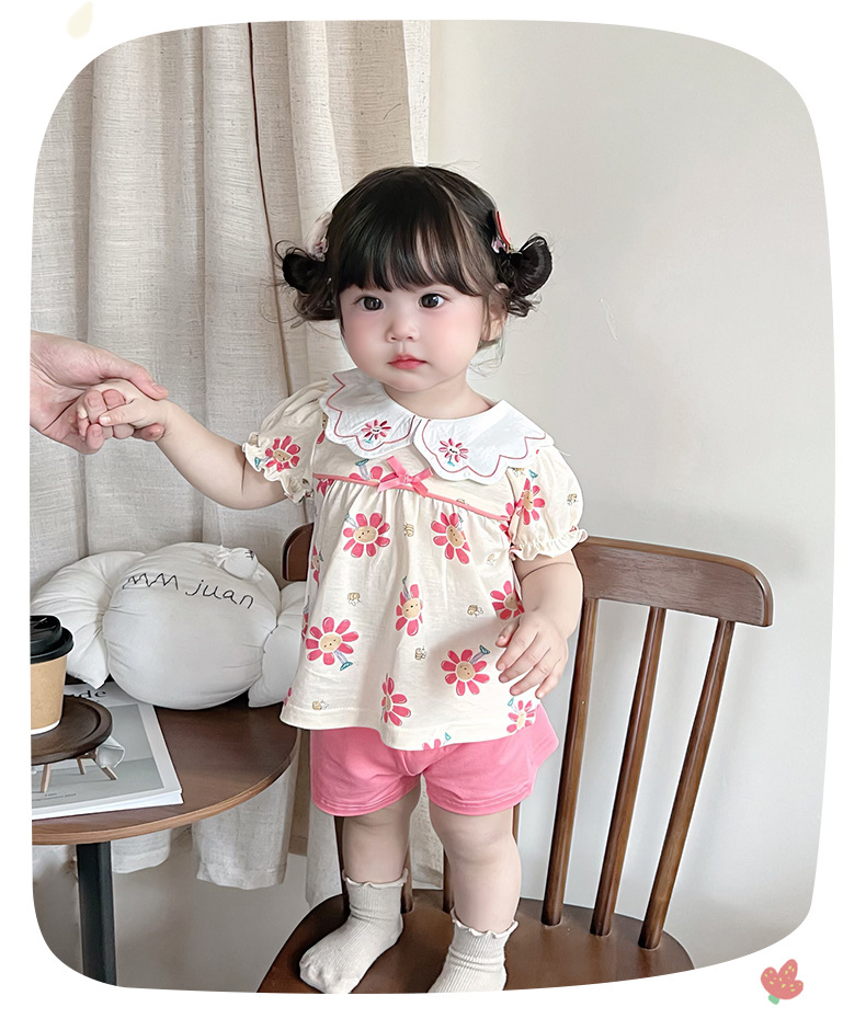 2025 아기 여름 한국식 얇은 여성 반바지 세트 3682 어린이 신선한 꽃 투피스 세트스토어 가기