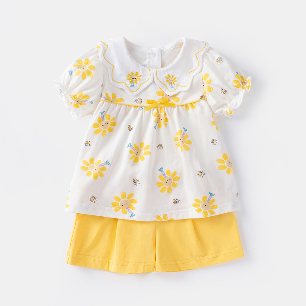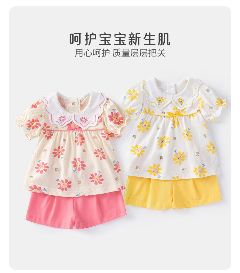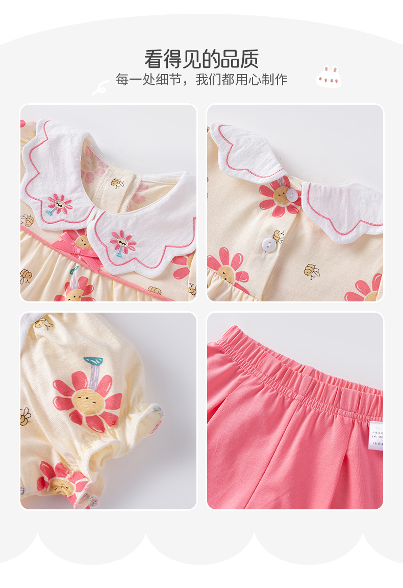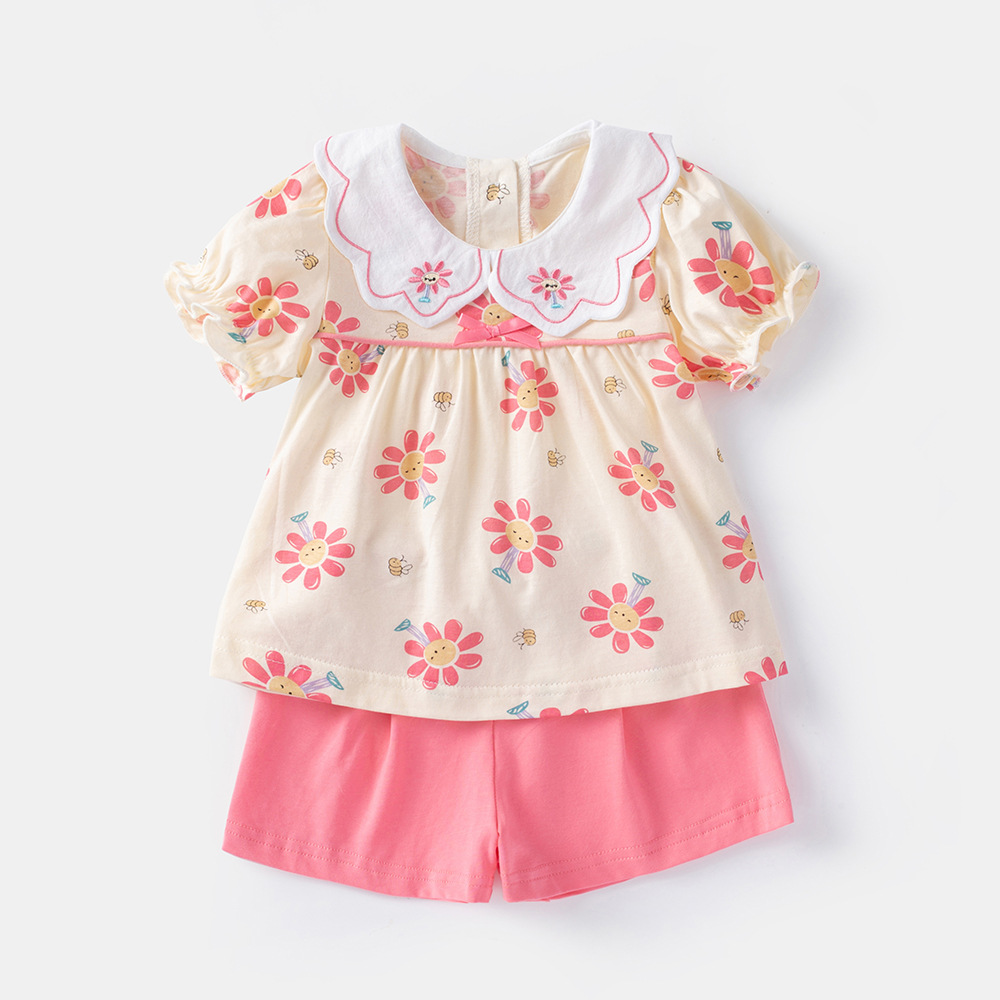 2025 아기 여름 한국식 얇은 여성 반바지 세트 3682 어린이 신선한 꽃 투피스 세트