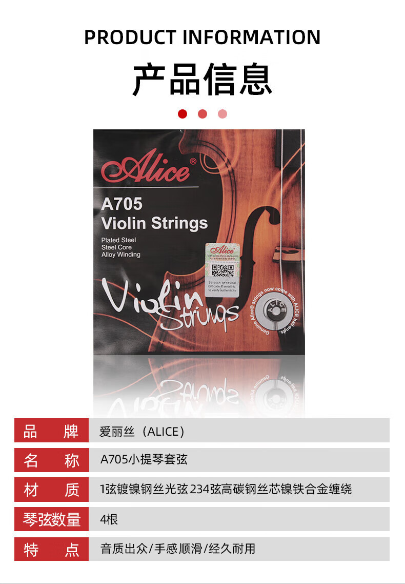앨리스 앨리스 A705 바이올린 스트링 1-4 스트링 풀 세트 스트링 전문 스틸 와이어 바이올린 스트링 1 E 스트링스토어 가기