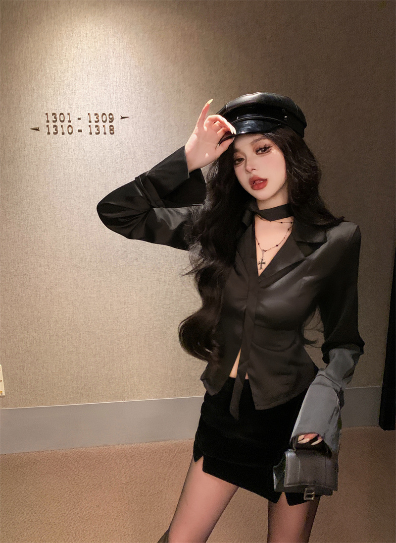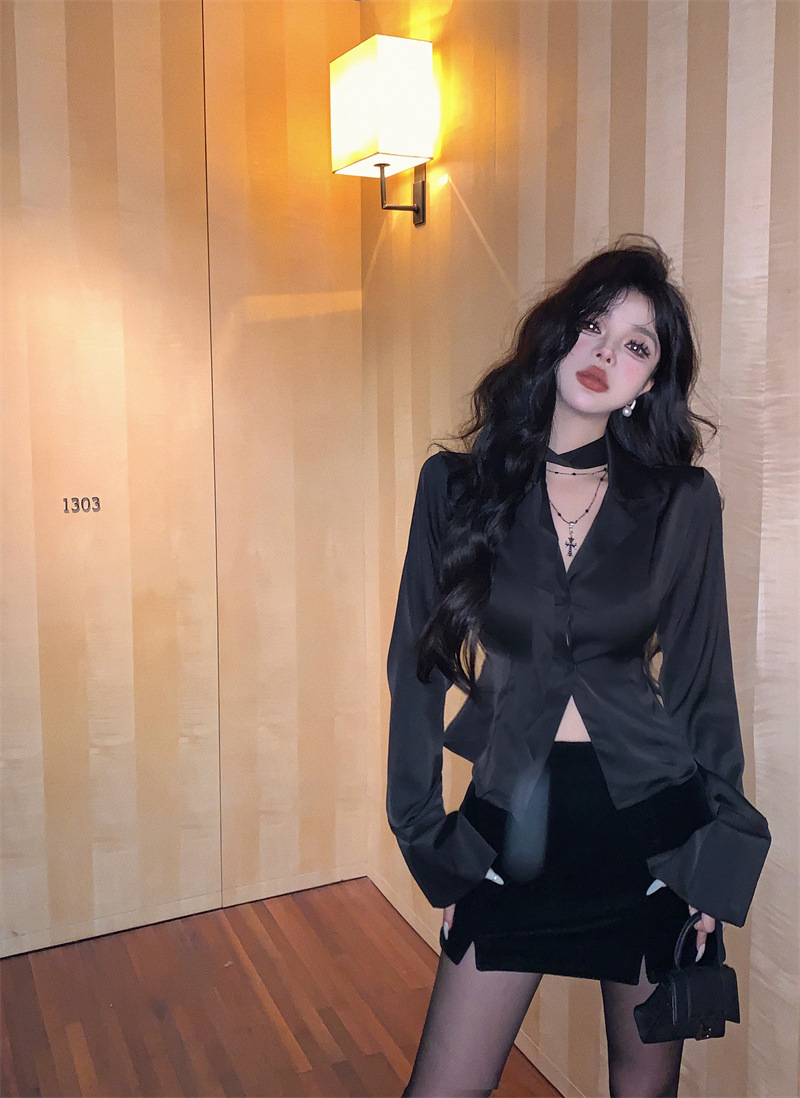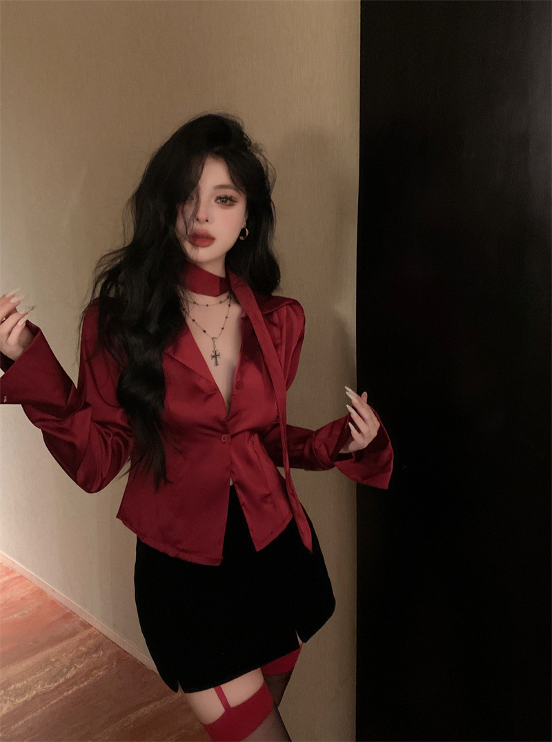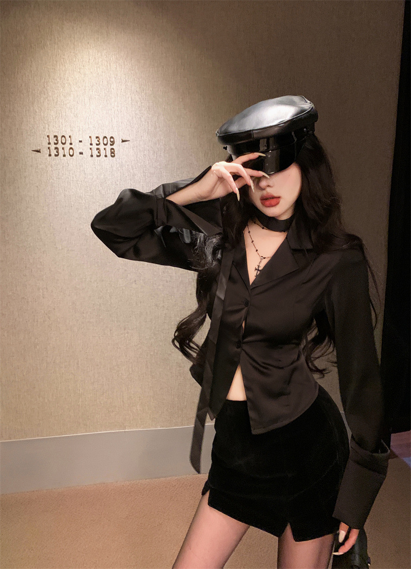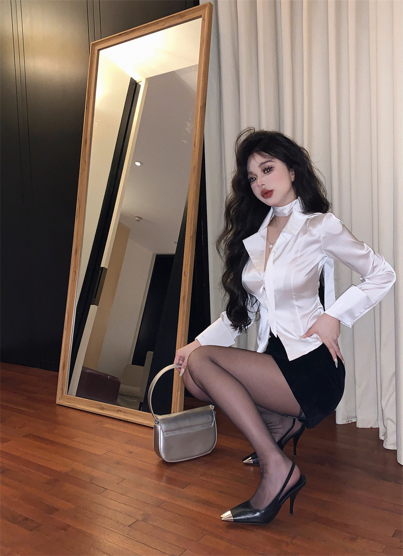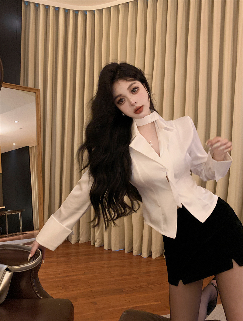 로즈 세그먼트 프랑스 리본 긴팔 쉬폰 셔츠 슬림 핏 셔츠 스타일 순수한 욕망 카디건 탑