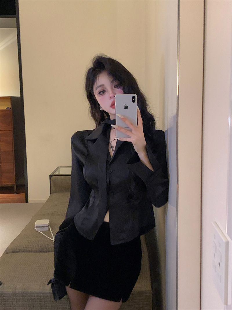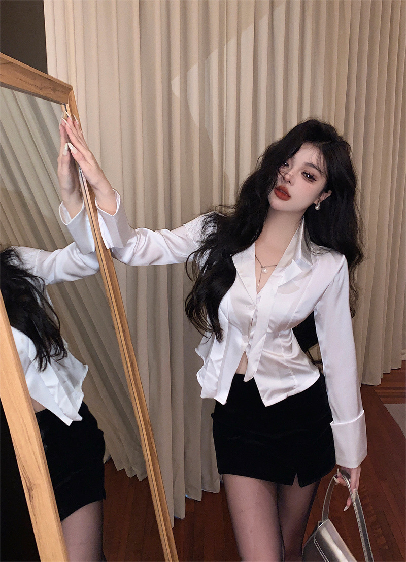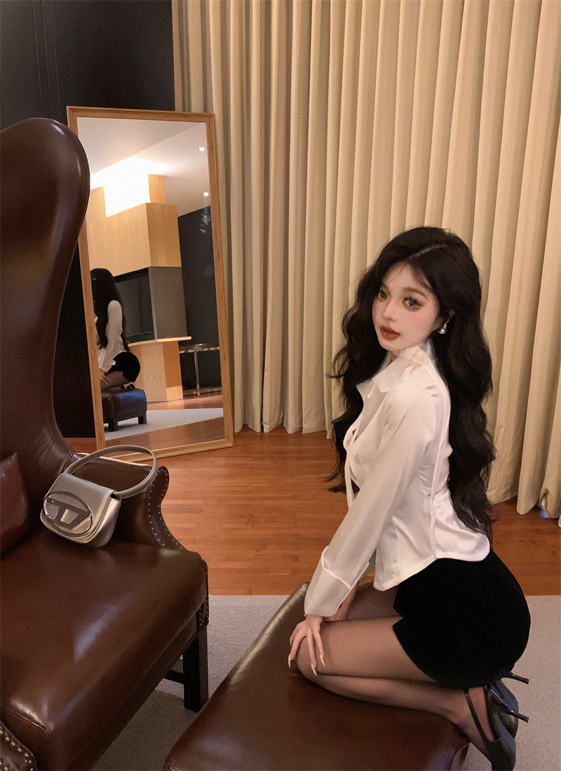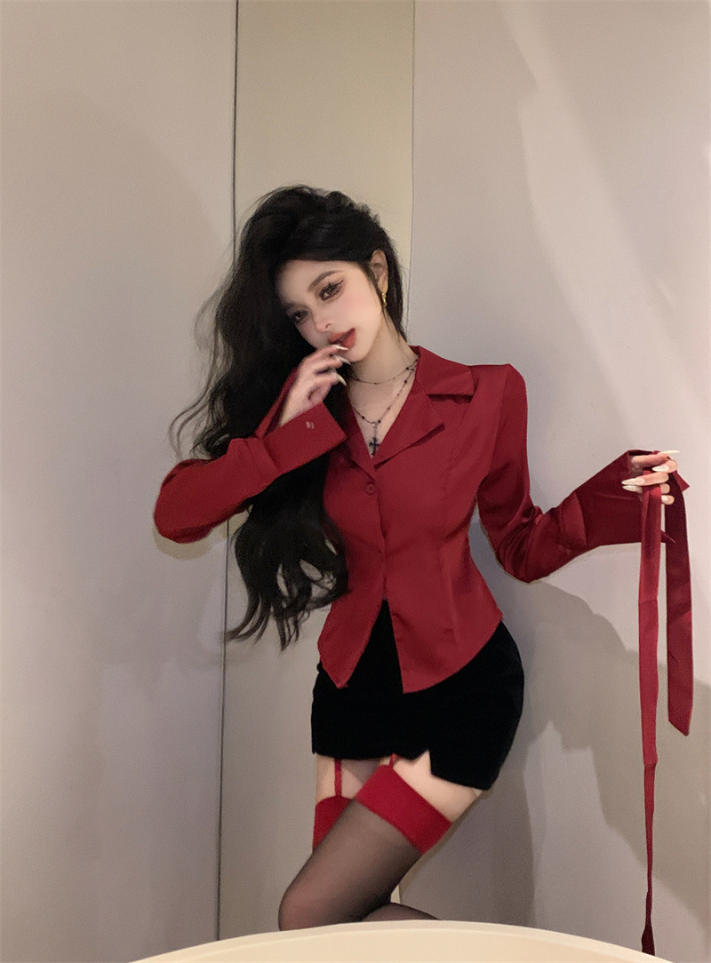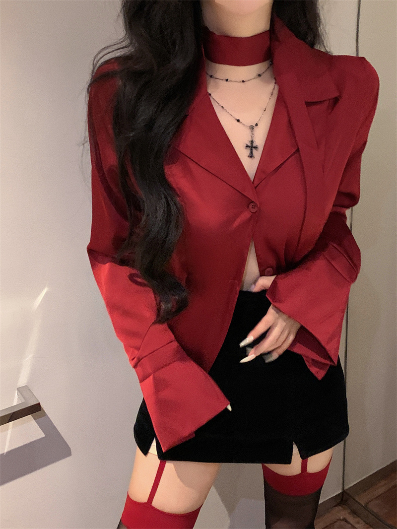 로즈 세그먼트 프랑스 리본 긴팔 쉬폰 셔츠 슬림 핏 셔츠 스타일 순수한 욕망 카디건 탑