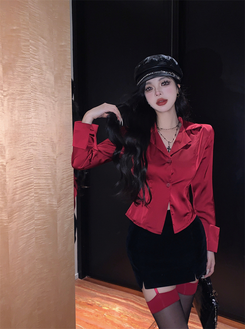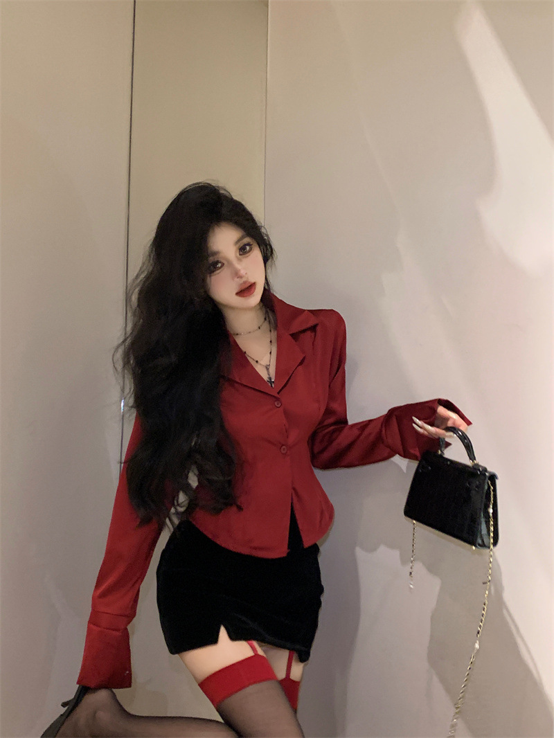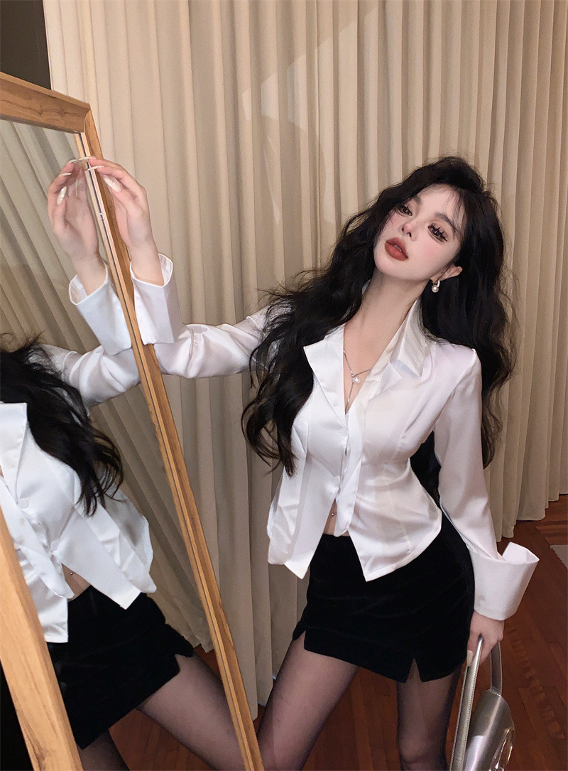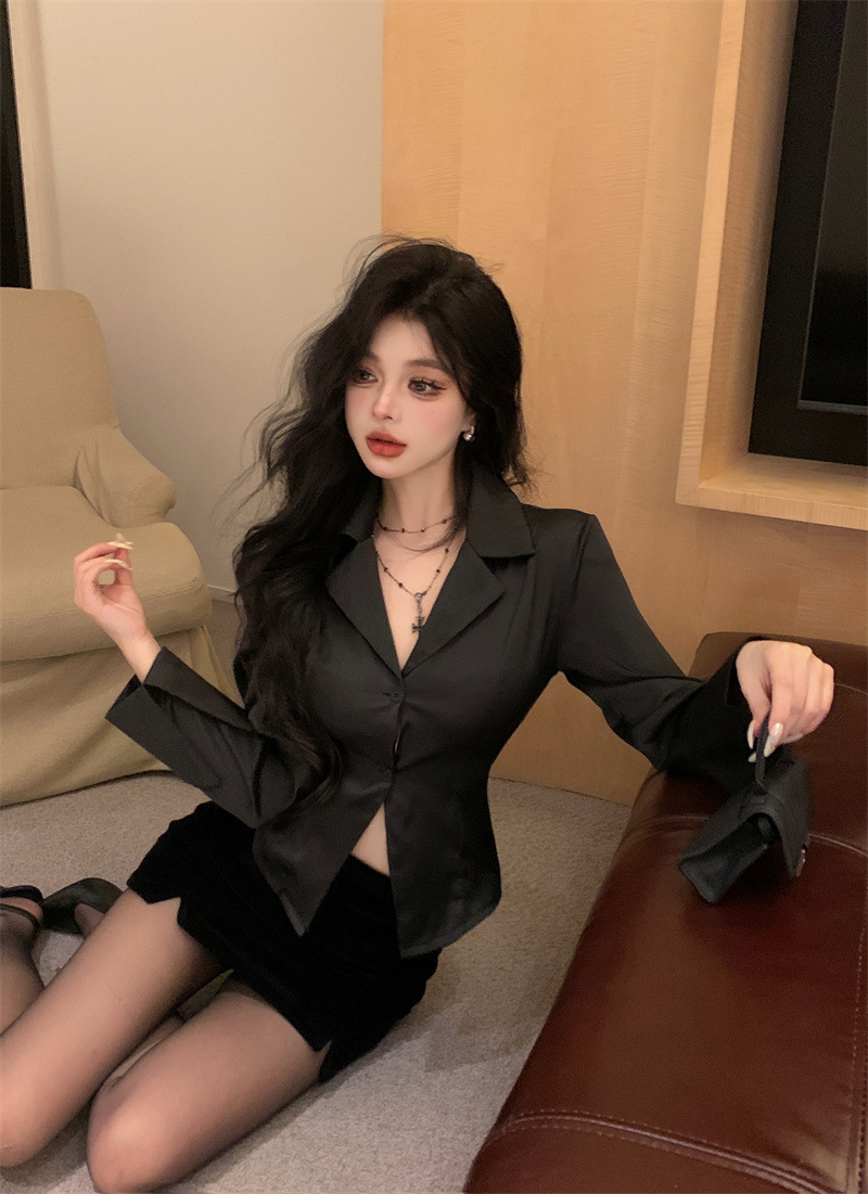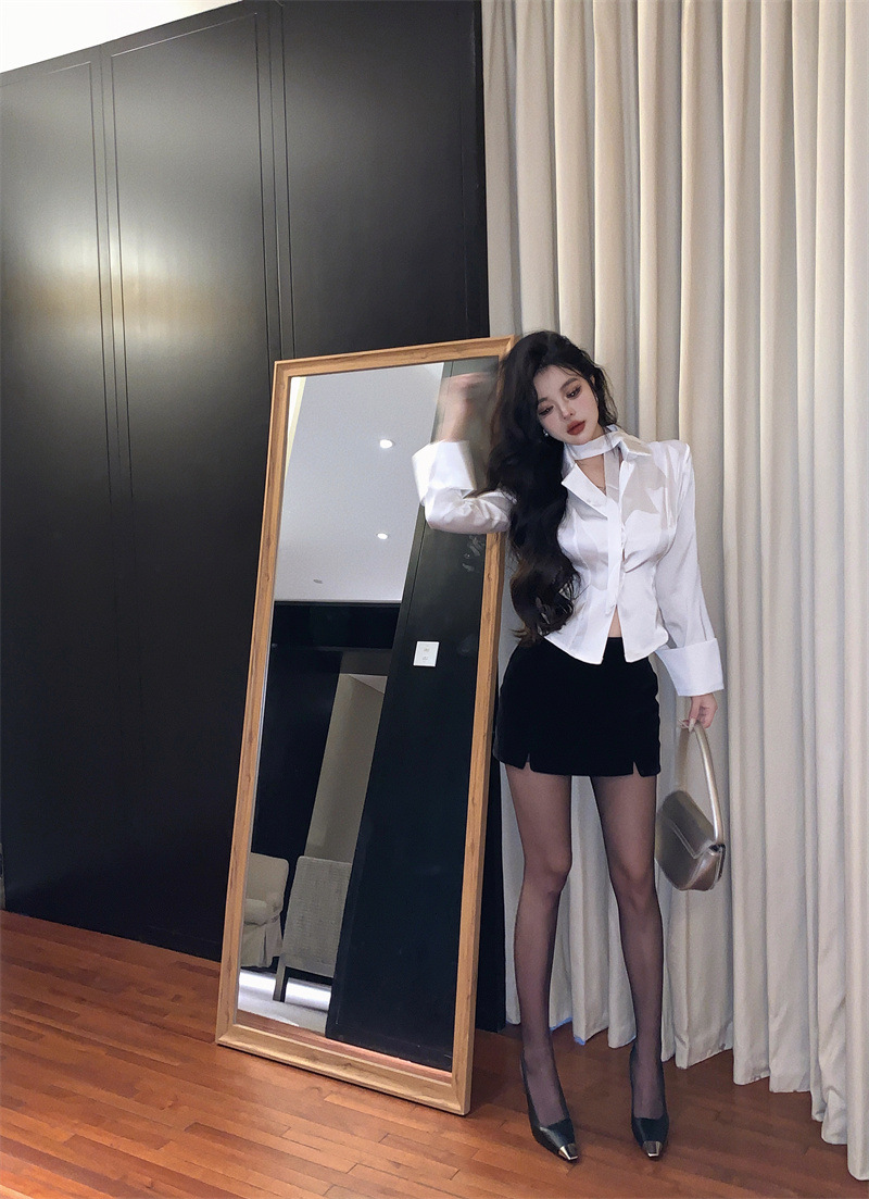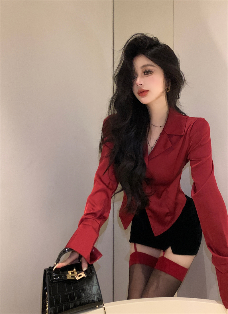 로즈 세그먼트 프랑스 리본 긴팔 쉬폰 셔츠 슬림 핏 셔츠 스타일 순수한 욕망 카디건 탑