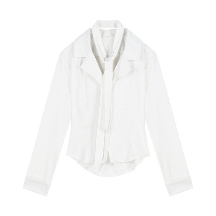 로즈 세그먼트 프랑스 리본 긴팔 쉬폰 셔츠 슬림 핏 셔츠 스타일 순수한 욕망 카디건 탑스토어 가기