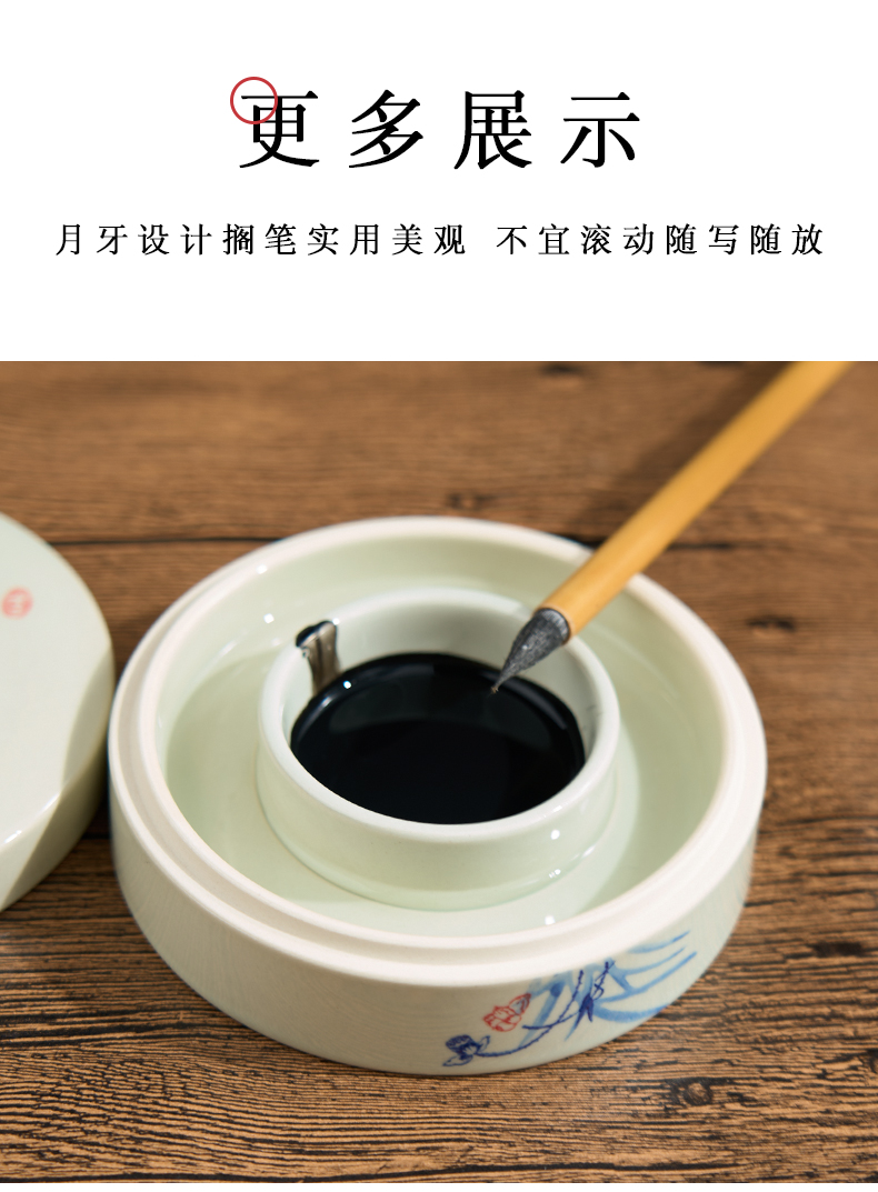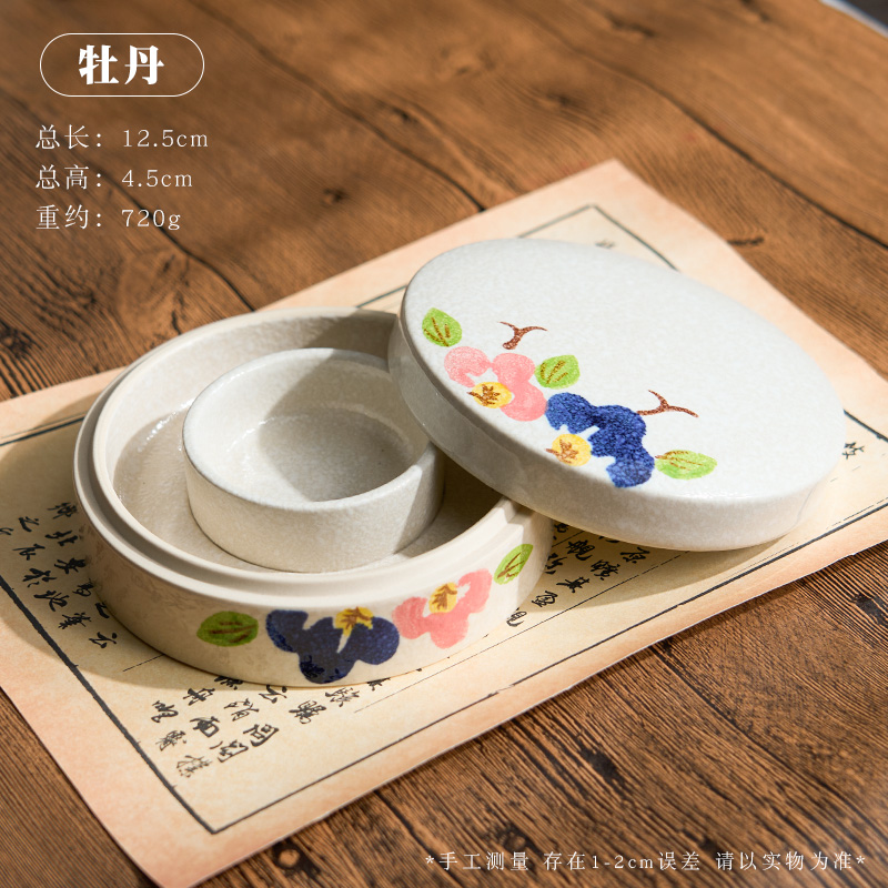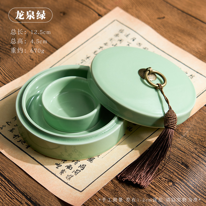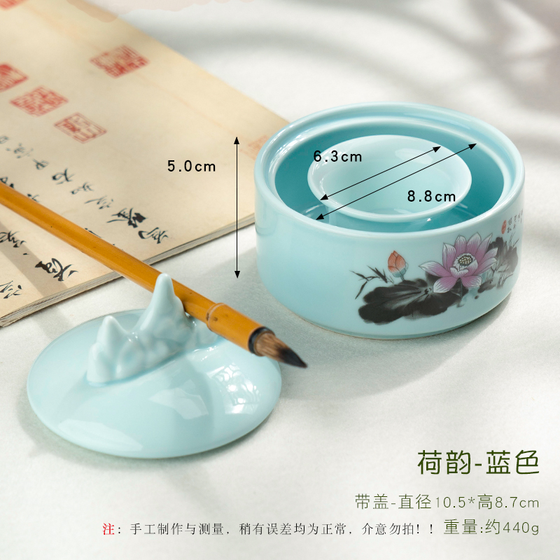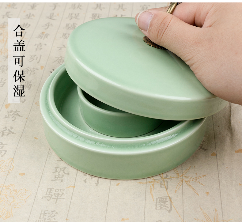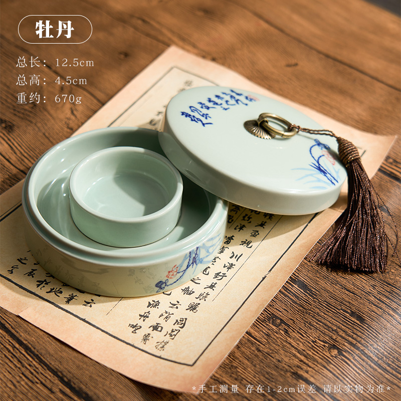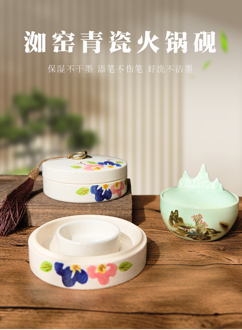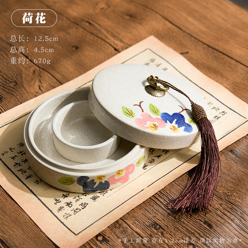 세라믹 핫 팟 잉크 스톤 서예 초보자를위한 뚜껑 잉크 풀이있는 특수 잉크 카트리지 브러시 캐릭터를 연습 할 수 있습니다 잉크 바다 건조 잉크 바다스토어 가기