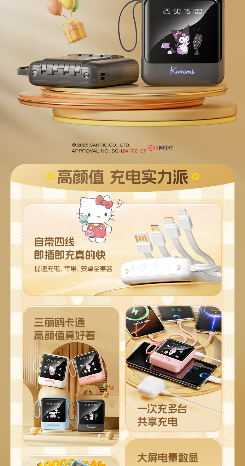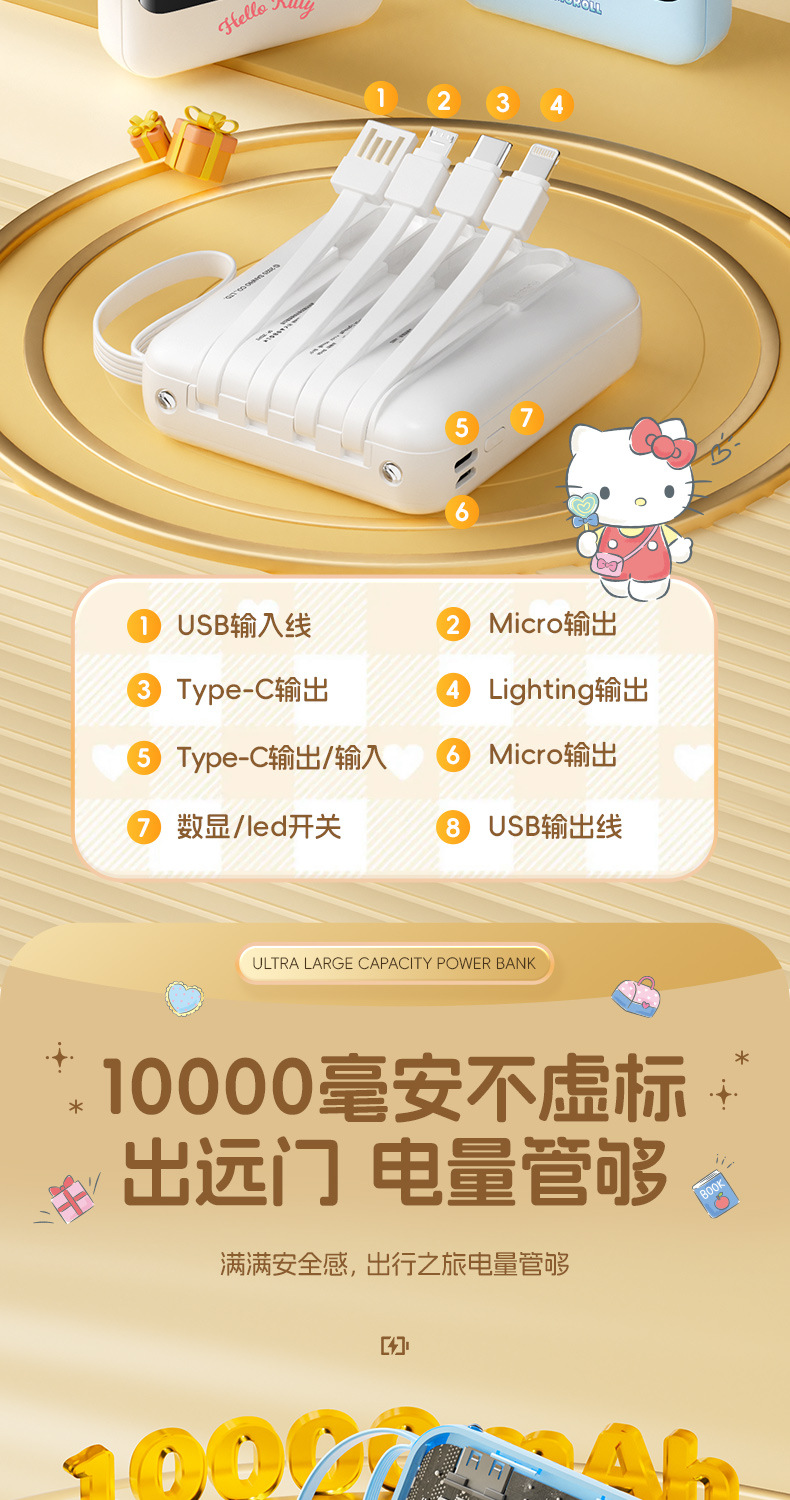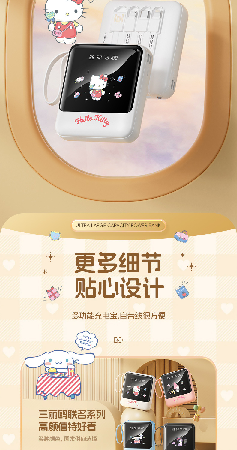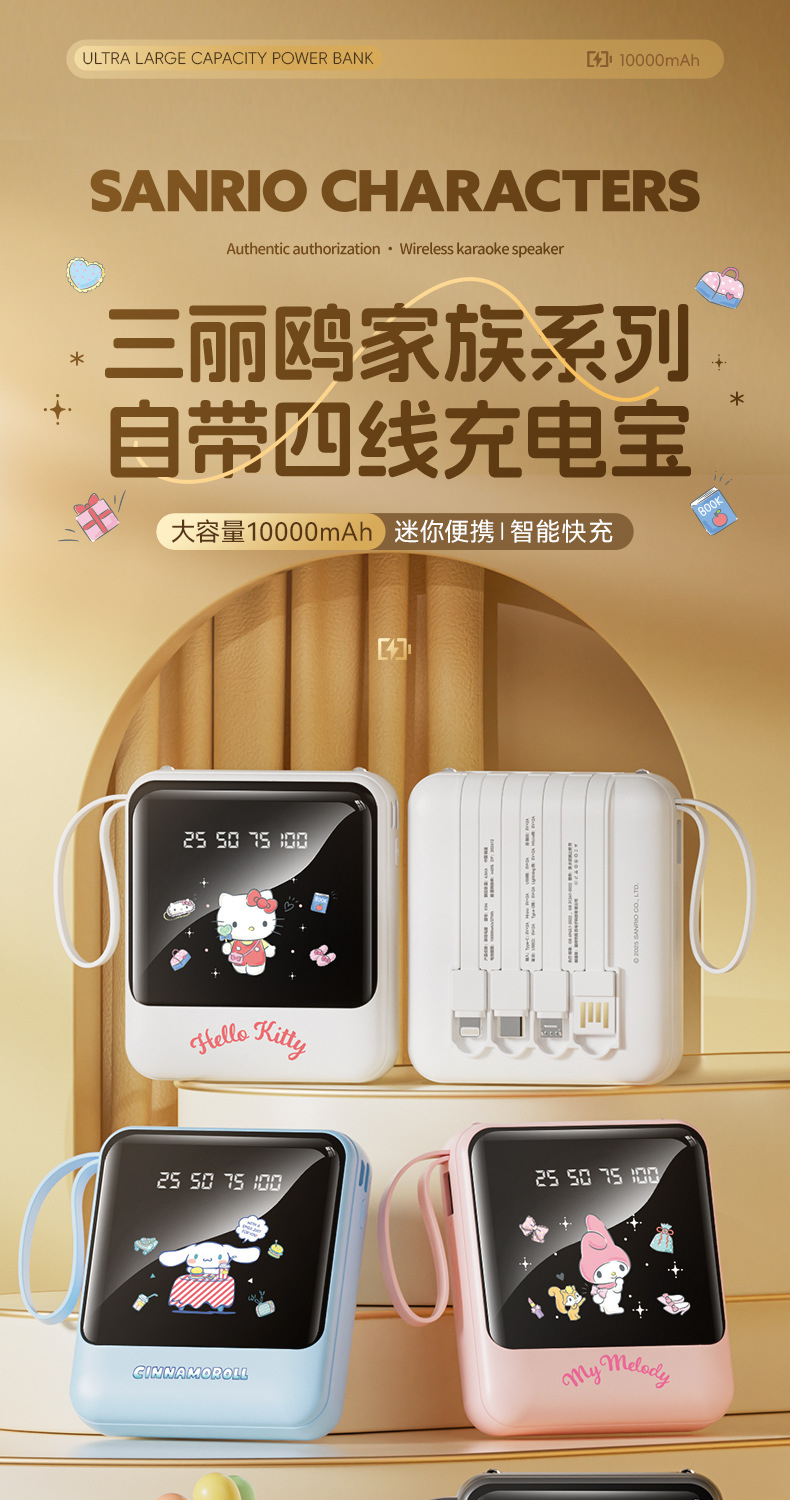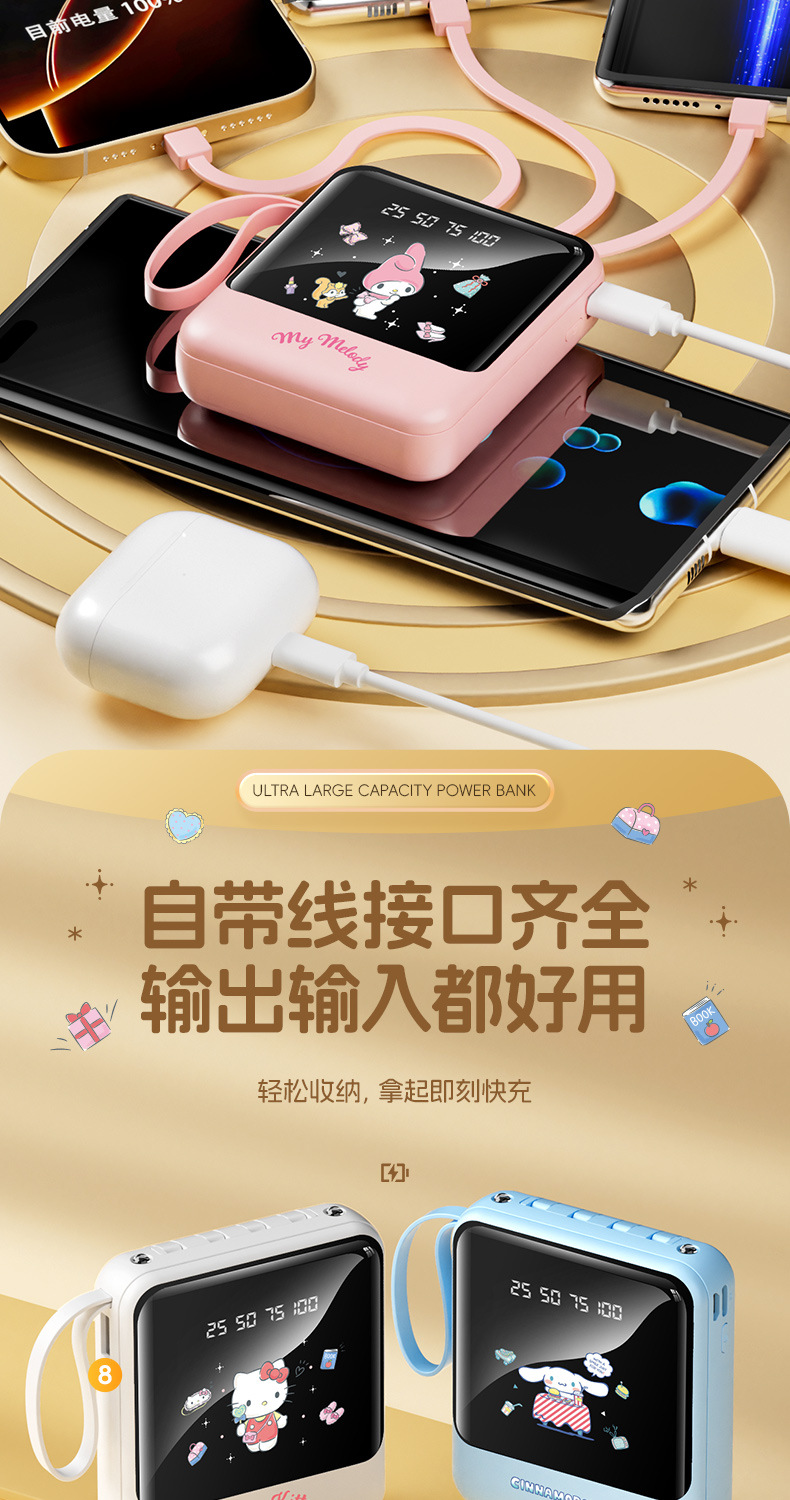 새로운 정품 공인 Sanrio 보조베터리에는 라인 디지털 디스플레이 고속 충전 10000mAh 만화 모바일 전원 공급 장치가 함께 제공됩니다.