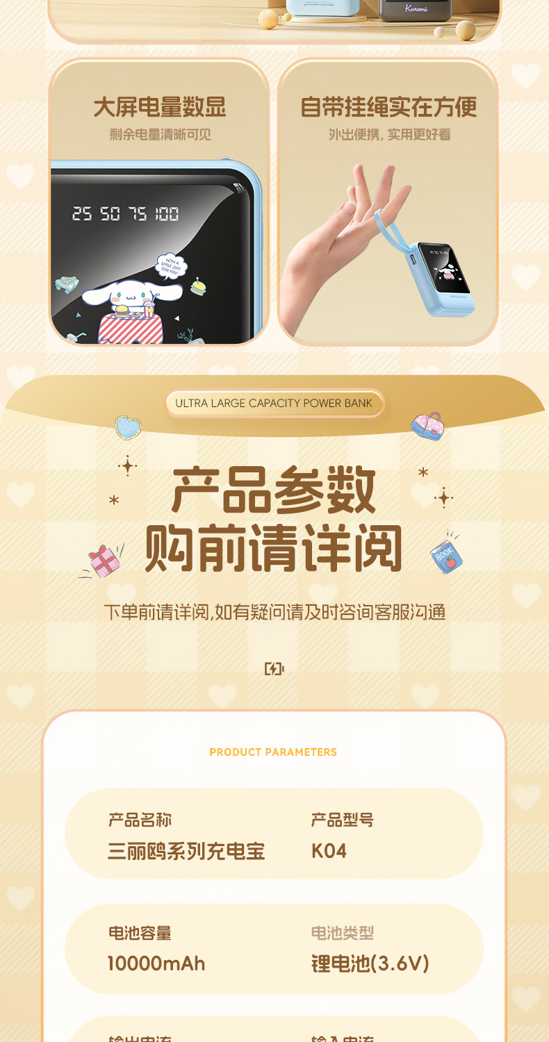 새로운 정품 공인 Sanrio 보조베터리에는 라인 디지털 디스플레이 고속 충전 10000mAh 만화 모바일 전원 공급 장치가 함께 제공됩니다.스토어 가기