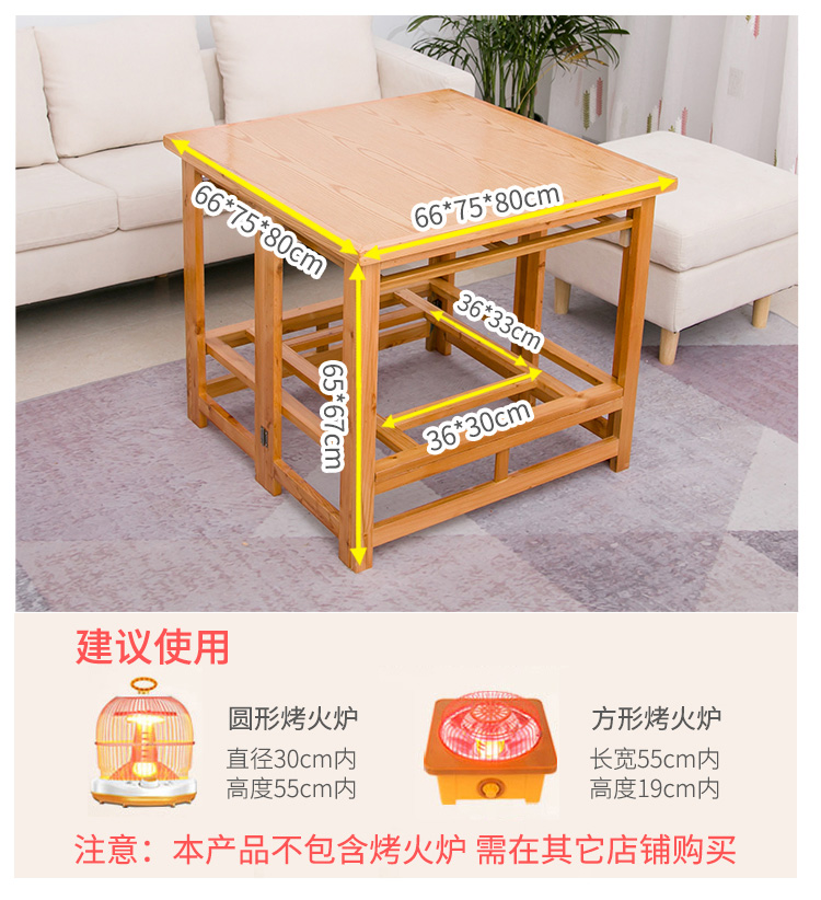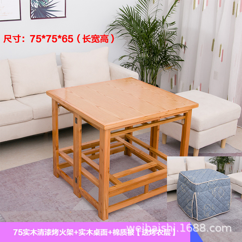 핫 테이블 가정용 접이식 겨울 다기능 난방 테이블 75 솔리드 우드 파이어 랙 베이킹 파이어 랙 스퀘어스토어 가기