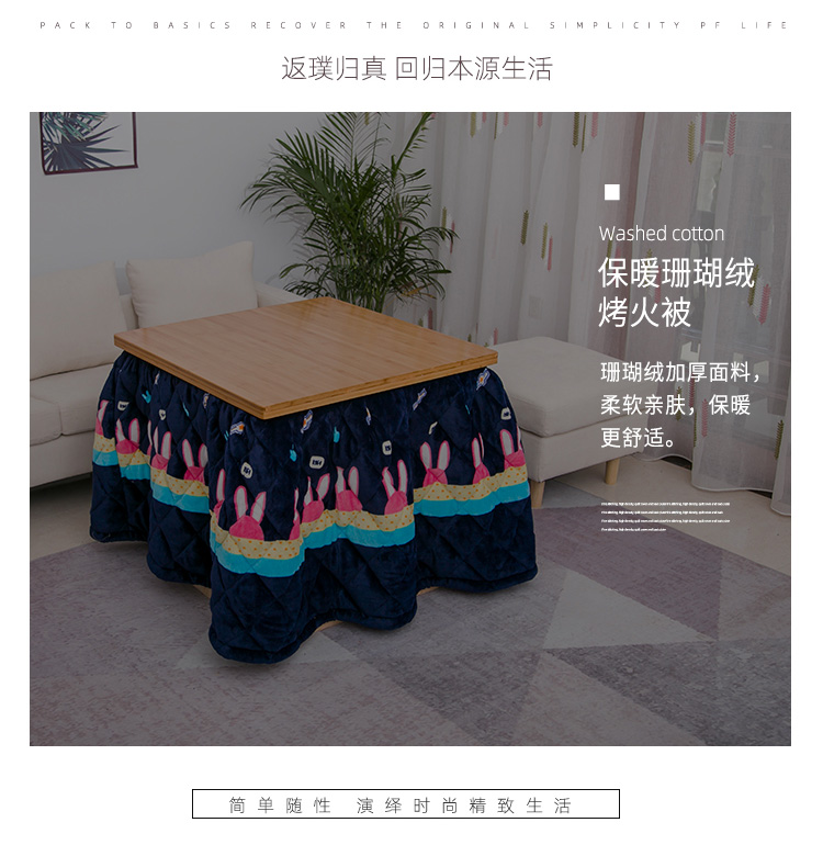 • [브라운] 80x80 대나무 화단 + 두꺼운 테이블 상판 + 산호 벨벳 이불