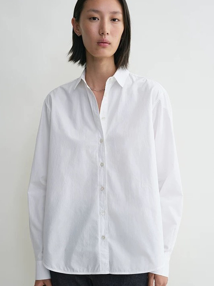 시위안 25 가을 신상품 럭셔리 고급감 고급 면 셔츠 심플한 단색 실루엣 셔츠 여성용 긴팔 상의스토어 가기