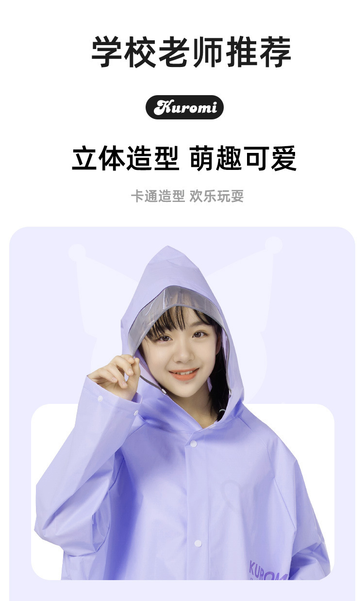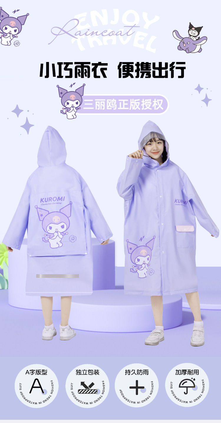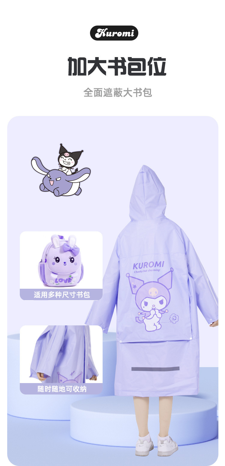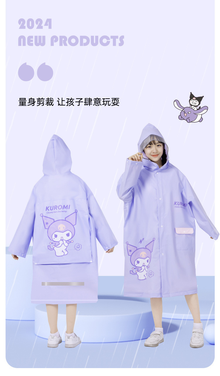 산리오 쿠로미 콜라보 어린이 우비 남아용 전신 방수 여아 유치원 초등학생용 후드 우비스토어 가기