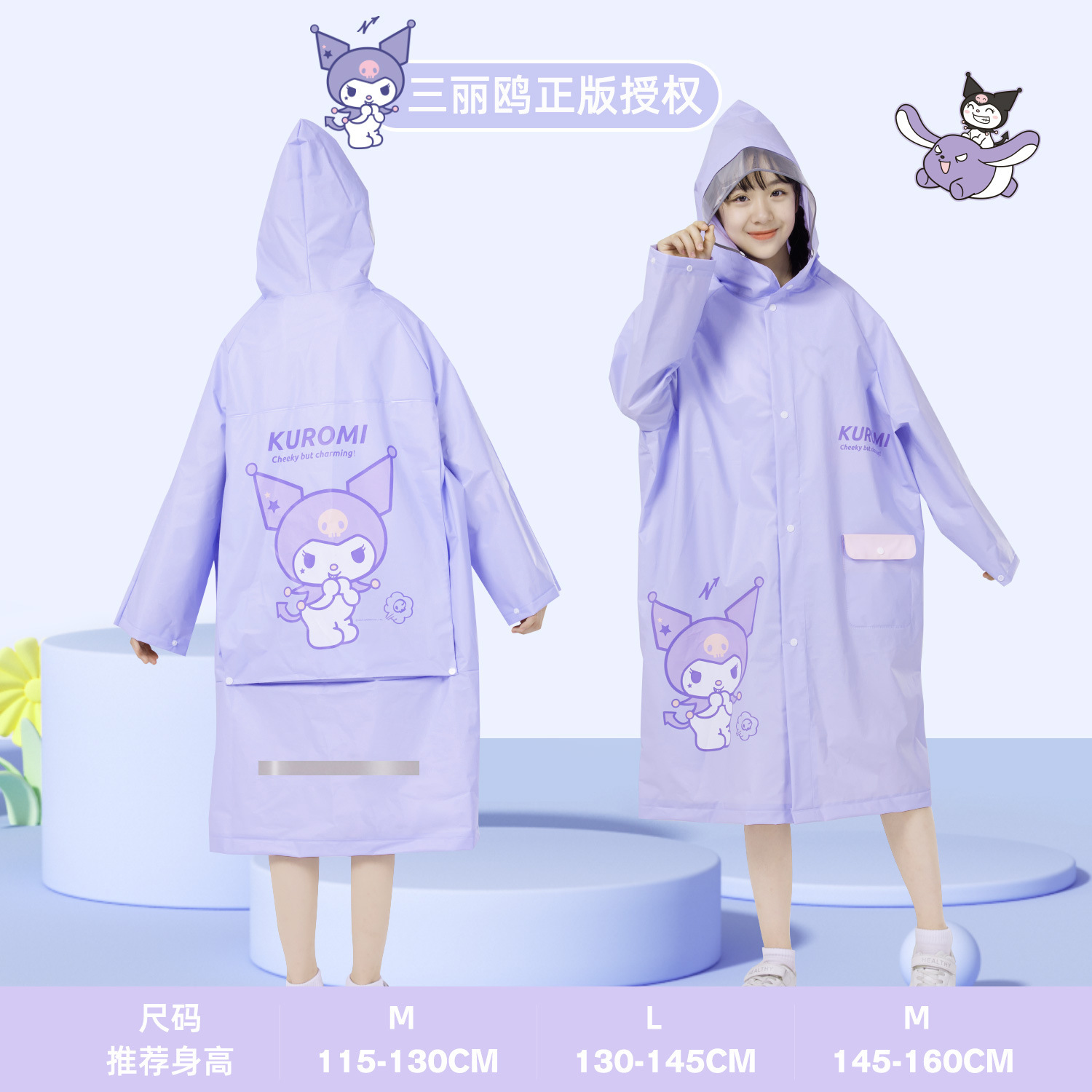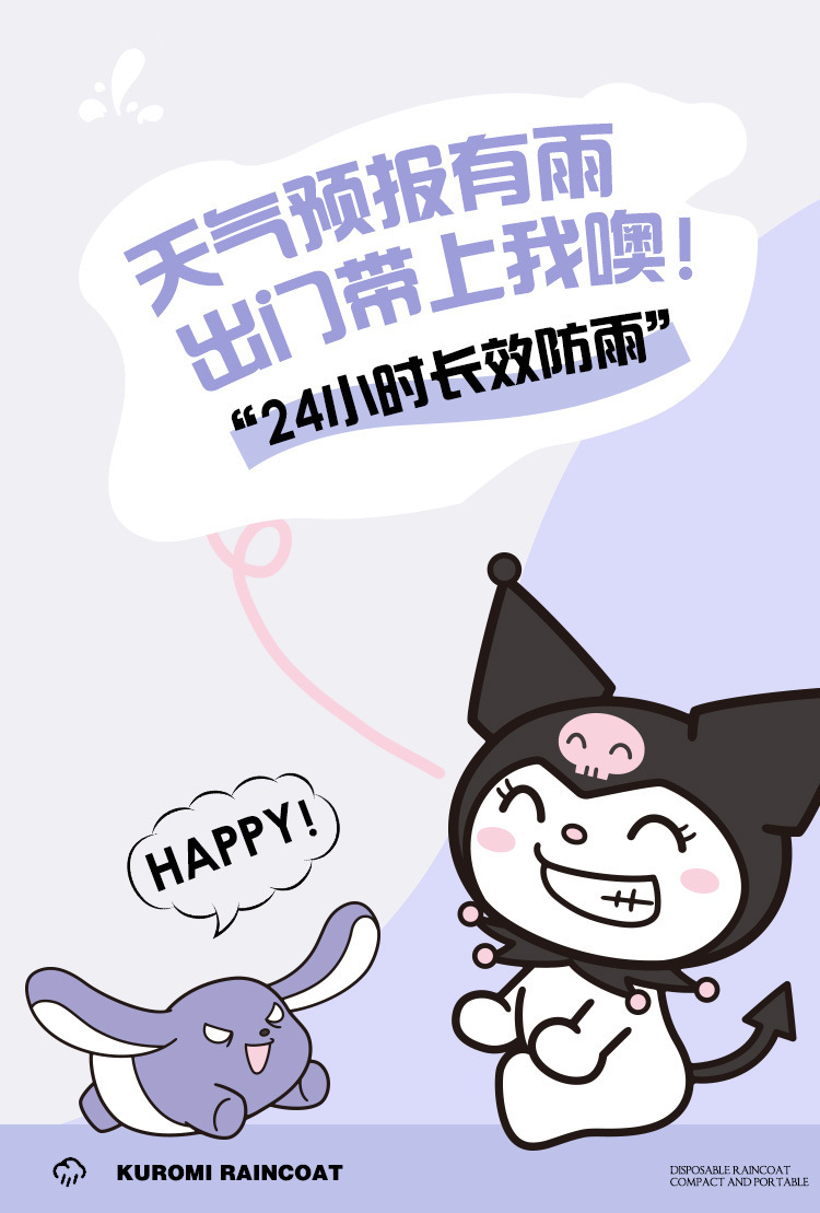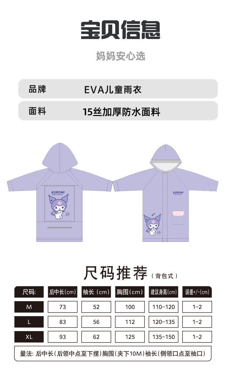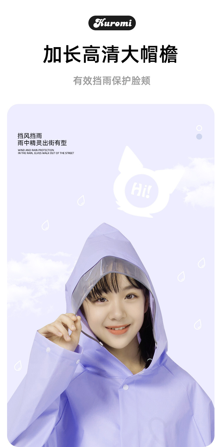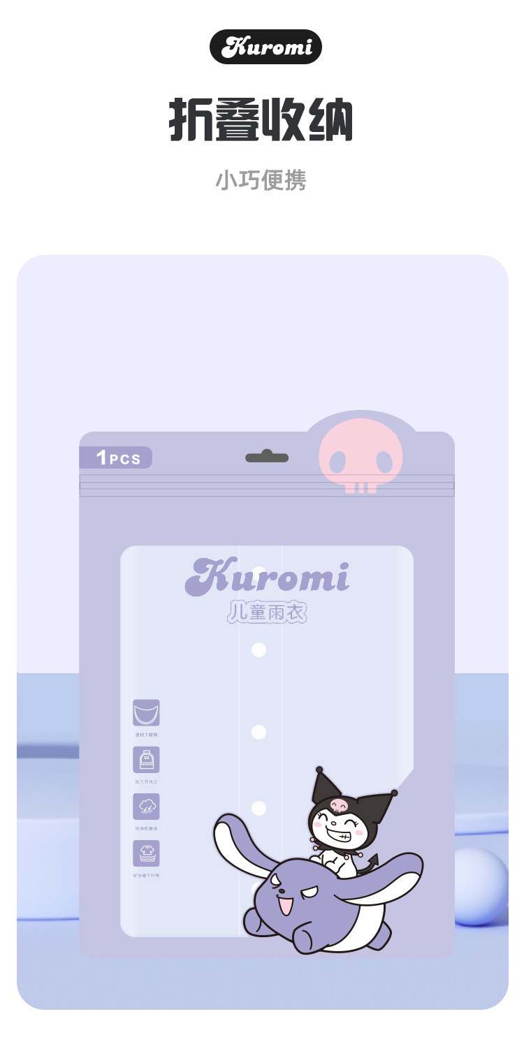 산리오 쿠로미 콜라보 어린이 우비 남아용 전신 방수 여아 유치원 초등학생용 후드 우비스토어 가기