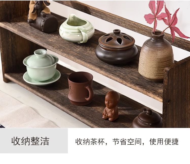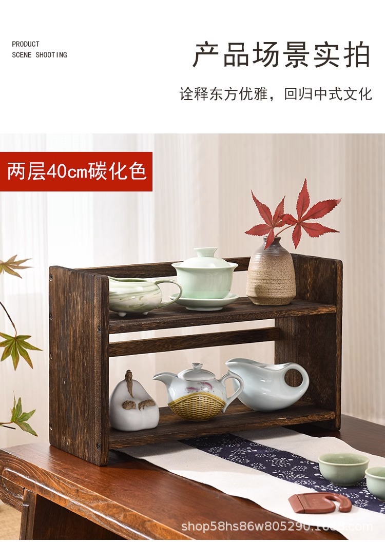 데스크탑 골동품 랙 블랙 월넛 컬러 새로운 중국 스타일 디스플레이 랙 솔리드 우드 듀오 바오 파빌리온 티 컵 티 세트 스토리지 랙 주전자 랙스토어 가기