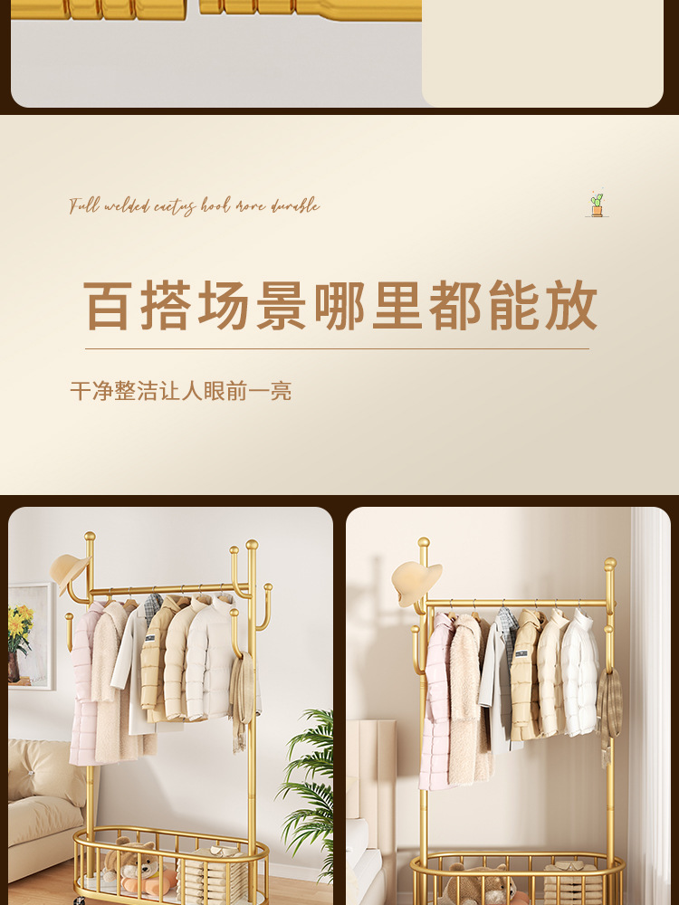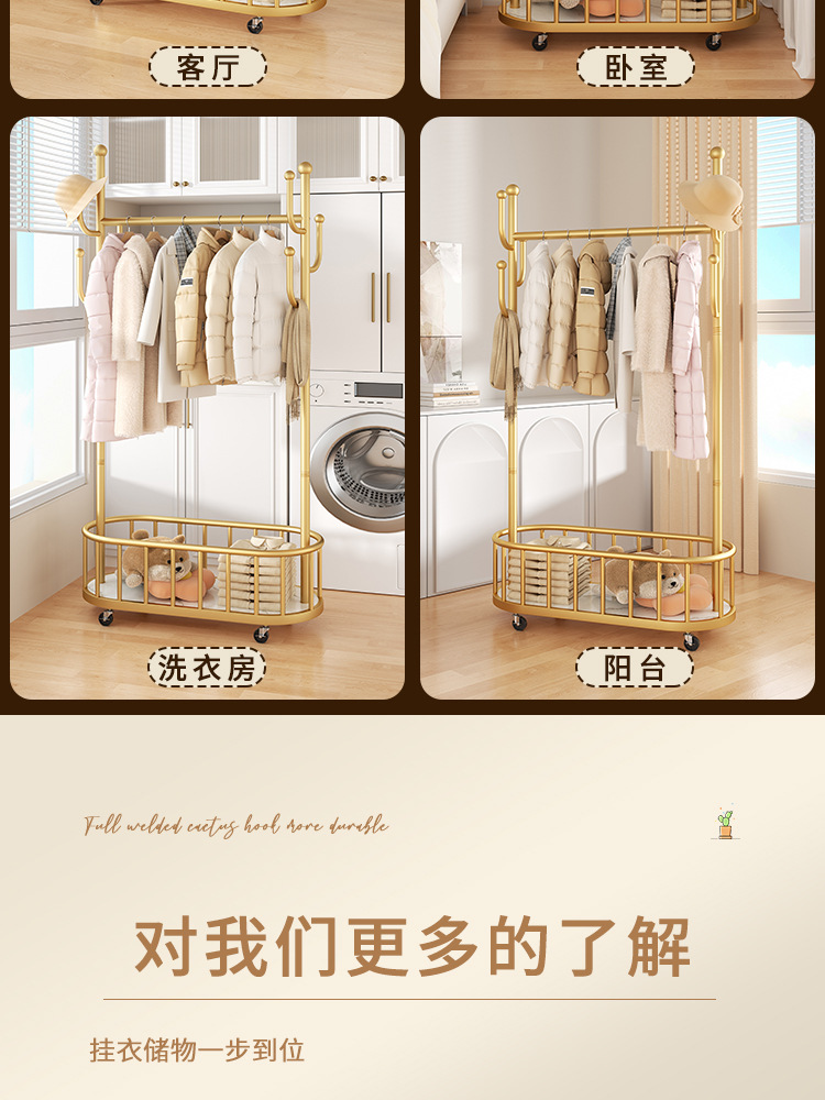 가벼운 고급 이동식 코트 랙 바퀴 거실 가정용 의류 보관 랙 현대 간단한 침실 바닥 걸이스토어 가기