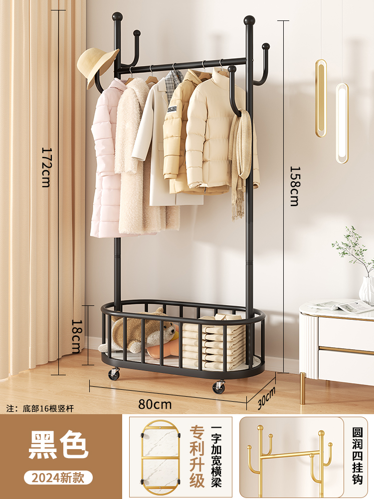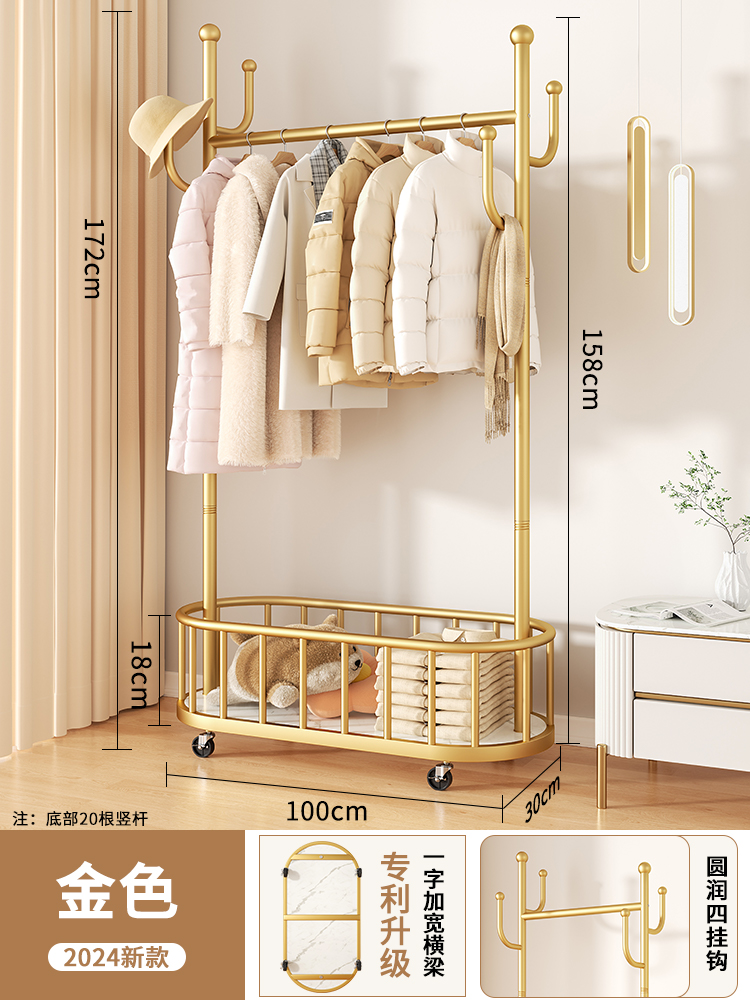가벼운 고급 이동식 코트 랙 바퀴 거실 가정용 의류 보관 랙 현대 간단한 침실 바닥 걸이