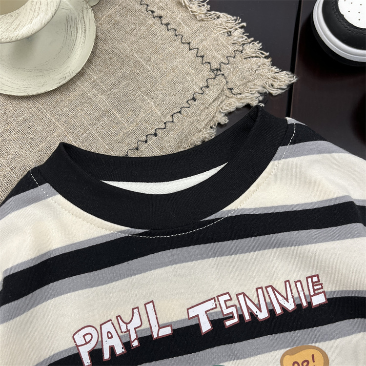 아기 한국 만화 재미있는 라운드 넥 긴팔 티셔츠 소년과 소녀를위한 가을 옷 줄무늬 다목적 가을 기본 셔츠 탑스토어 가기