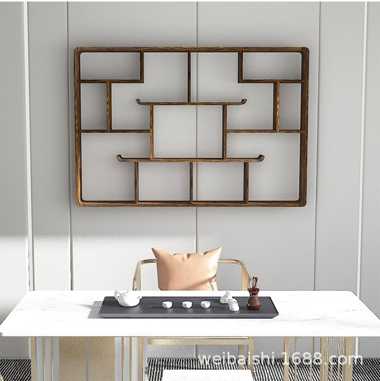 솔리드 우드 새로운 중국 스타일의 골동품 랙 벽걸이 형 스토리지 랙 벽걸이 형 작은 장식품 티 케이크 랙 책꽂이 선